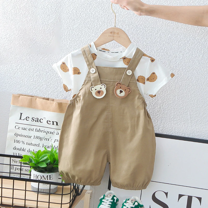 この豪華なセットは、夏にぴったりのキッズファッションです!ベアくまの柄が可愛らしい半袖Tシャツにオーバーオールが付いた2点セット。男の子も女の子も楽しめる、高品質なデザインです。お子様をおしゃれに演出し、快適な夏を過ごせること間違いなしです。