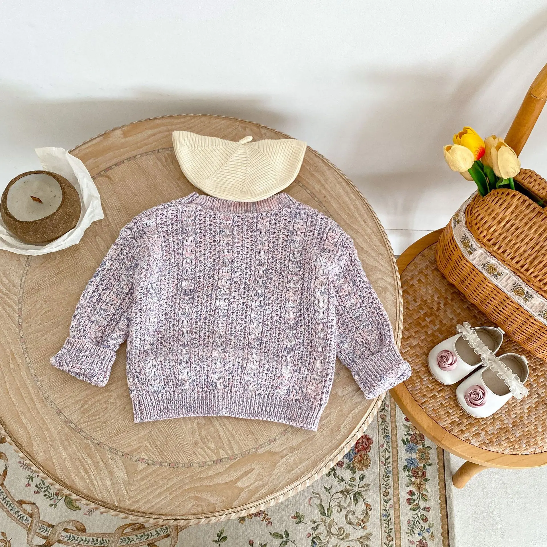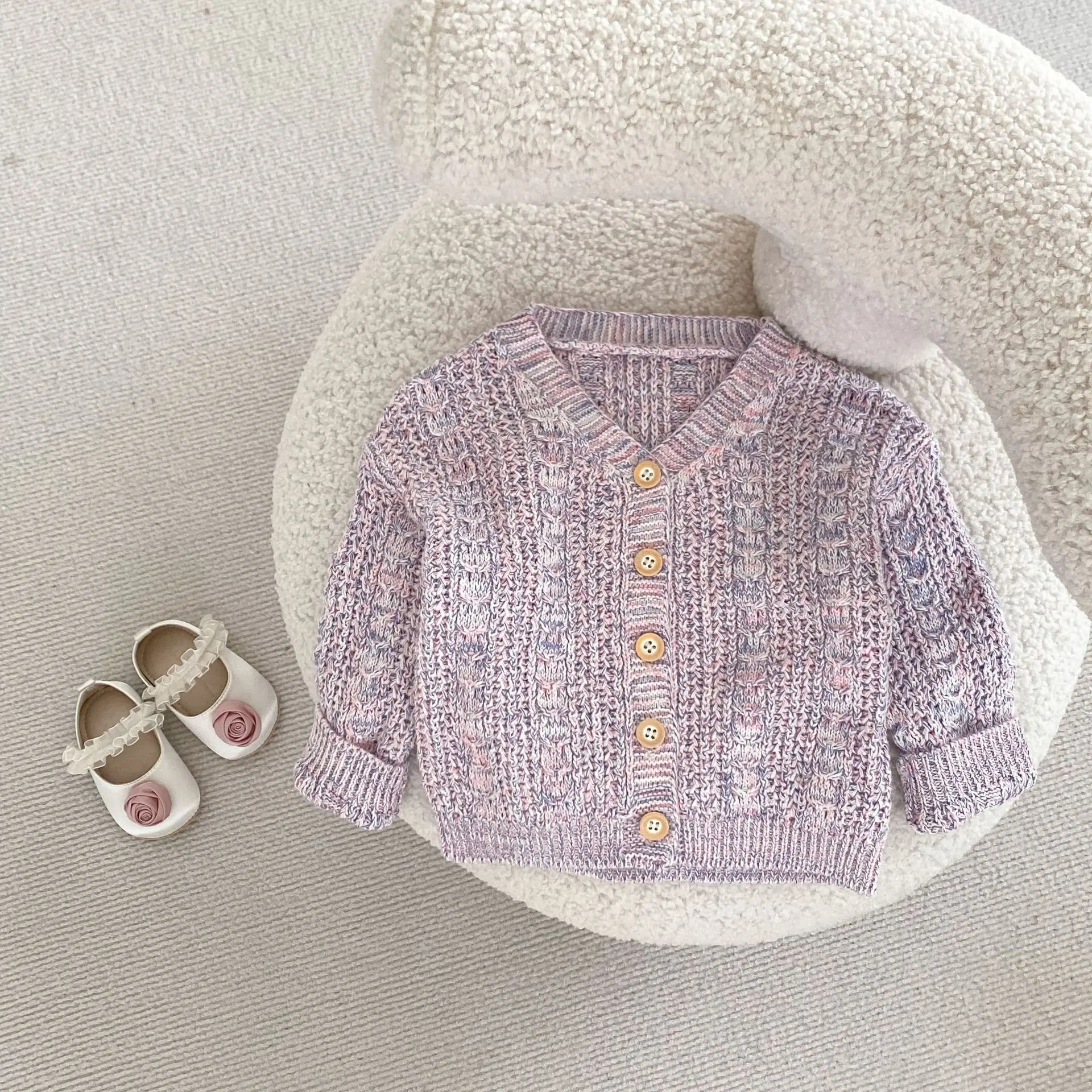 ベビーカーディガン カラフルネップ ざっくりニットジャケット パープル【mh0006566】