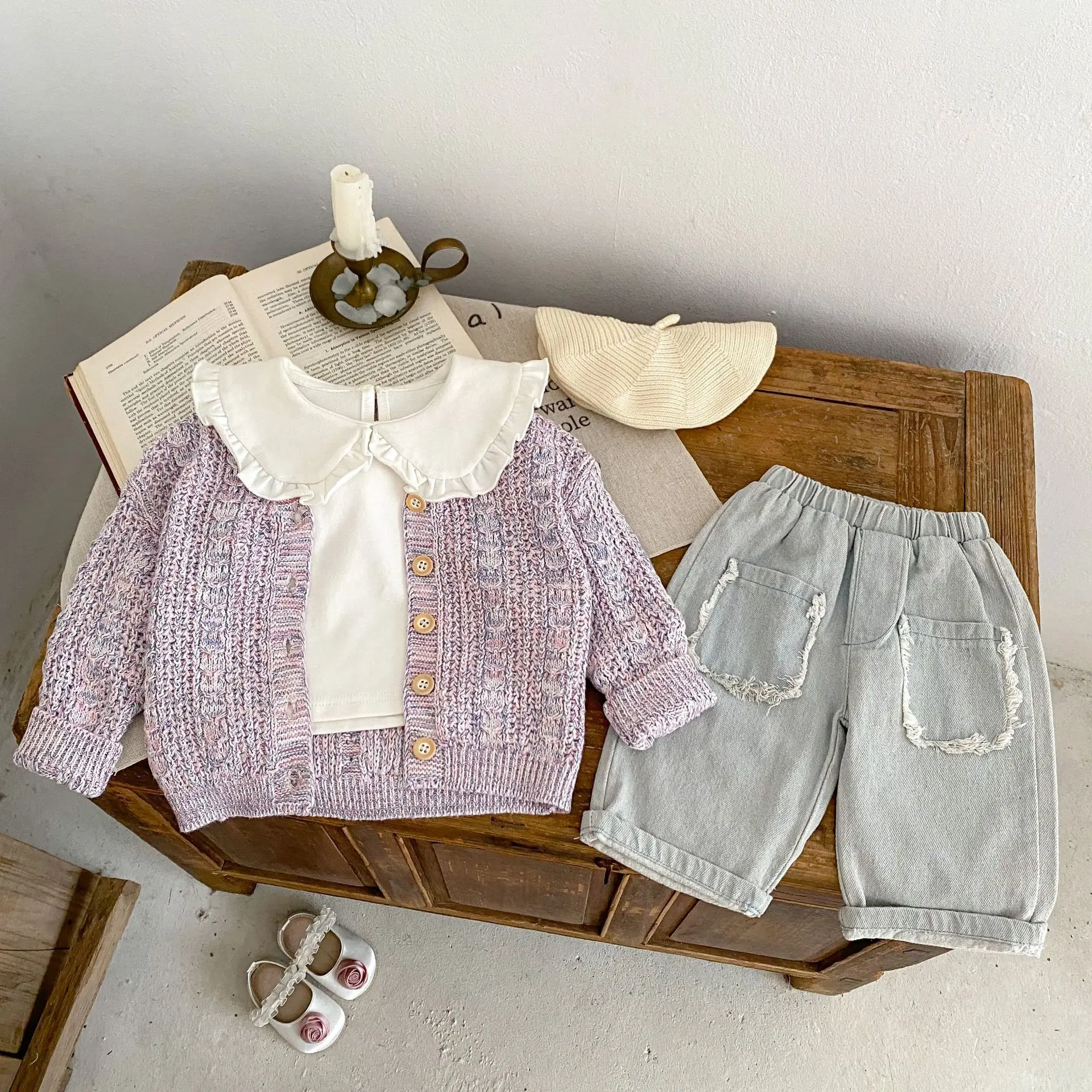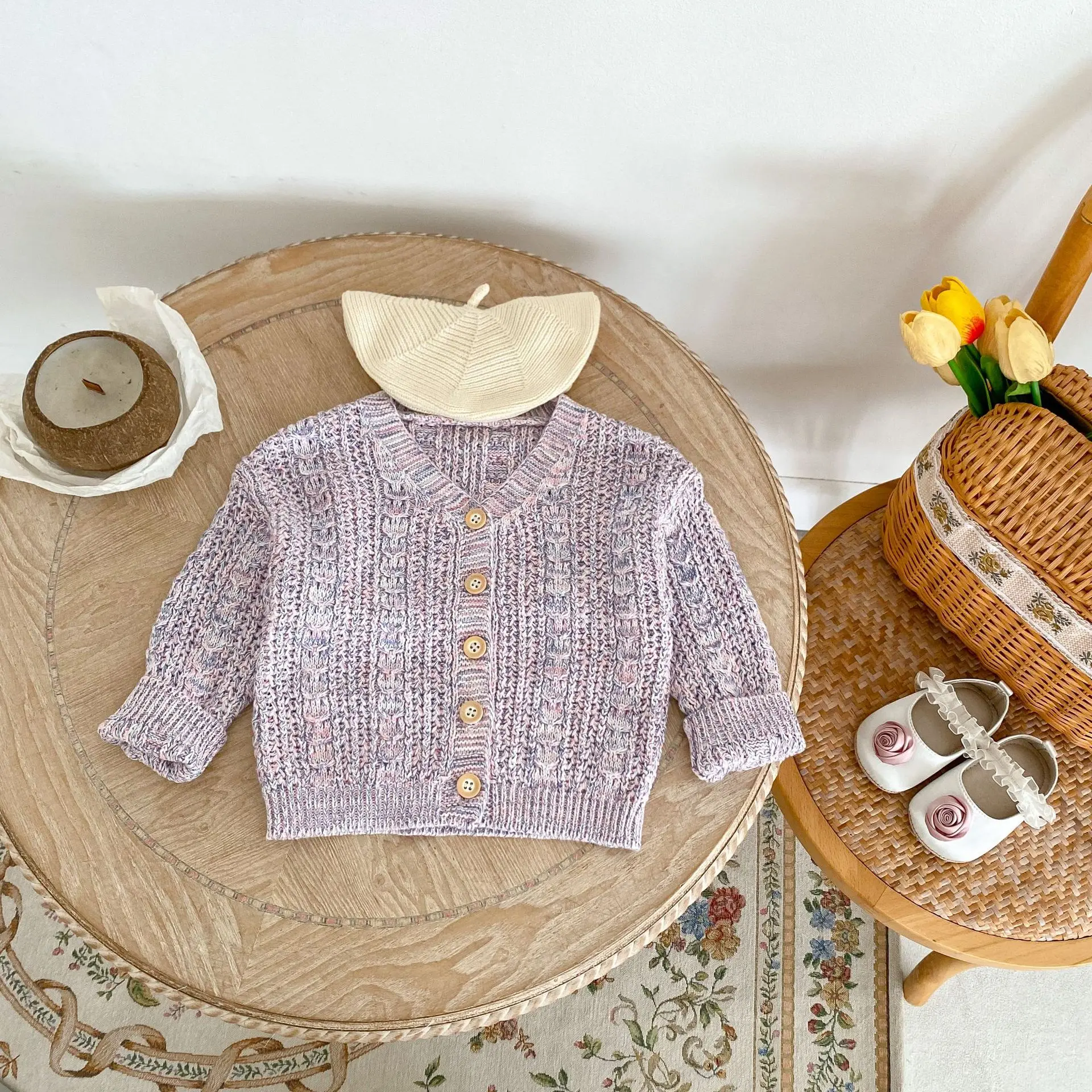 #ベビーカーディガン #ニットジャケット #カラフルネップ #秋ファッション #ベビーコーデ #パープル #ベビー服