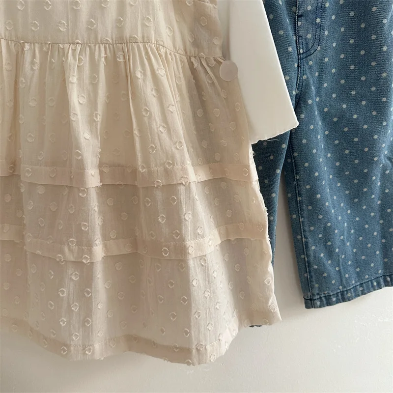 #キッズワンピース #刺繍レース #キャミソールドレス #ベージュドレス #韓国スタイル #重ね着 #秋冬コーデ #子供服 #森ガール