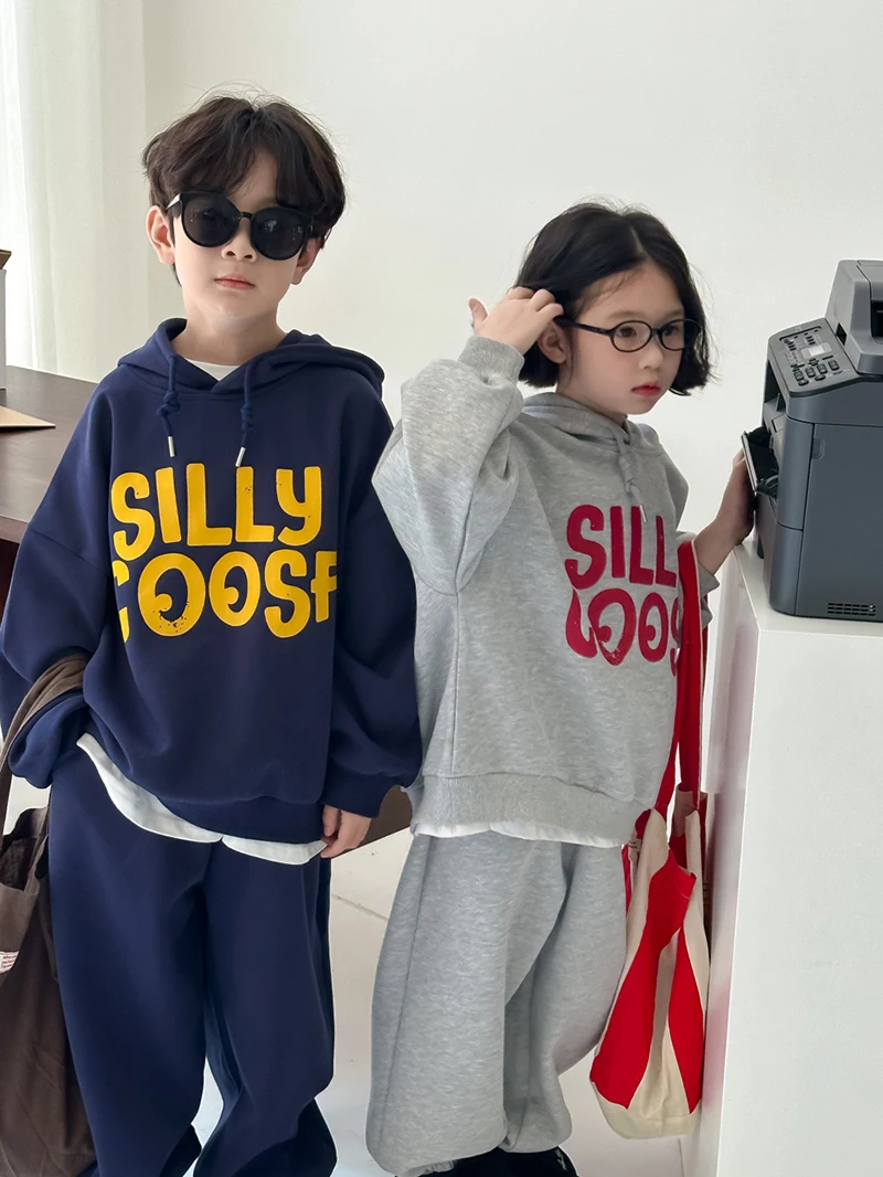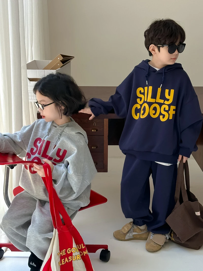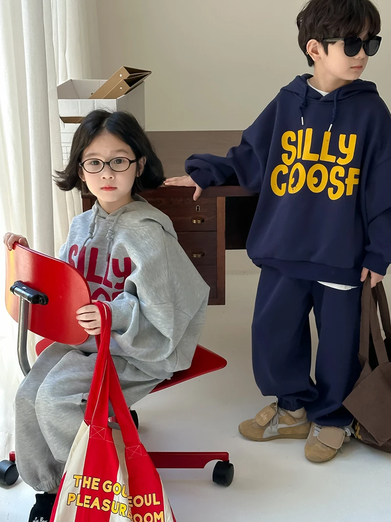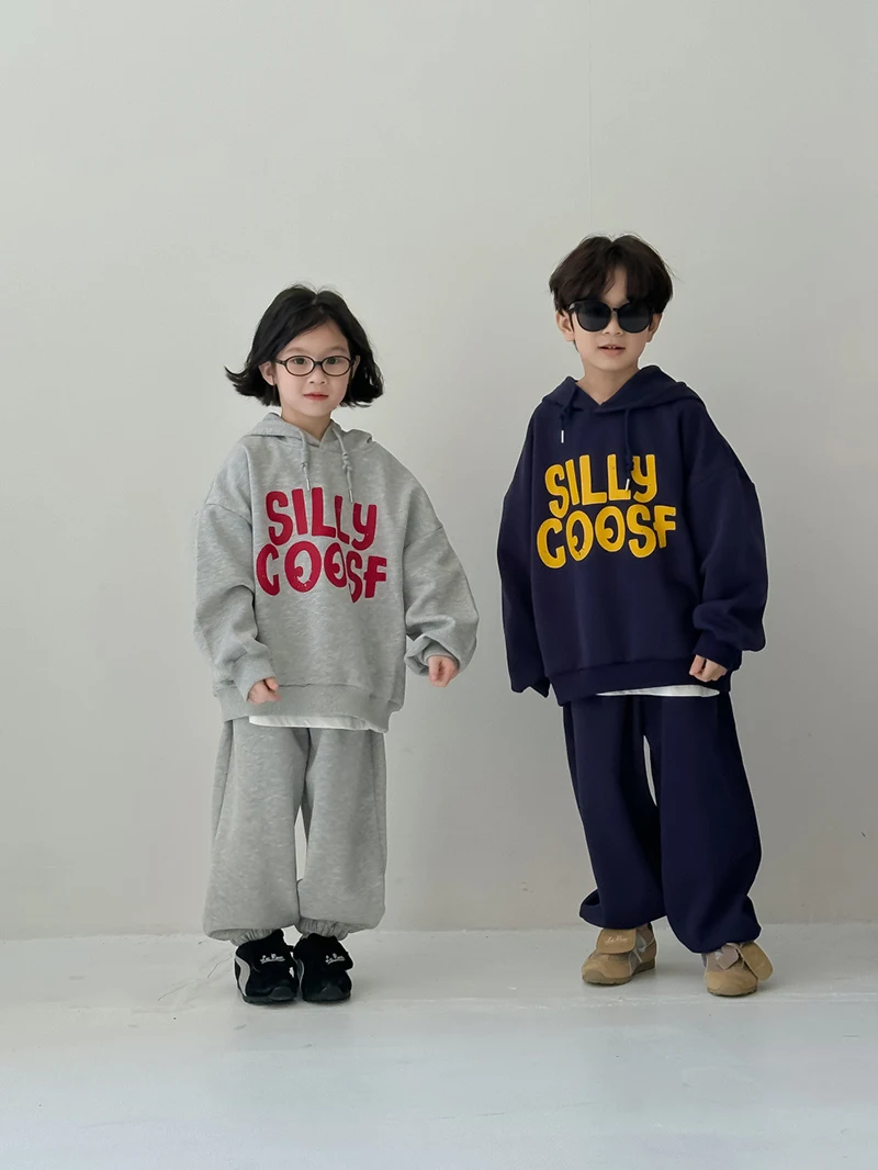 シンプルでスタイリッシュなレターロゴプリントのスウェットフーディパーカーとスウェットパンツの2点セットです。柔らかく動きやすい素材で、秋のアクティブな日常に最適なアイテム。フード付きのパーカーは、カジュアルながらもおしゃれな印象を演出します。パンツはウエストゴム仕様で、フィット感も抜群。2色展開で、男の子も女の子も楽しめるデザインです。