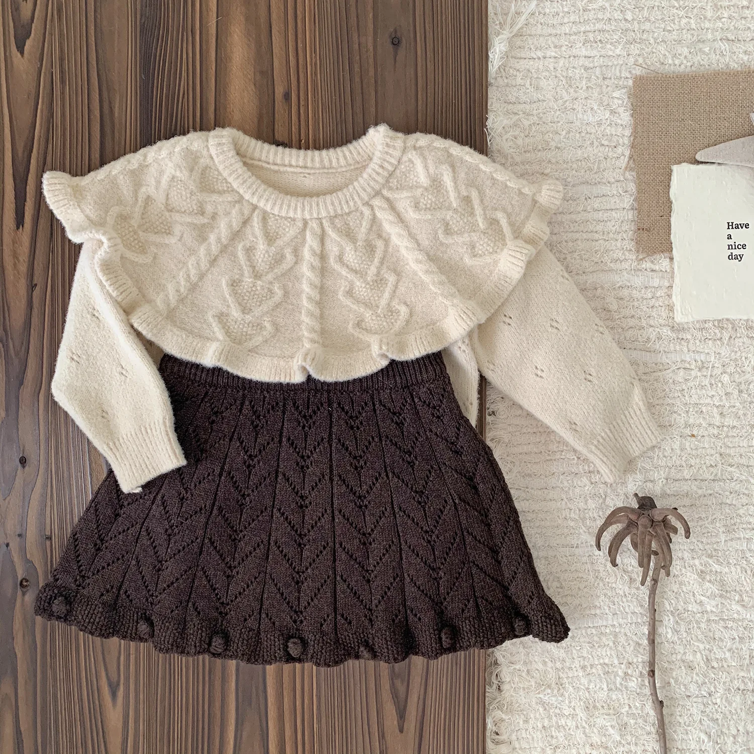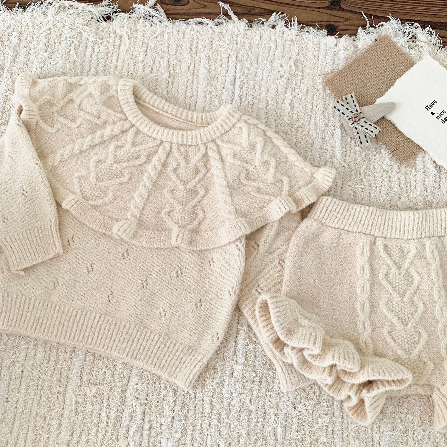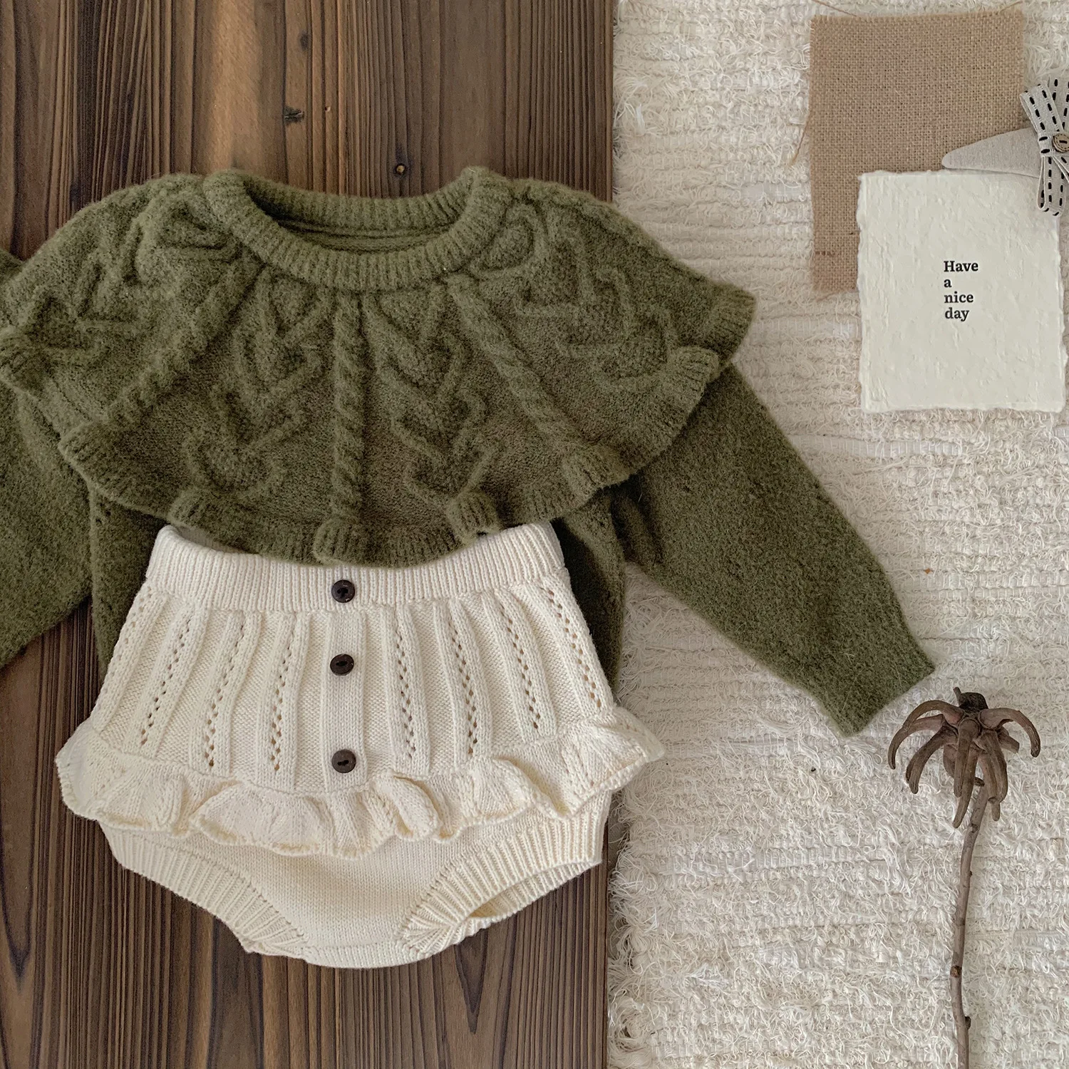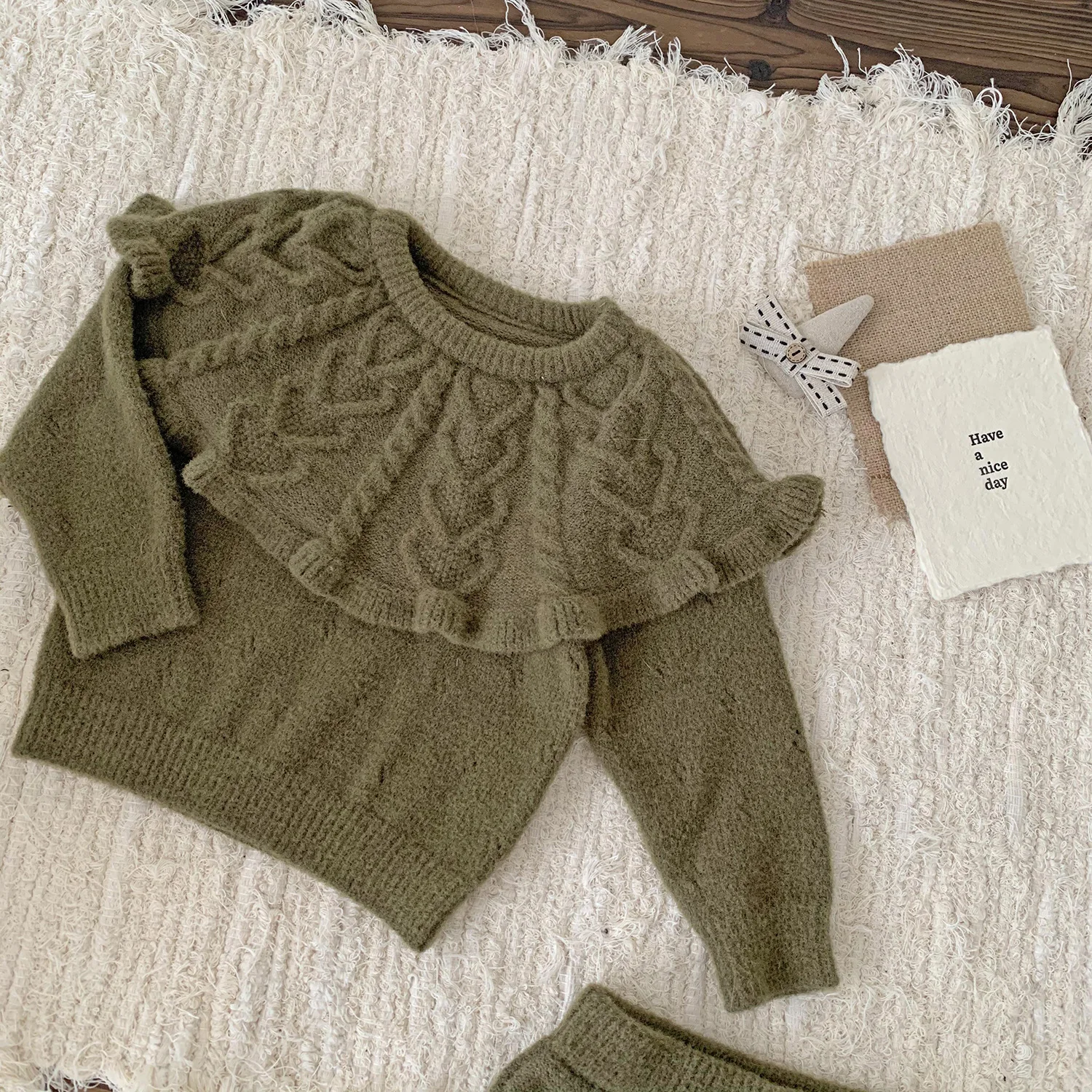 #ベビーセットアップ #ニットセーター #フリルパンツ #ラッフル襟 #韓国子供服 #キッズファッション #ベビーファッション