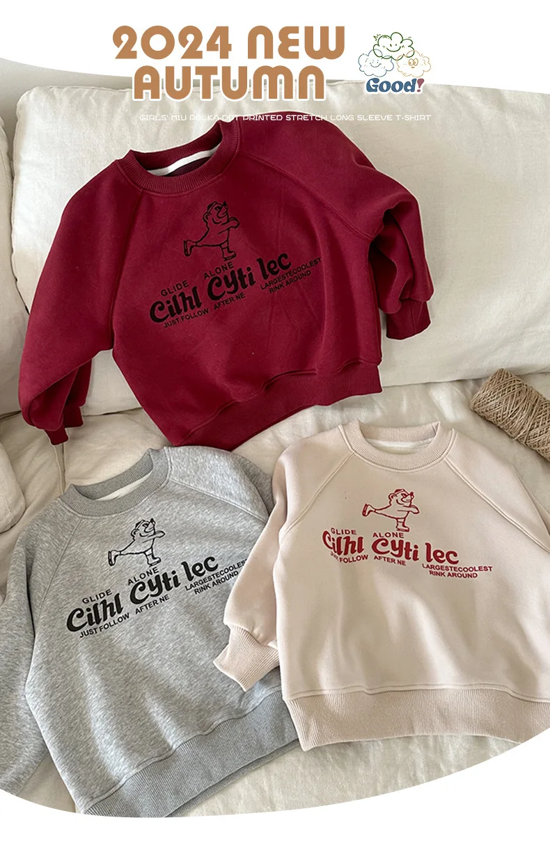 キッズトップス レターロゴプリント長袖スウェットトレーナー【mh0008240】