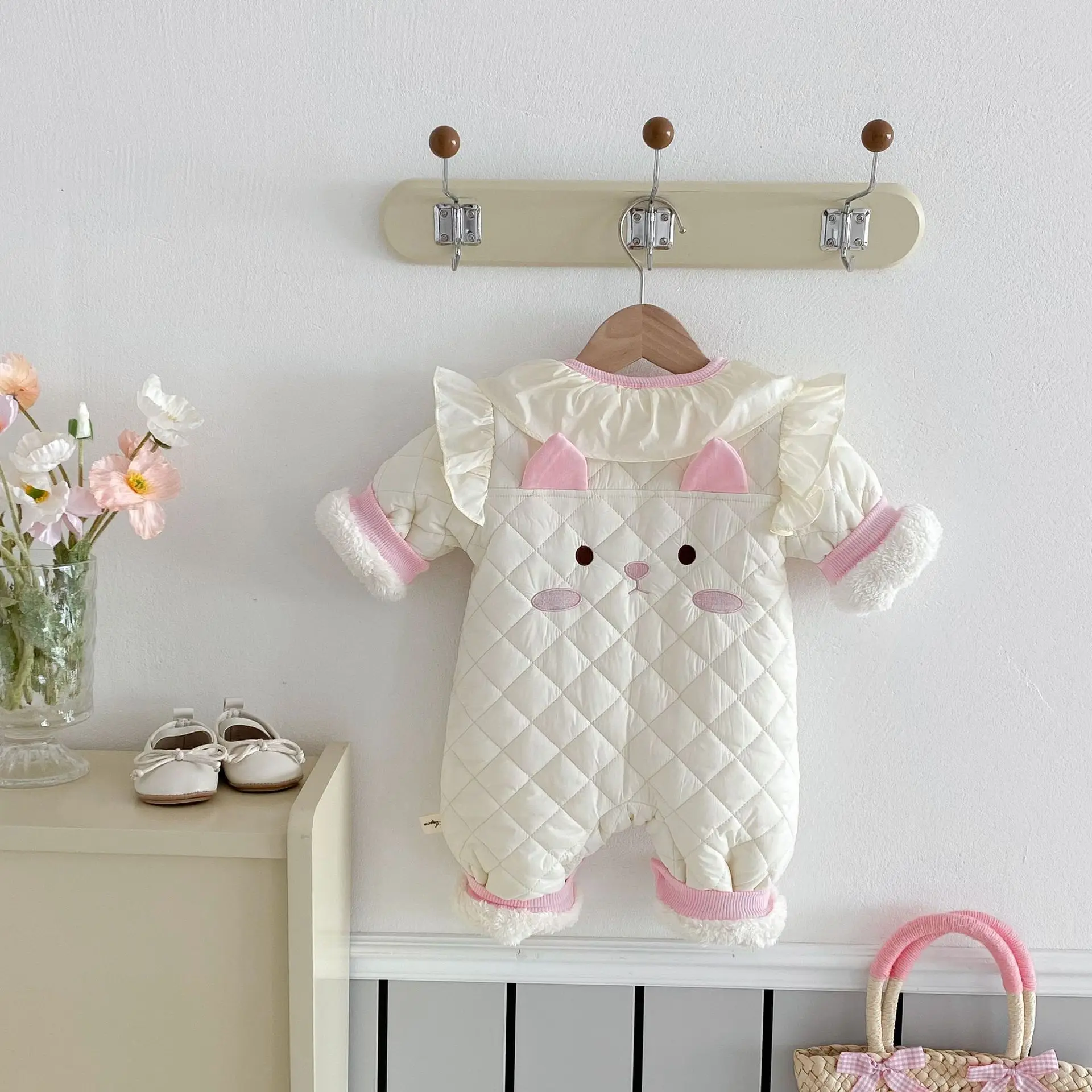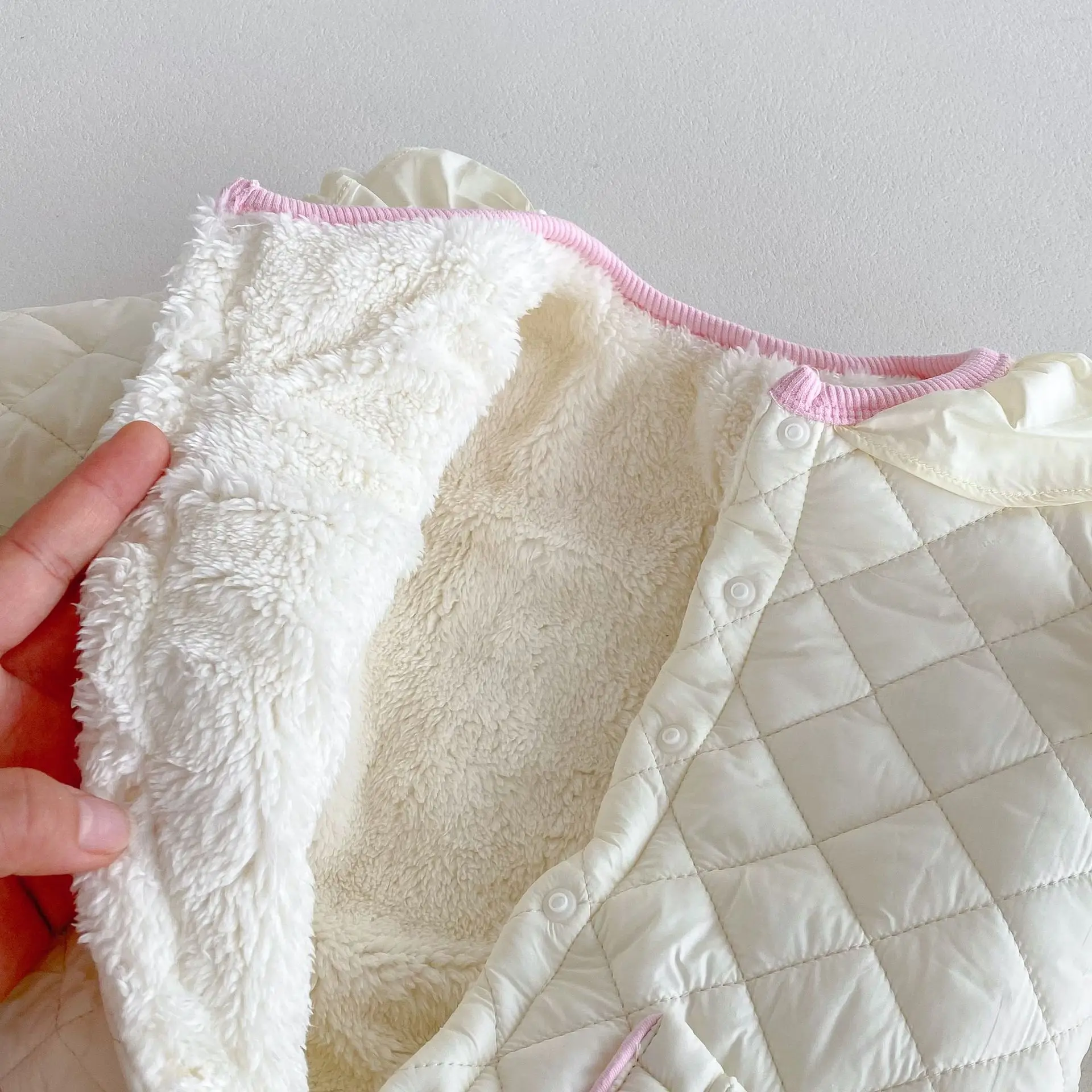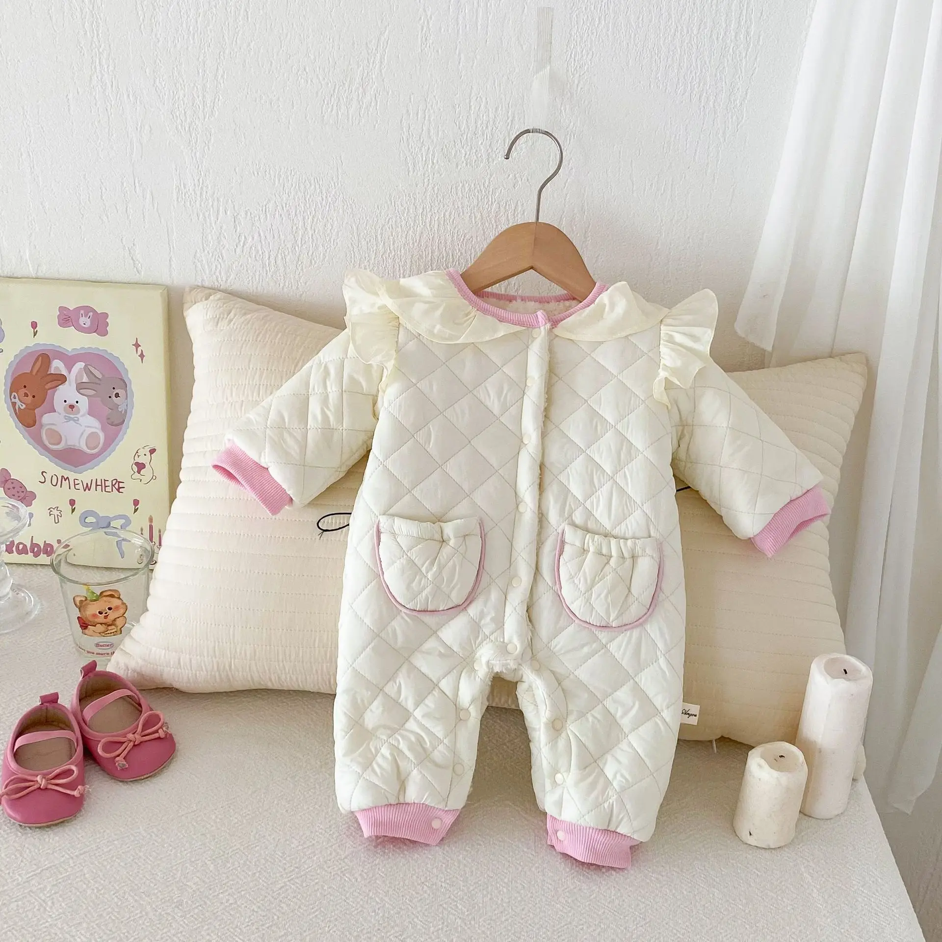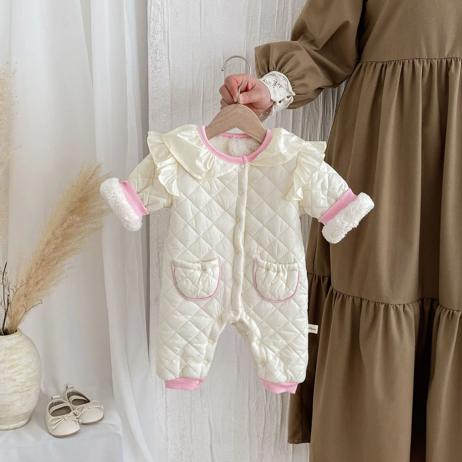 ベビーアウタージャンプスーツ キルティング裏フリースショルダーフリル長袖ロンパース【mh0008276】