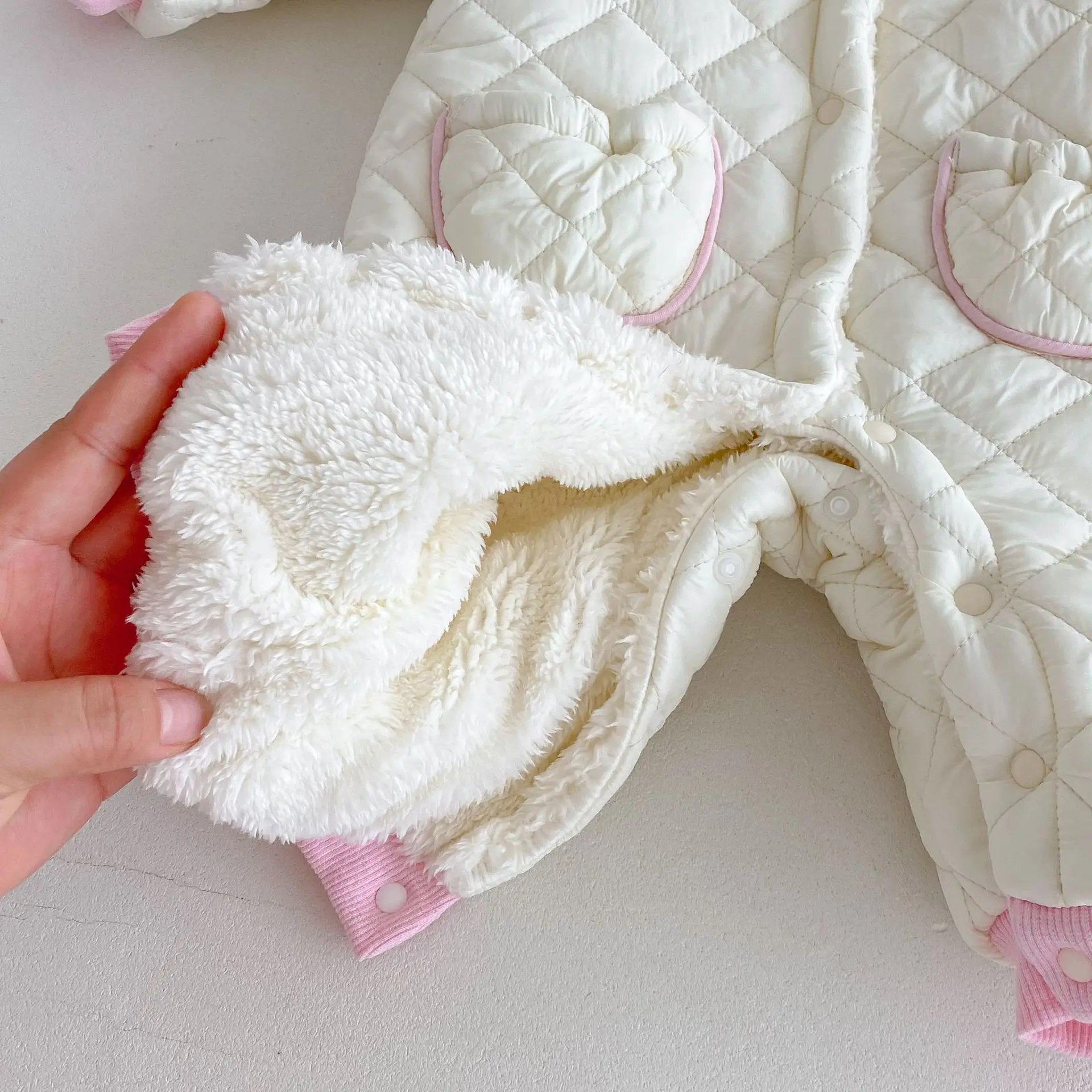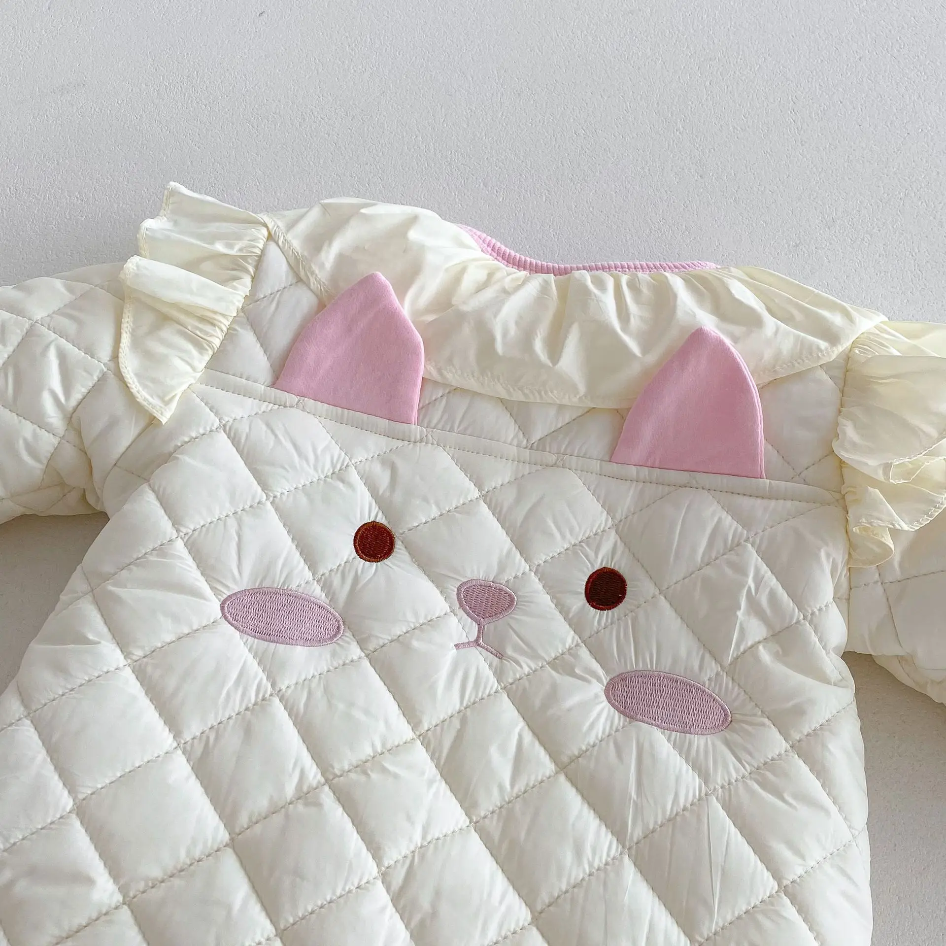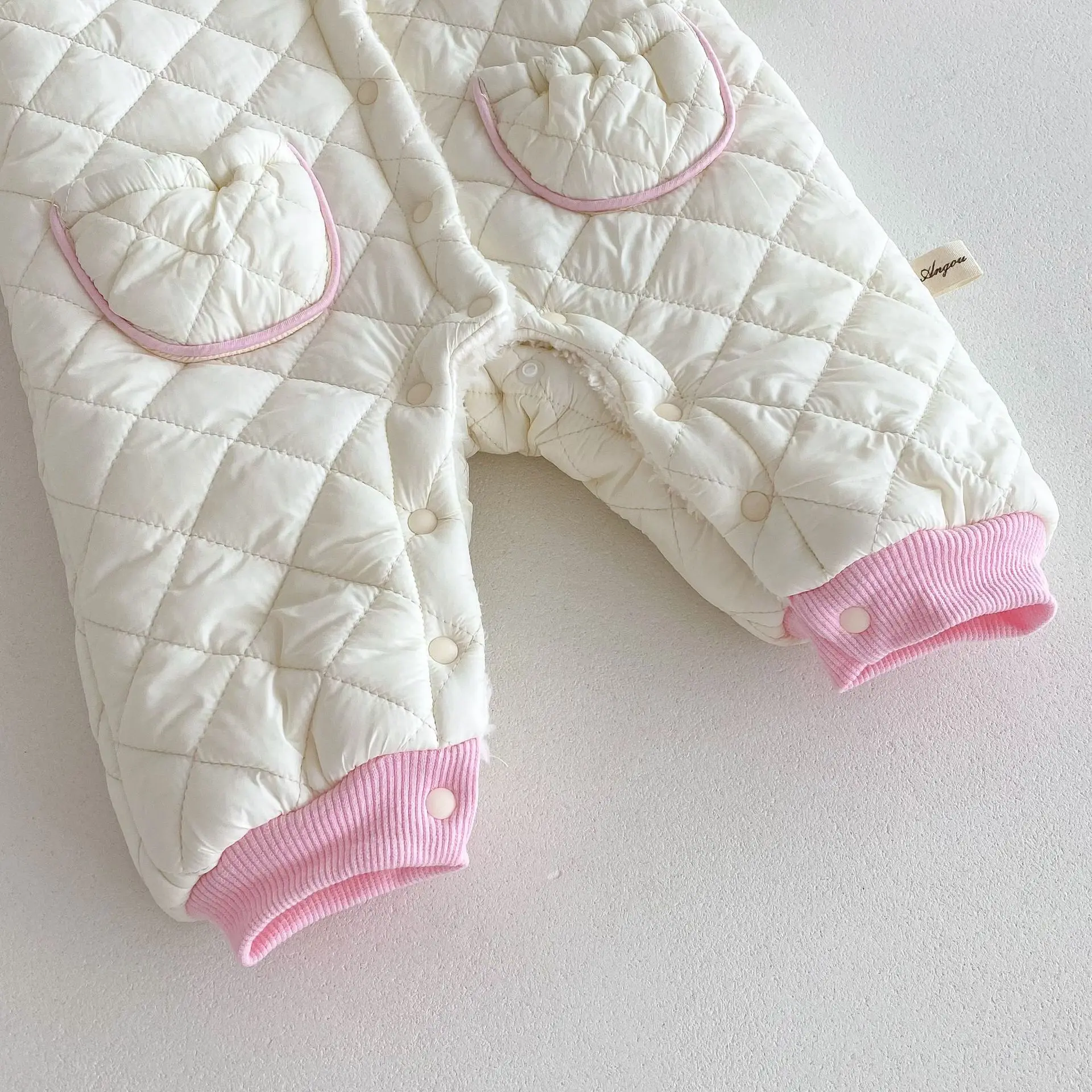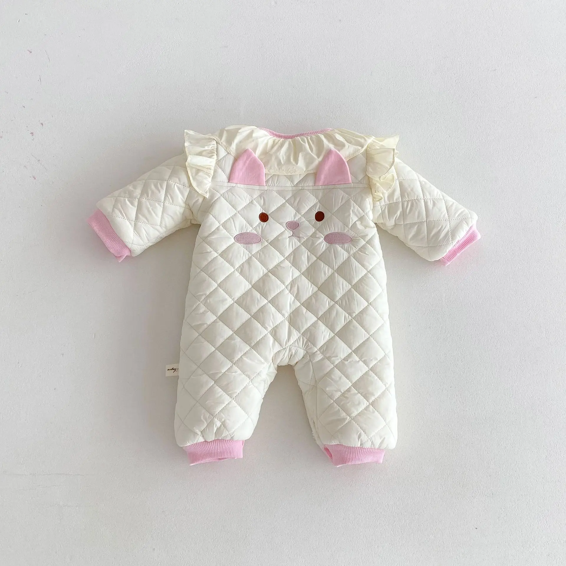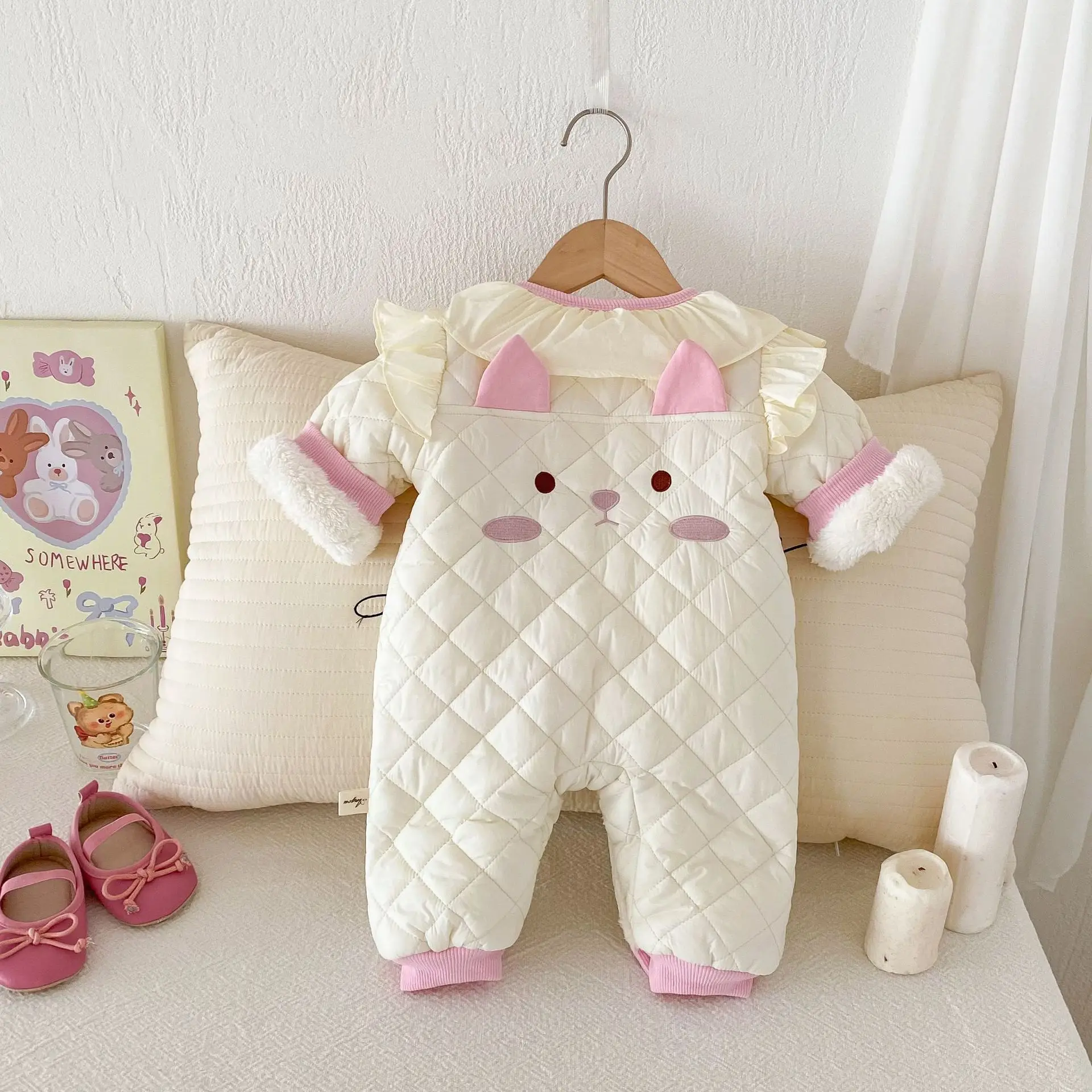 ベビーアウタージャンプスーツ キルティング裏フリースショルダーフリル長袖ロンパース【mh0008276】
