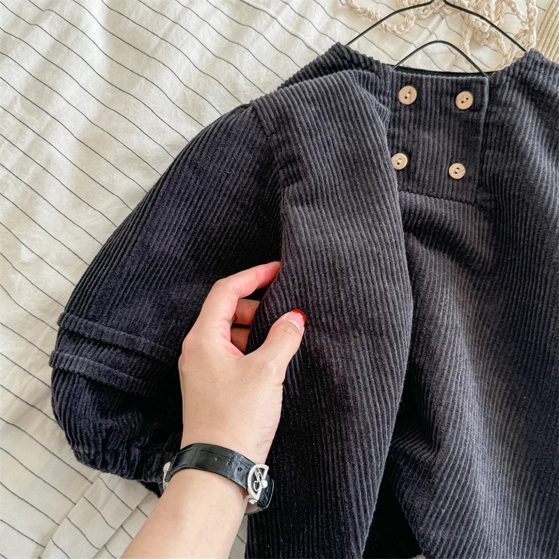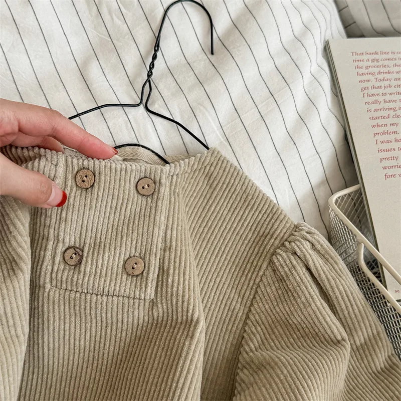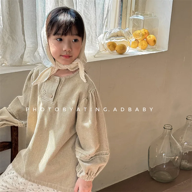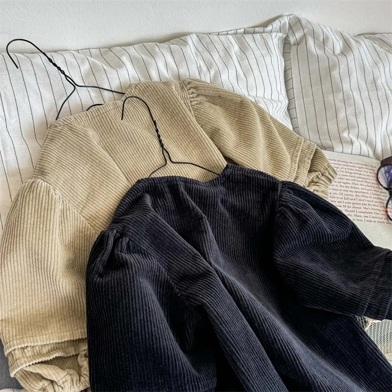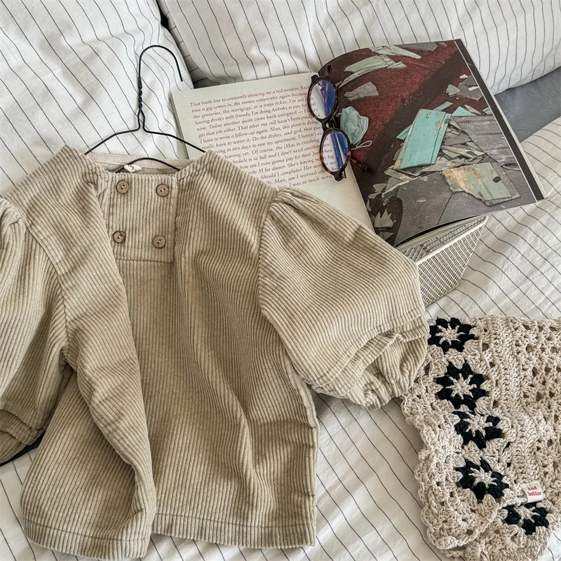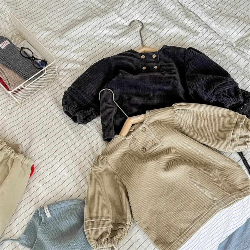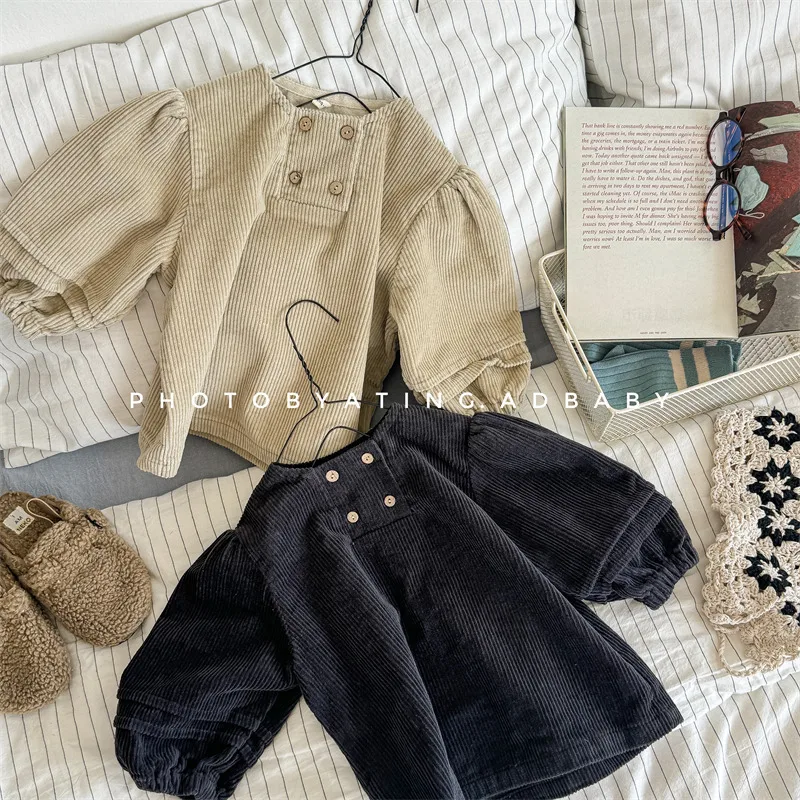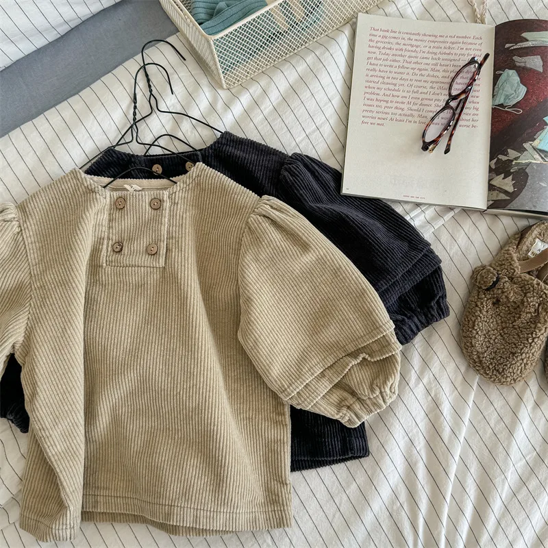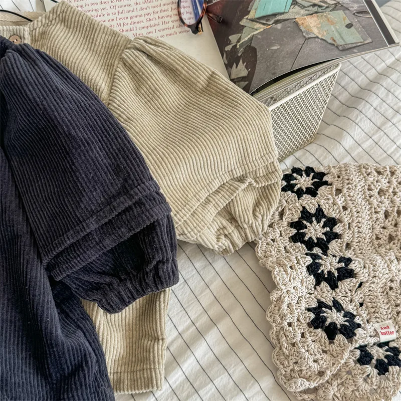 #キッズファッション #ベビー服 #コーデュロイブラウス #パフスリーブ #韓国子供服 #長袖トップス #カジュアルブラウス