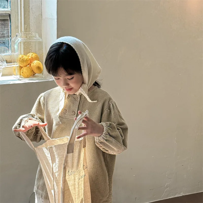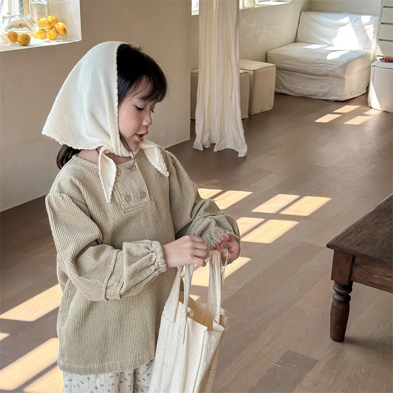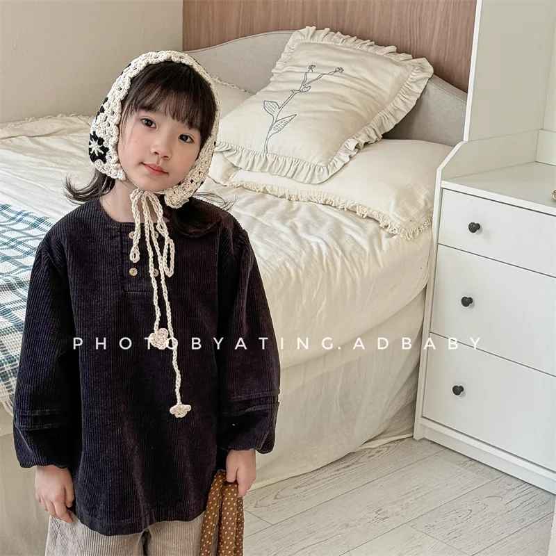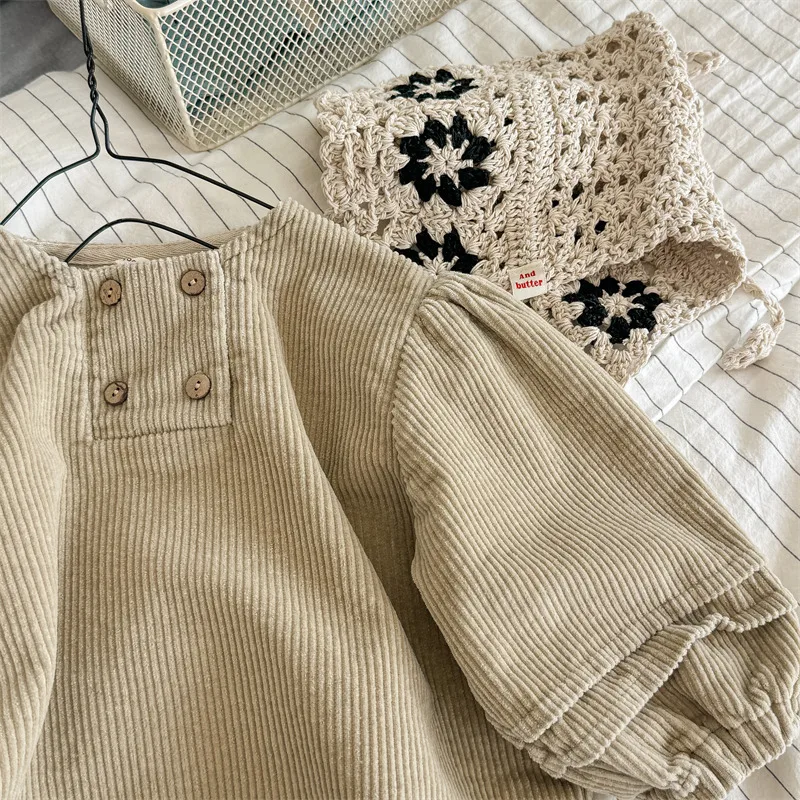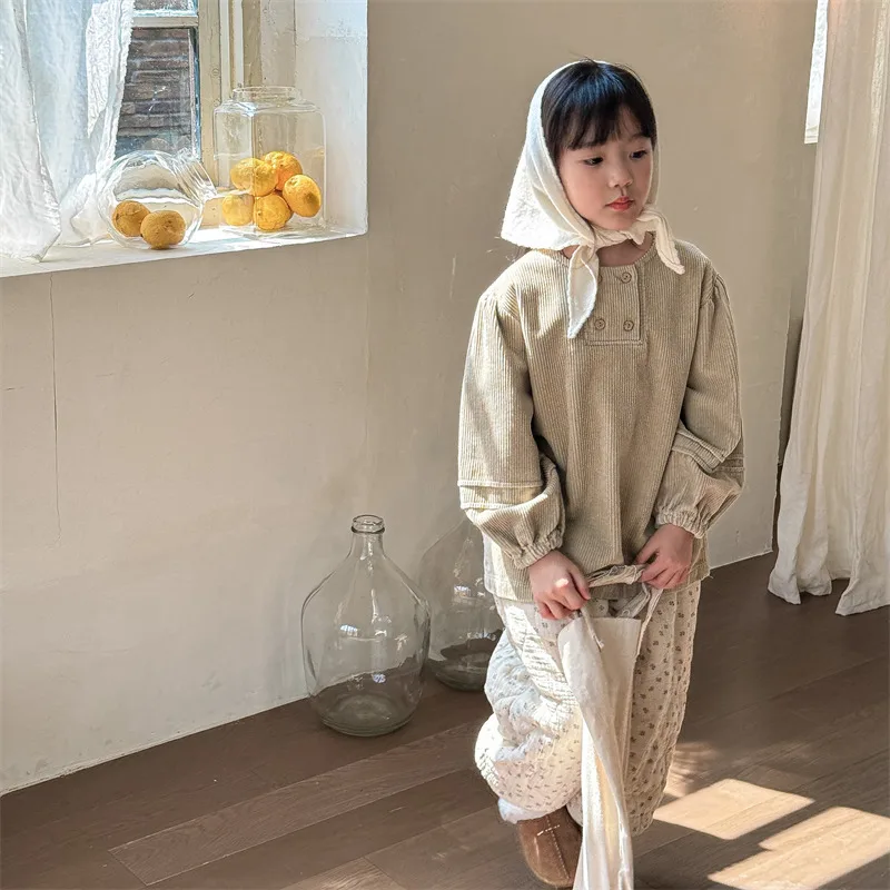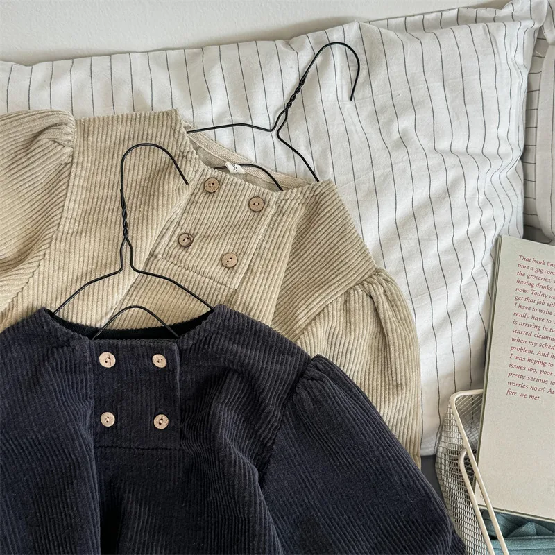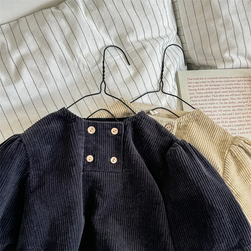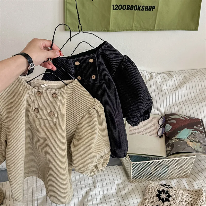 #キッズファッション #ベビー服 #コーデュロイブラウス #パフスリーブ #韓国子供服 #長袖トップス #カジュアルブラウス