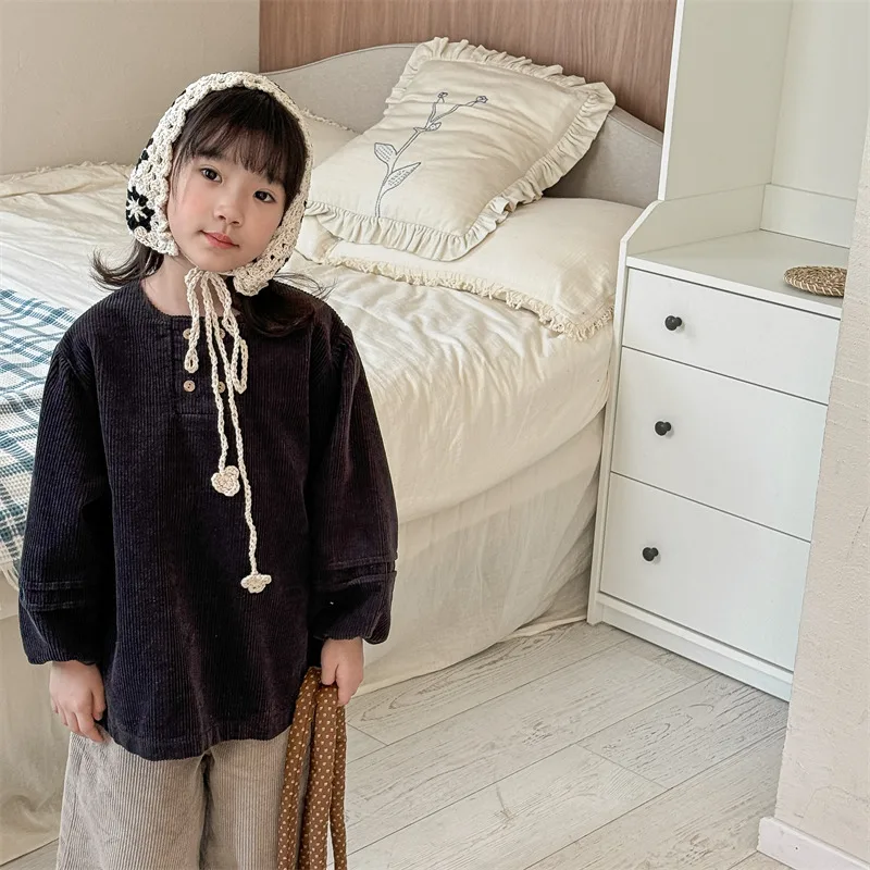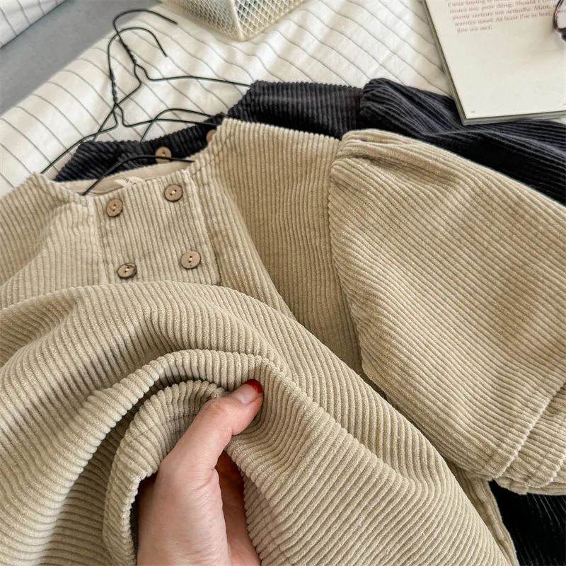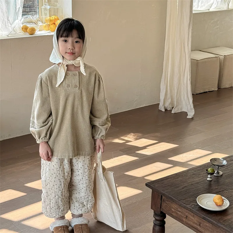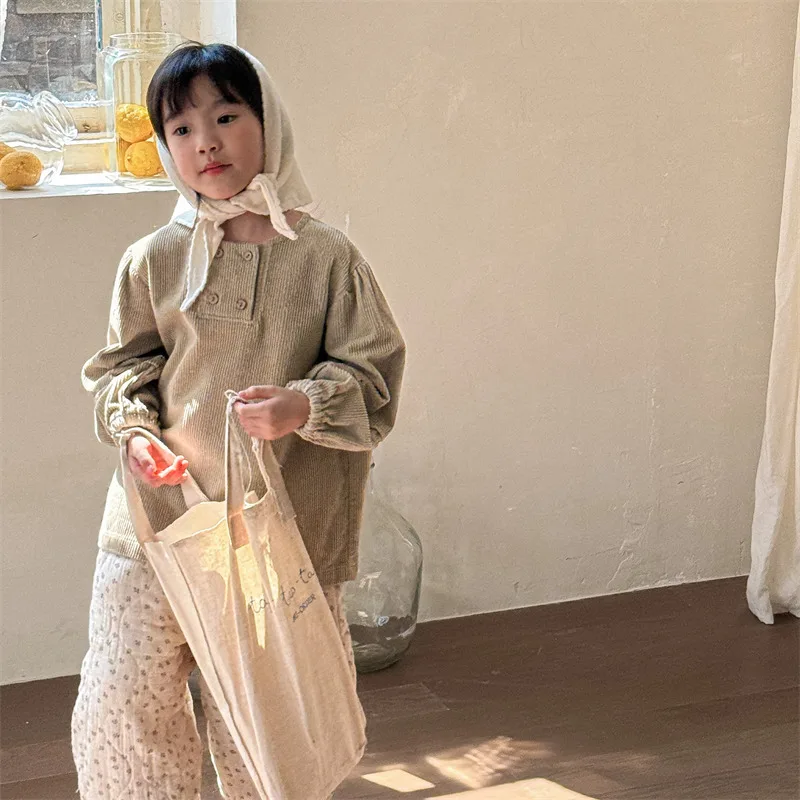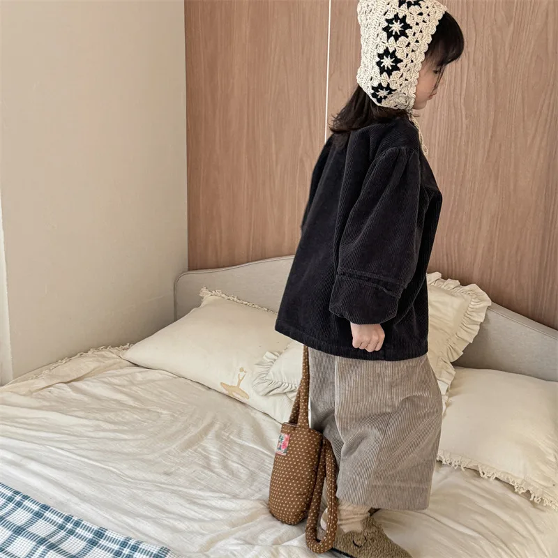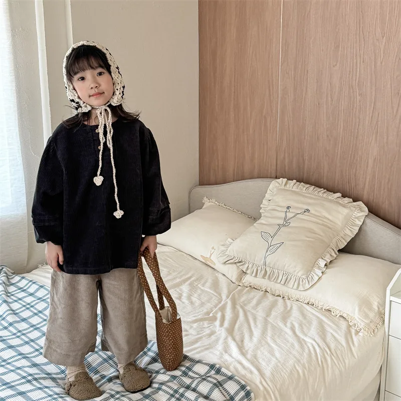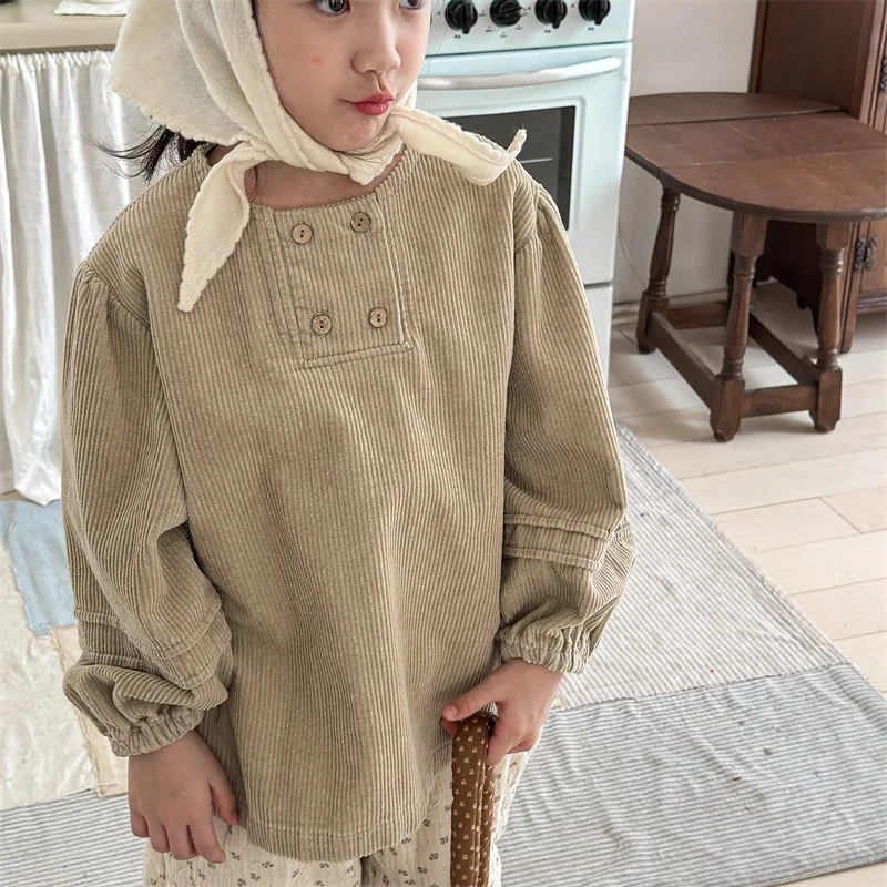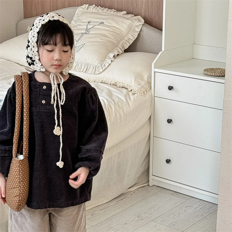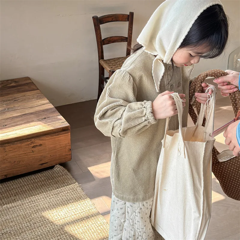 #キッズファッション #ベビー服 #コーデュロイブラウス #パフスリーブ #韓国子供服 #長袖トップス #カジュアルブラウス