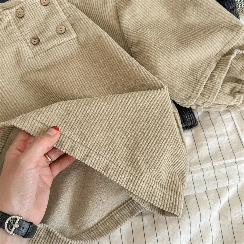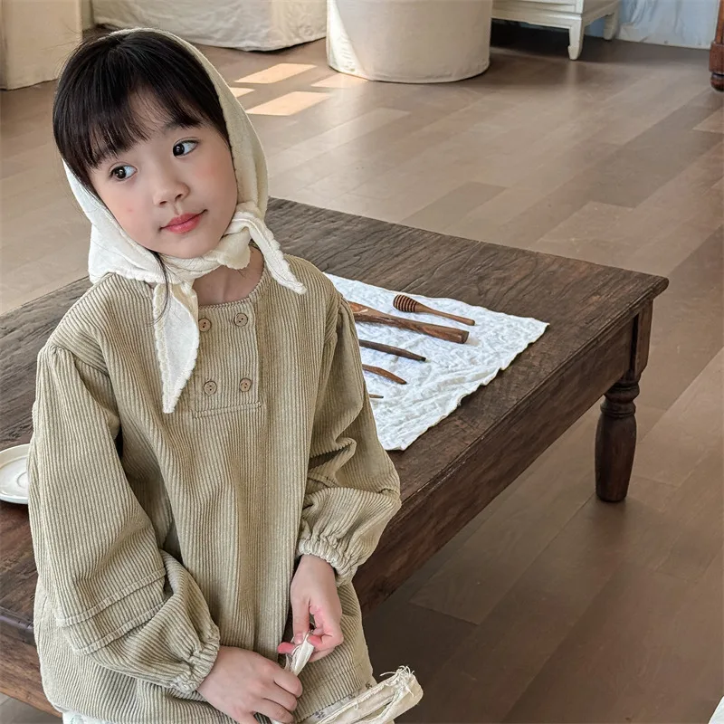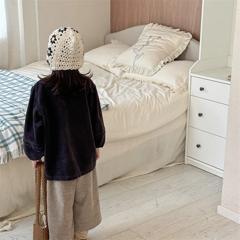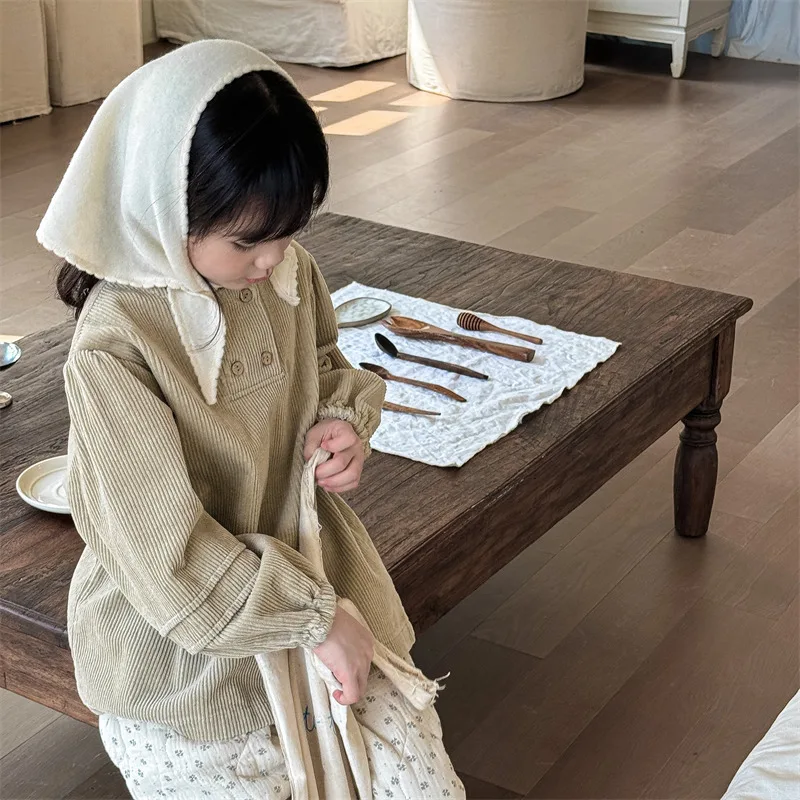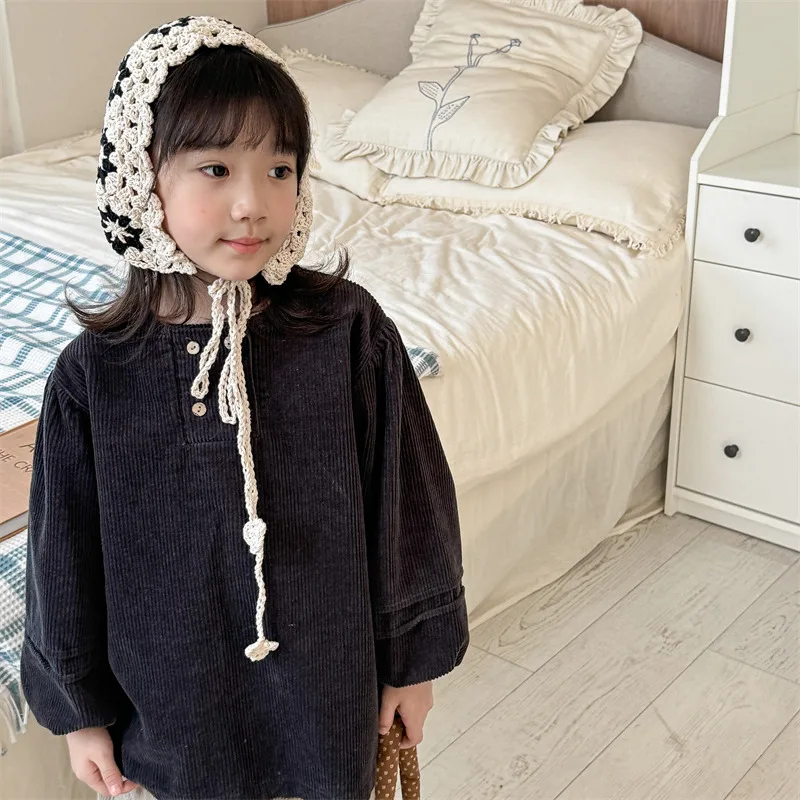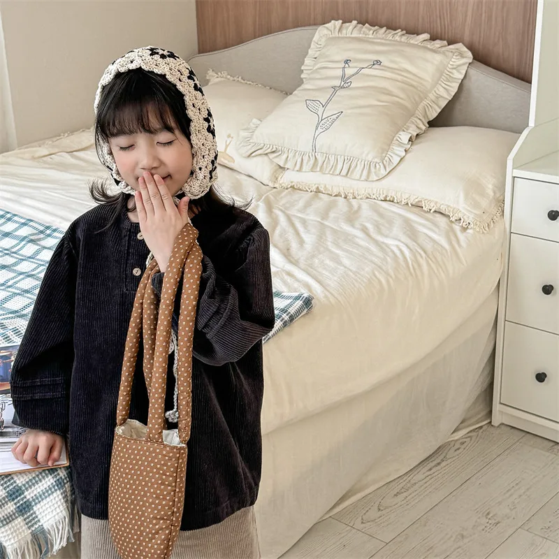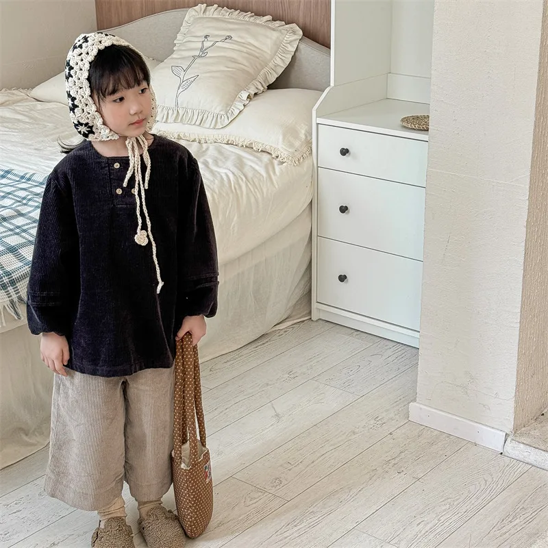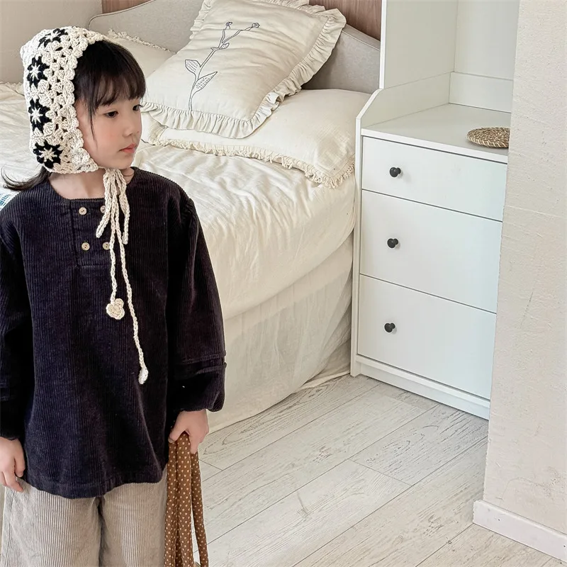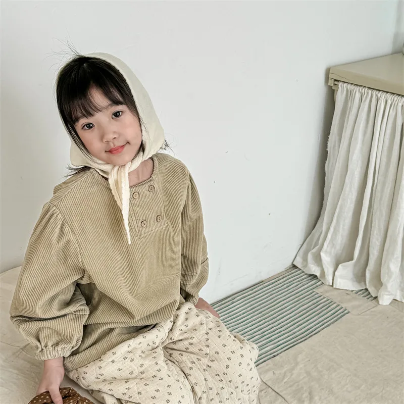 #キッズファッション #ベビー服 #コーデュロイブラウス #パフスリーブ #韓国子供服 #長袖トップス #カジュアルブラウス