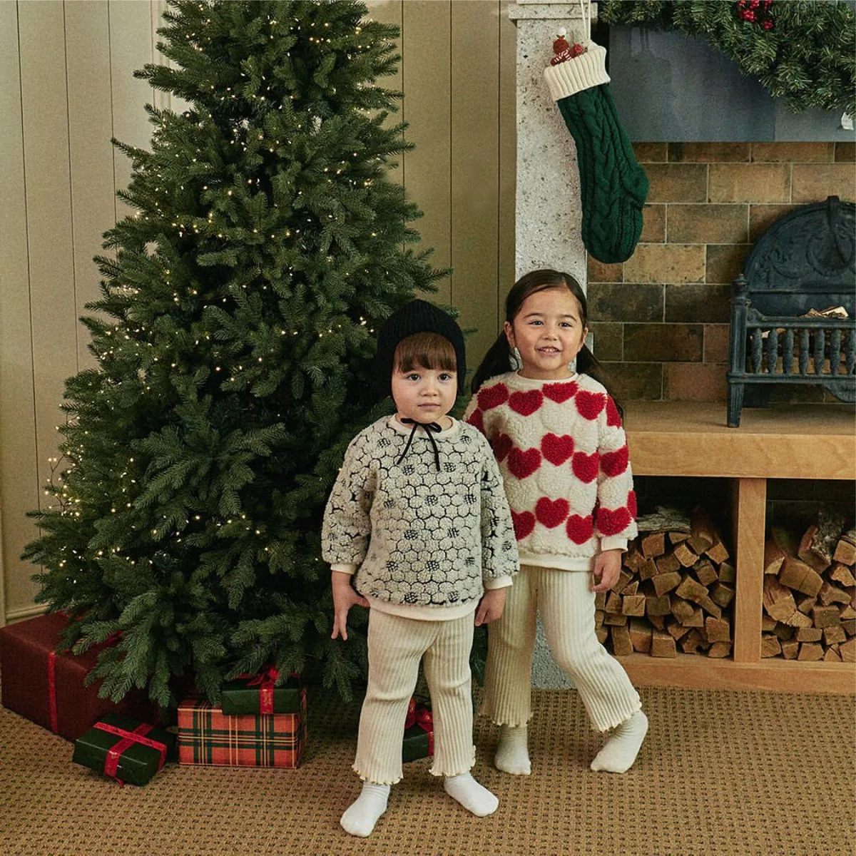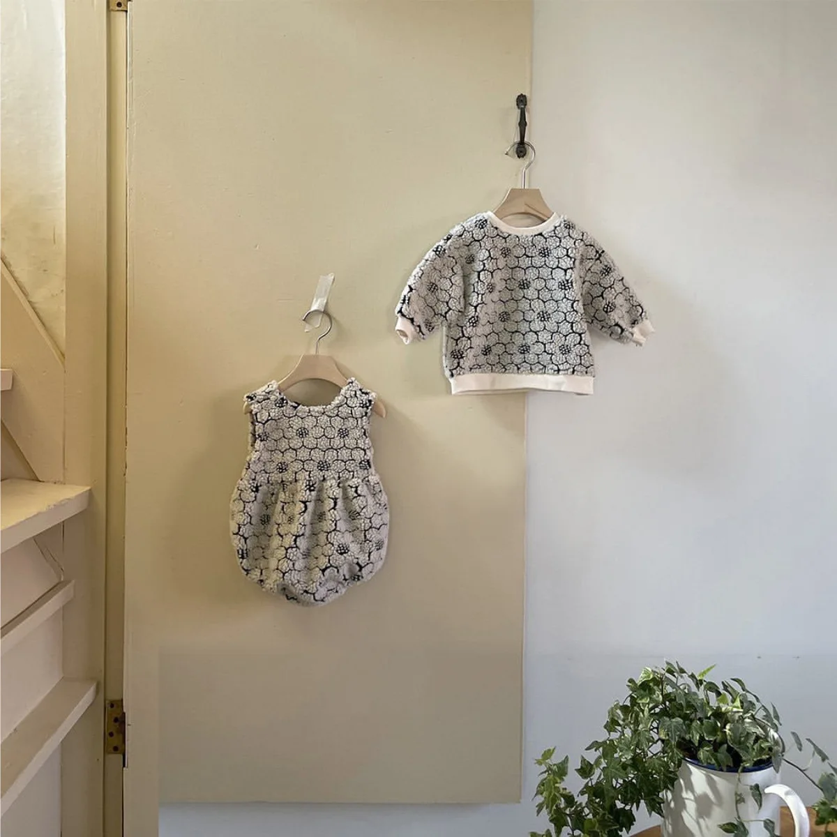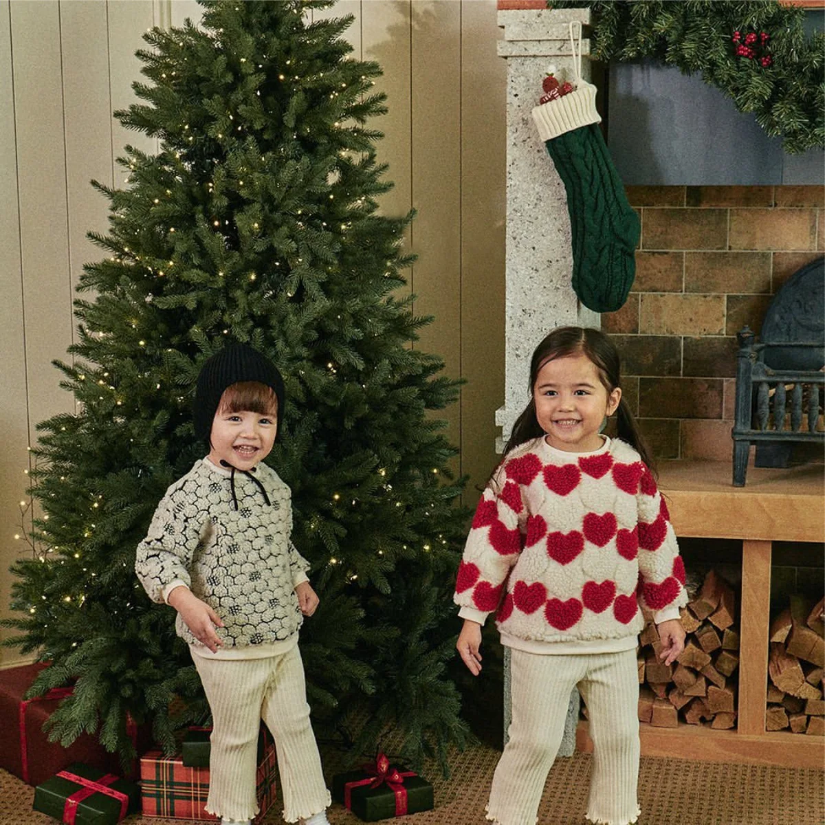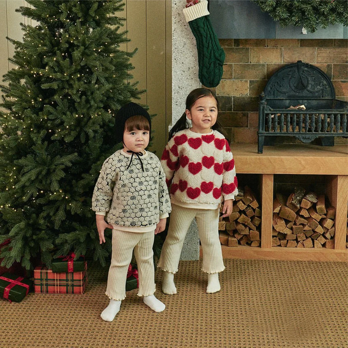 フラワーエンボスデザインが可愛らしいベビー向けボアフリーススウェットシャツです。柔らかなフリース素材を使用し、ふんわりとした肌触りで快適な着心地を提供。裏フリース仕様で暖かさをしっかりキープし、寒い日のお出かけや室内でのリラックスタイムにもぴったりです。シンプルながらもエンボス加工がアクセントとなり、コーディネートにさりげないおしゃれをプラスします。