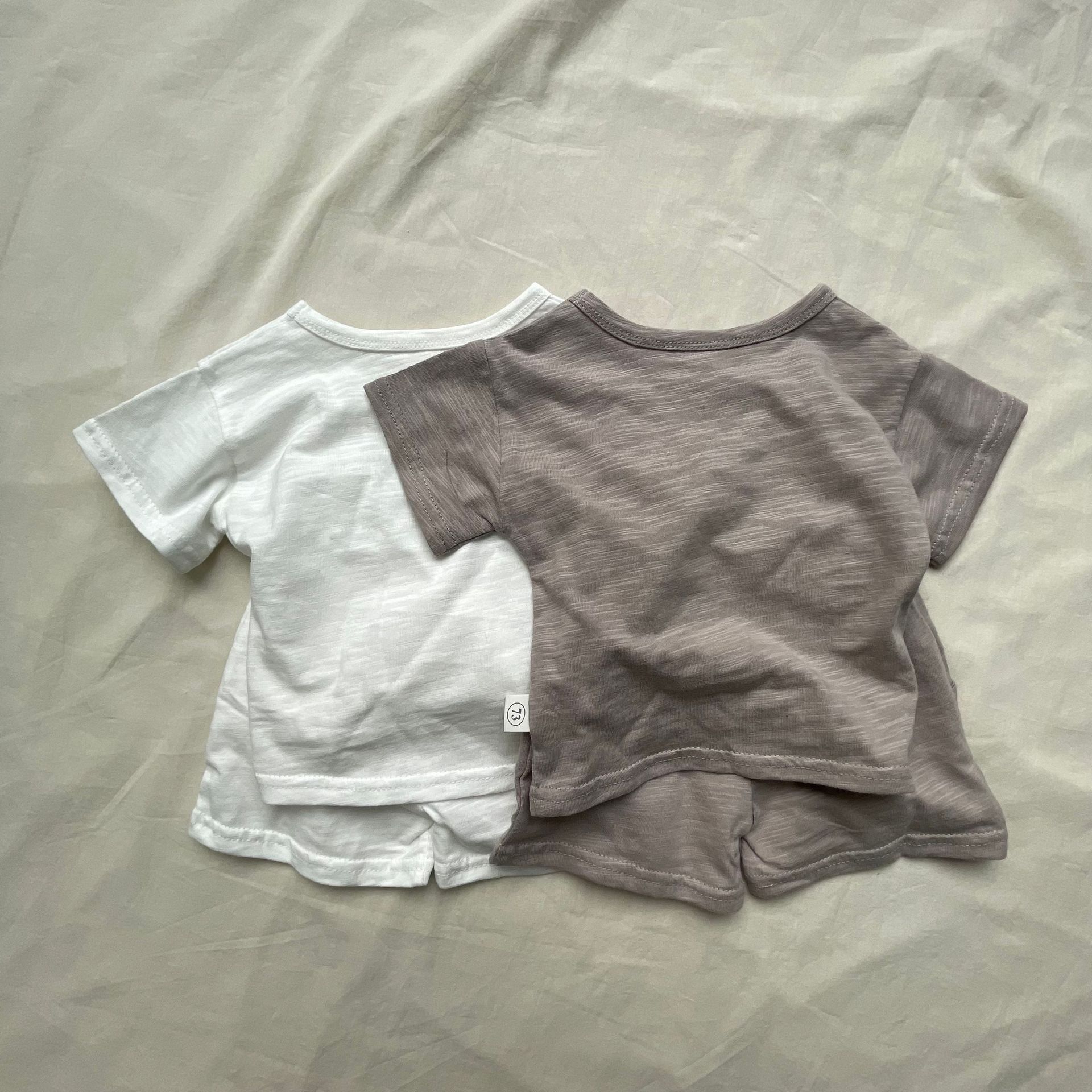 シンプルで使いやすい半袖Tシャツとショートパンツのセットアップです。温かみのある無地のカラーで、男の子にも女の子にもぴったりなアイテム。シンプルながらも、おしゃれで快適に着られるデザインが特徴です。ソフトなコットン素材を使用し、肌触りが良く、夏の暑い日にぴったりです。どんなコーディネートにも合わせやすく、デイリー使いに最適なセットです。お出かけやおうちでのリラックスタイムにも活躍します。