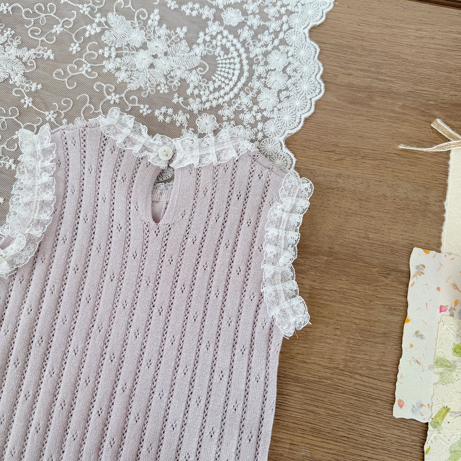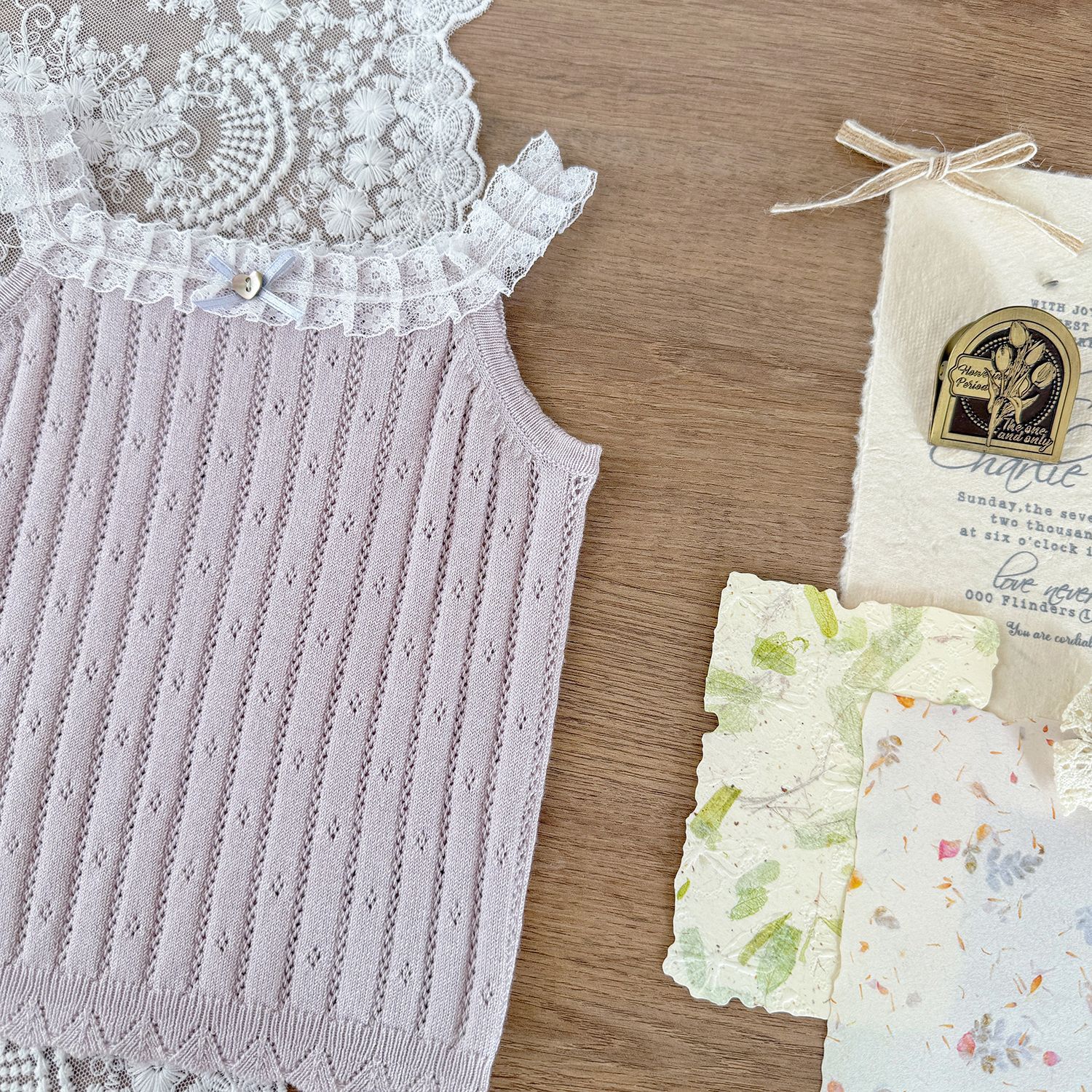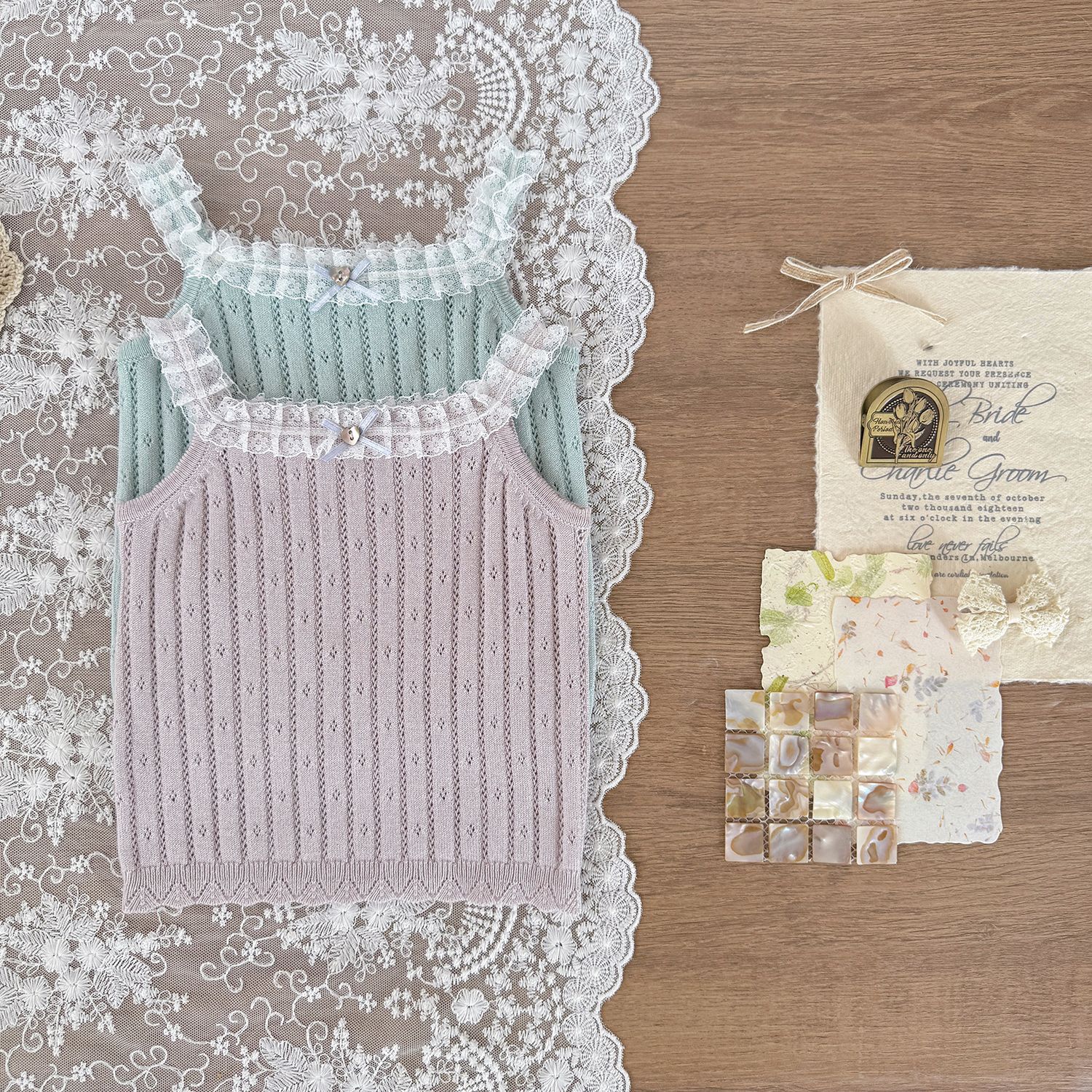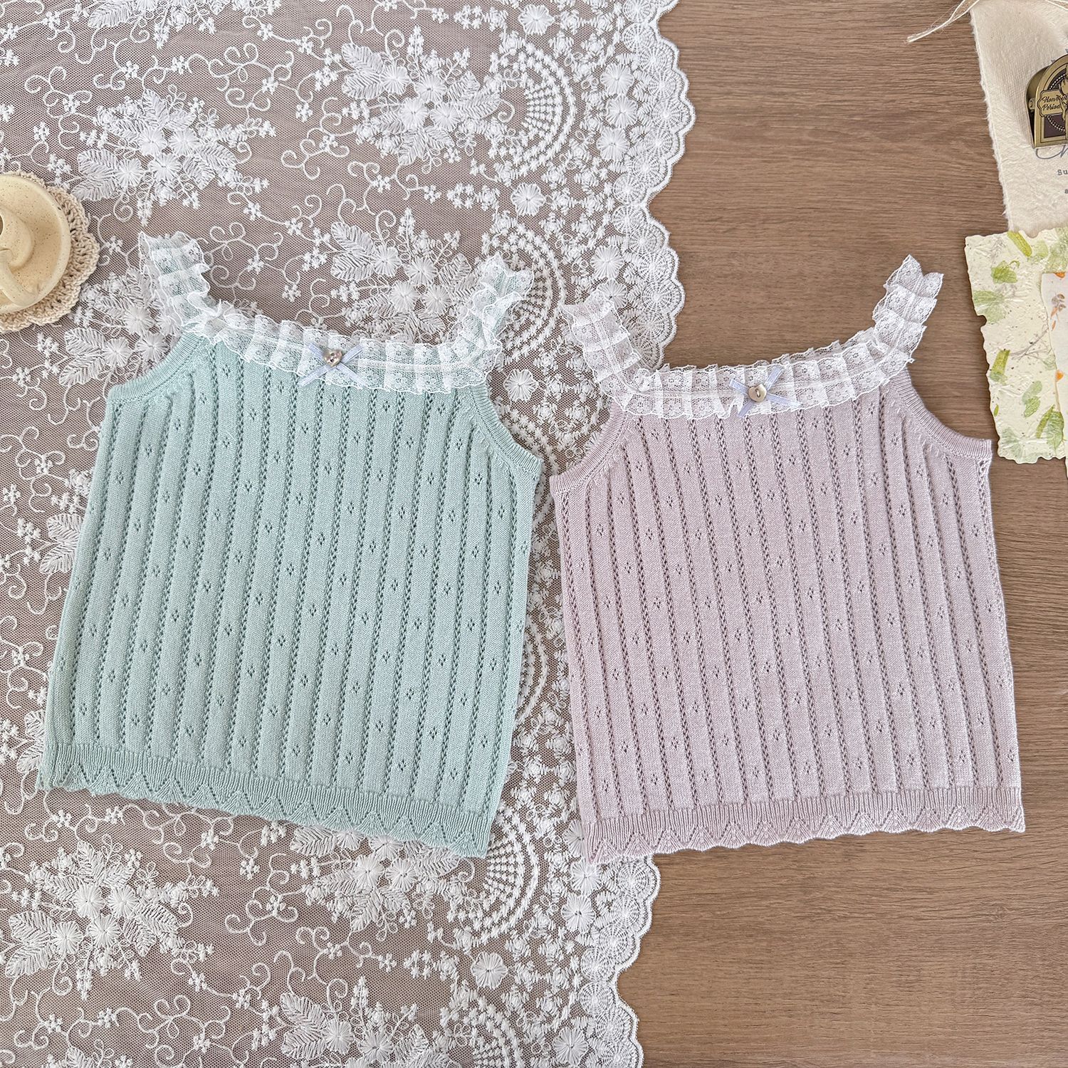 レースフリルニットキャミソール/ノースリーブトップス【mh0009567】
