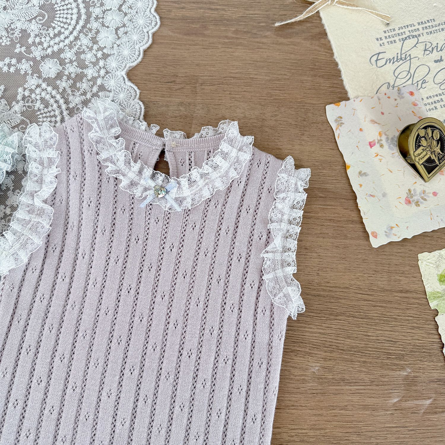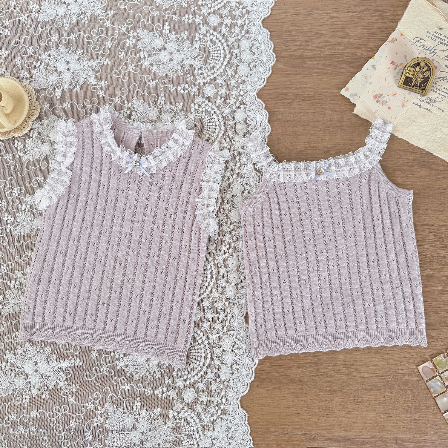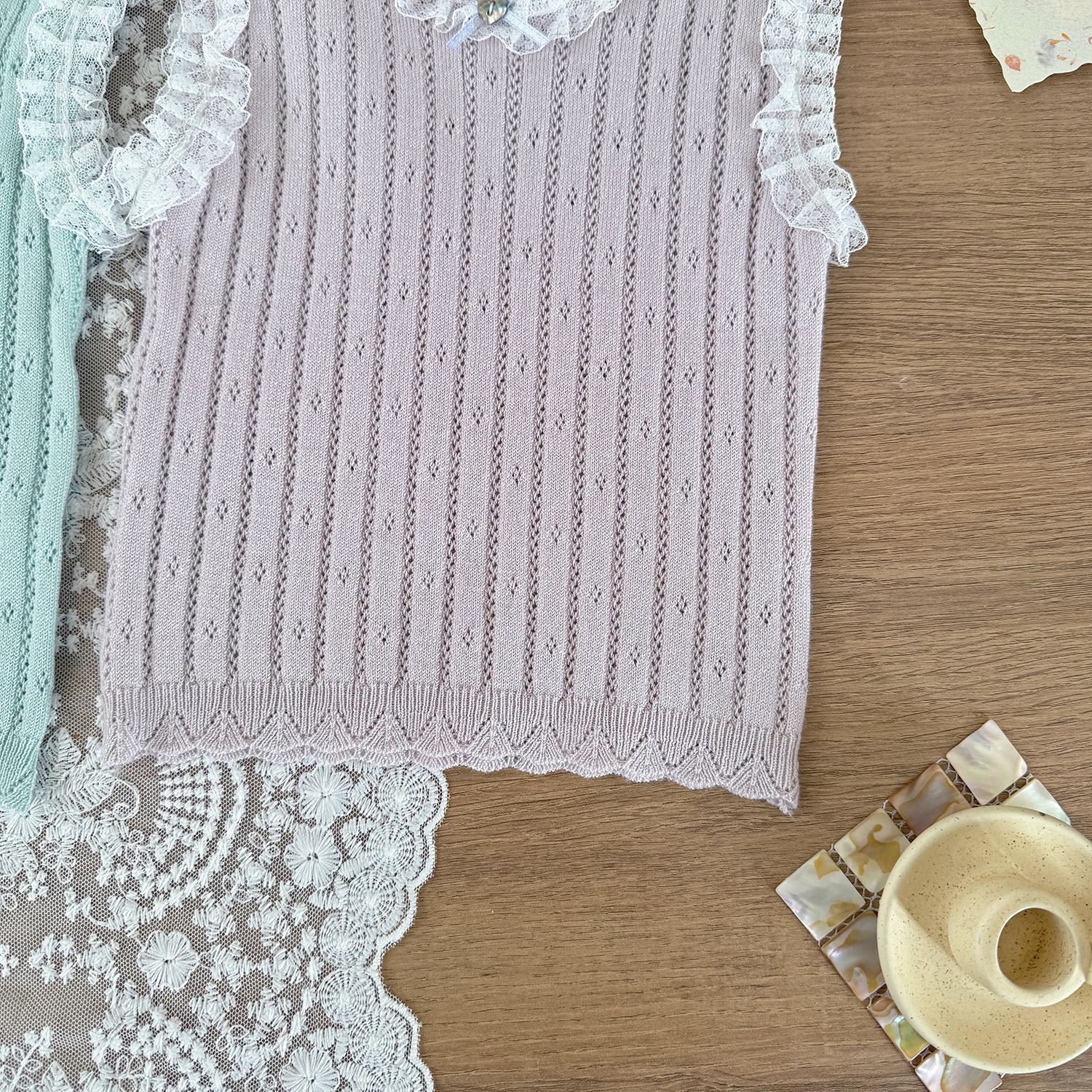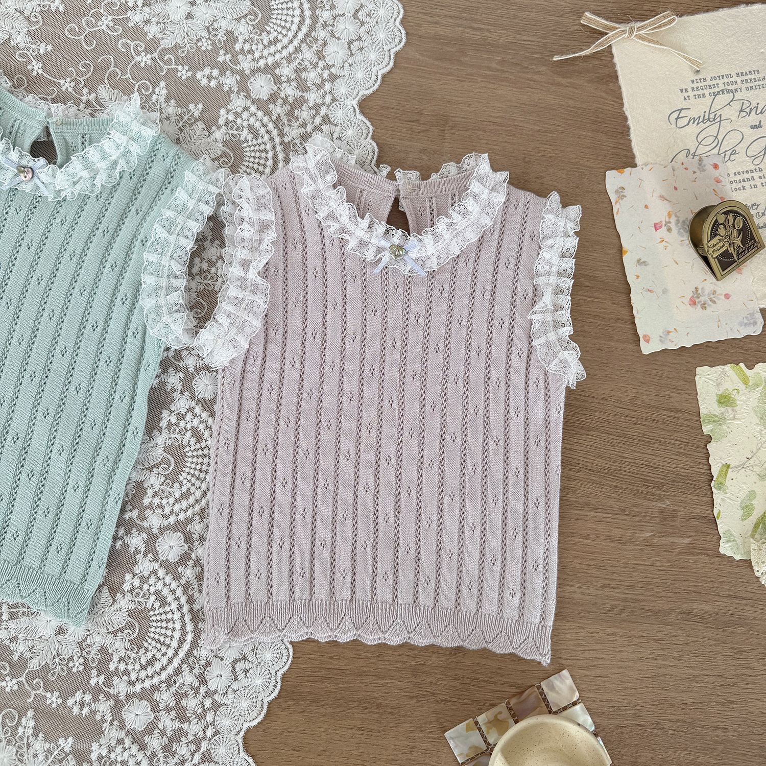 レースフリルニットキャミソール/ノースリーブトップス【mh0009567】