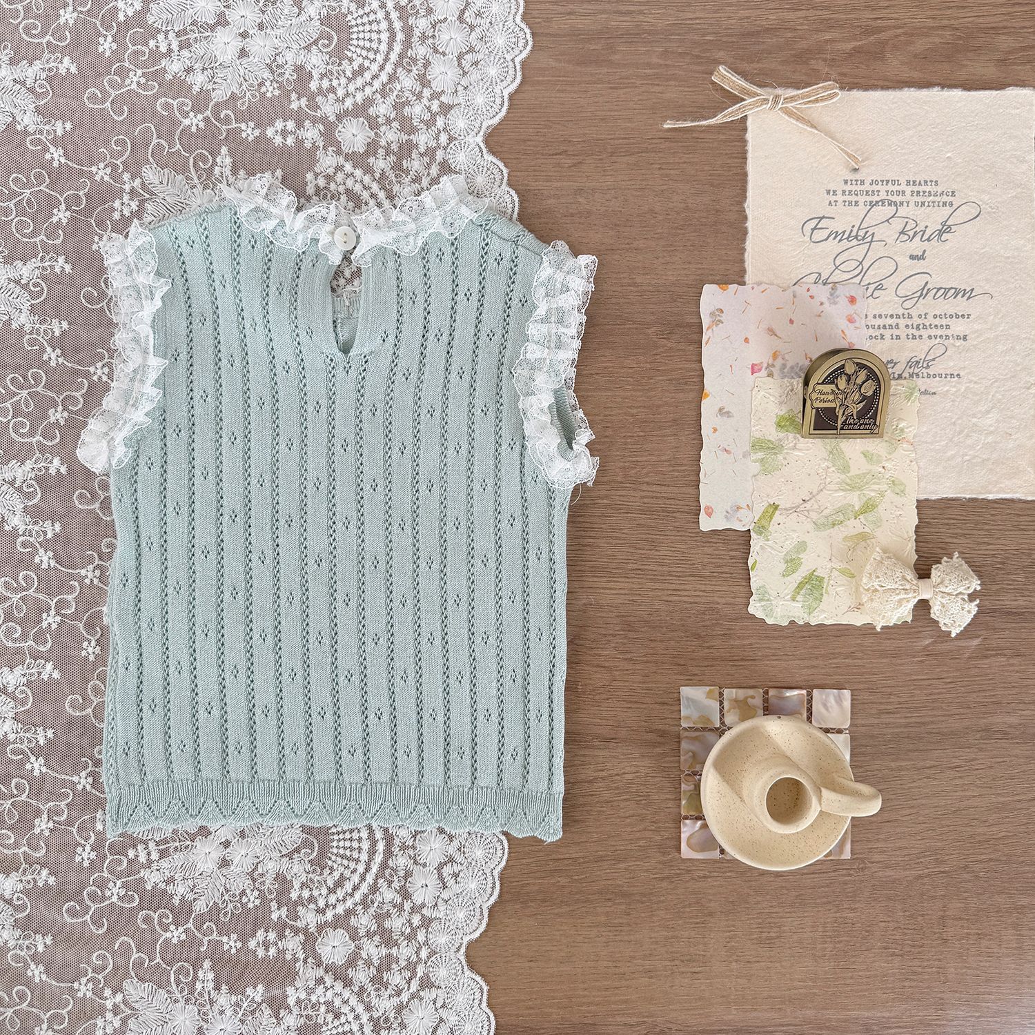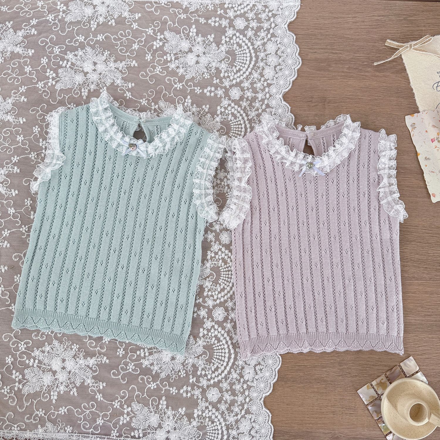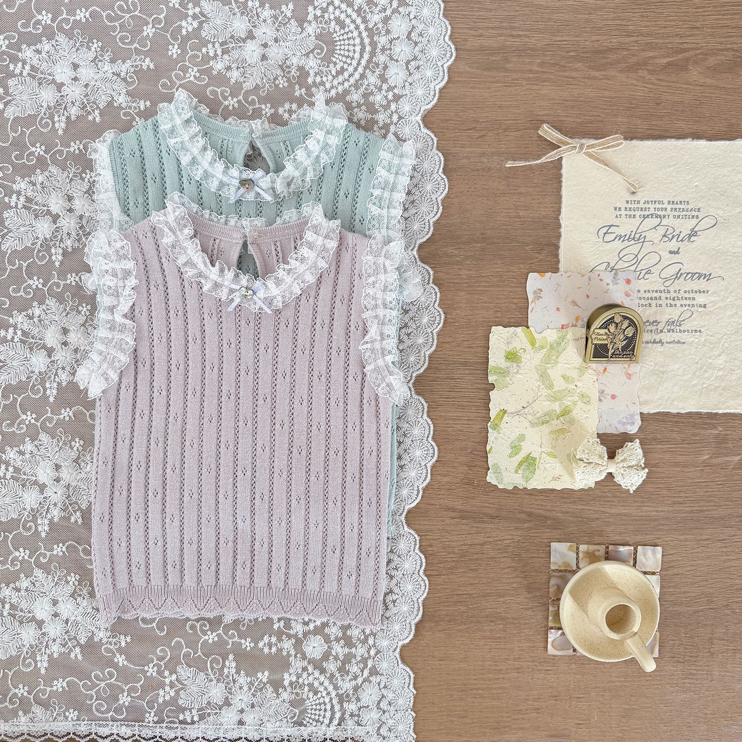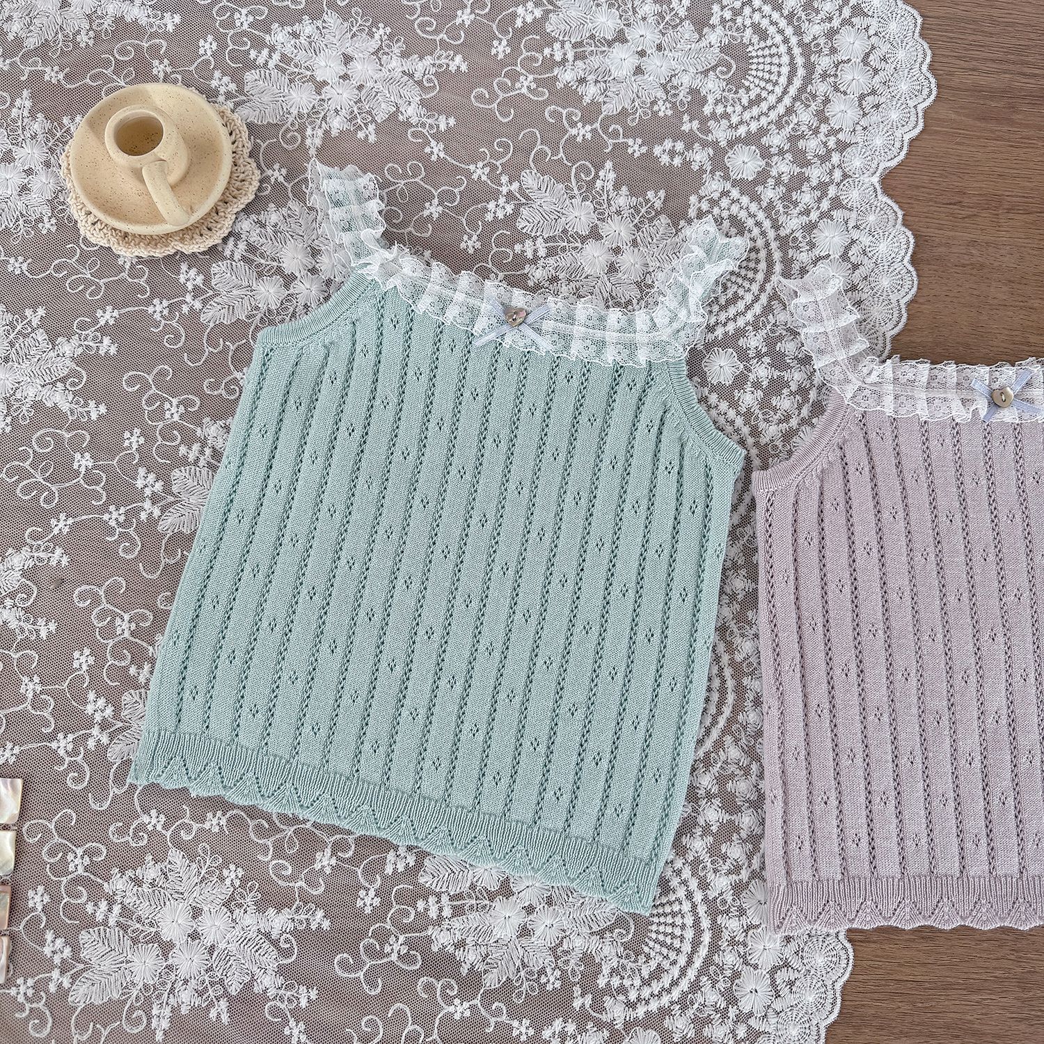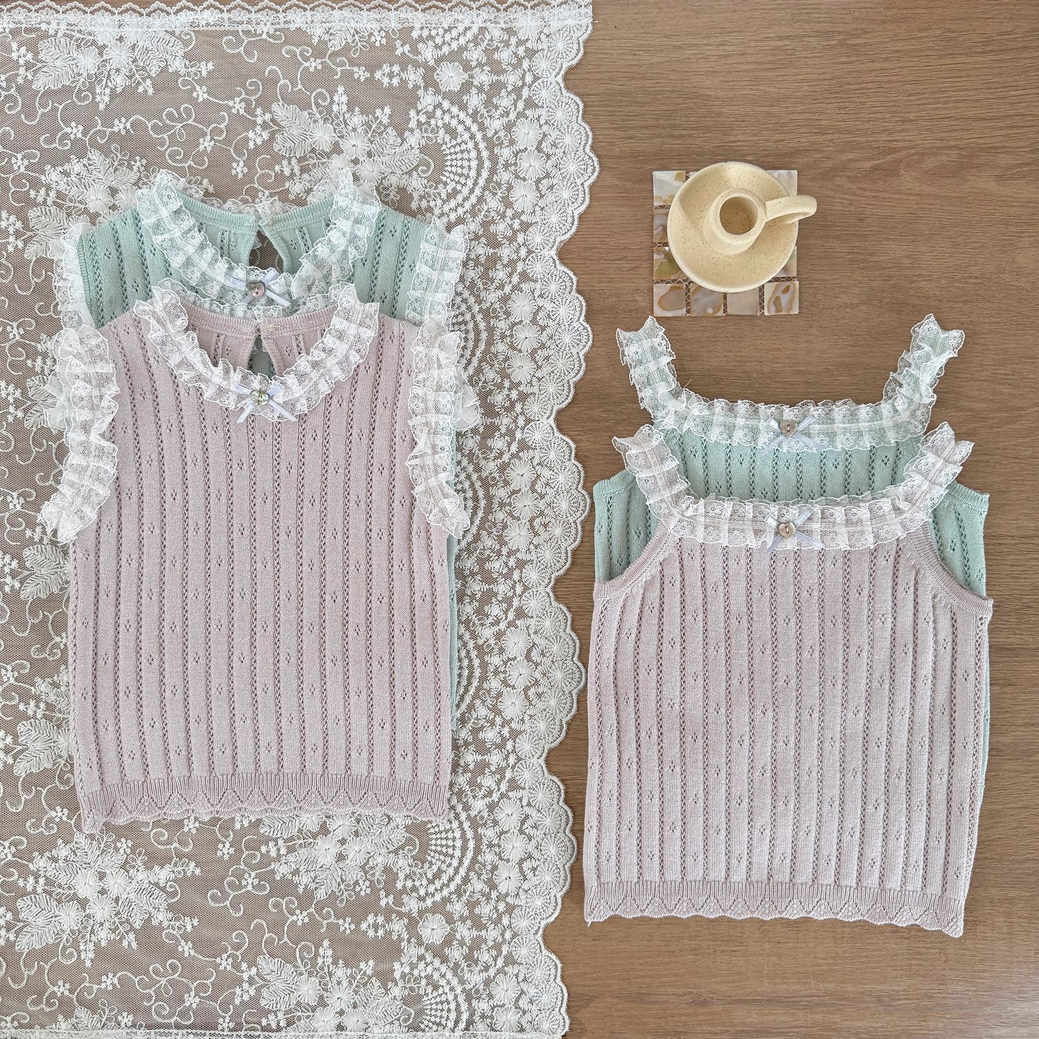 レースフリルニットキャミソール/ノースリーブトップス【mh0009567】
