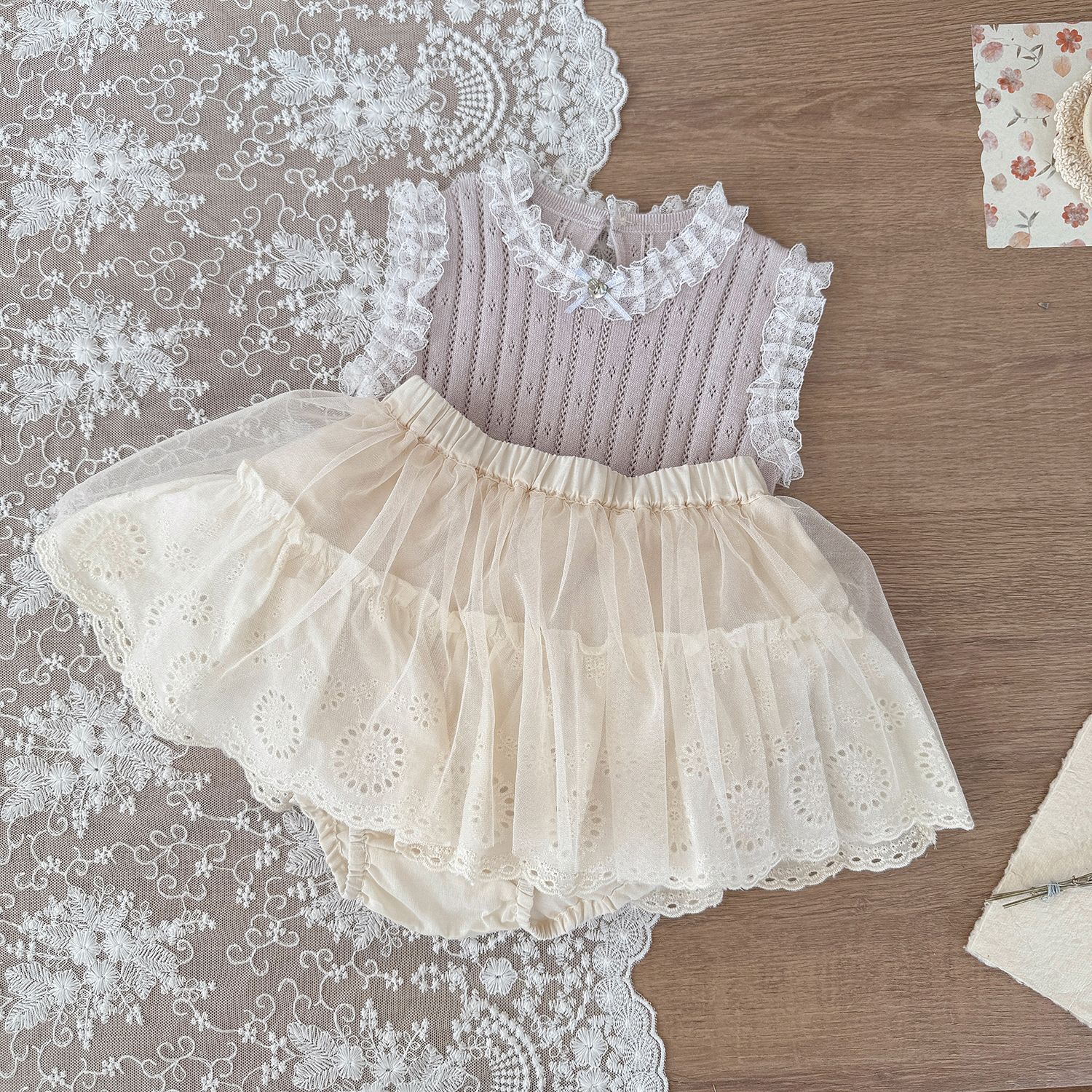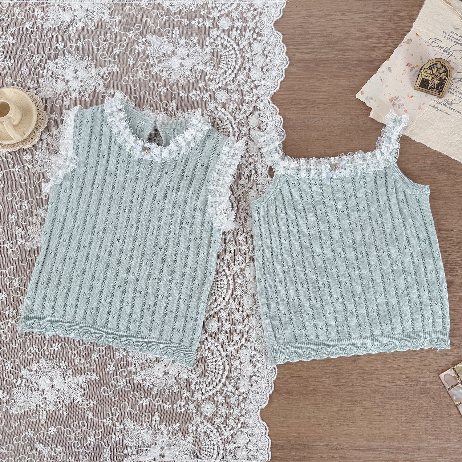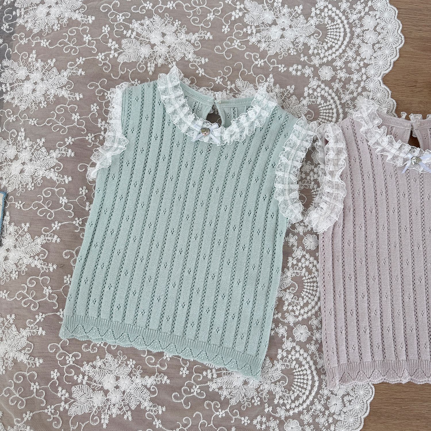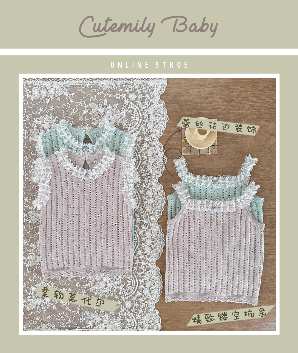 レースフリルニットキャミソール/ノースリーブトップス【mh0009567】
