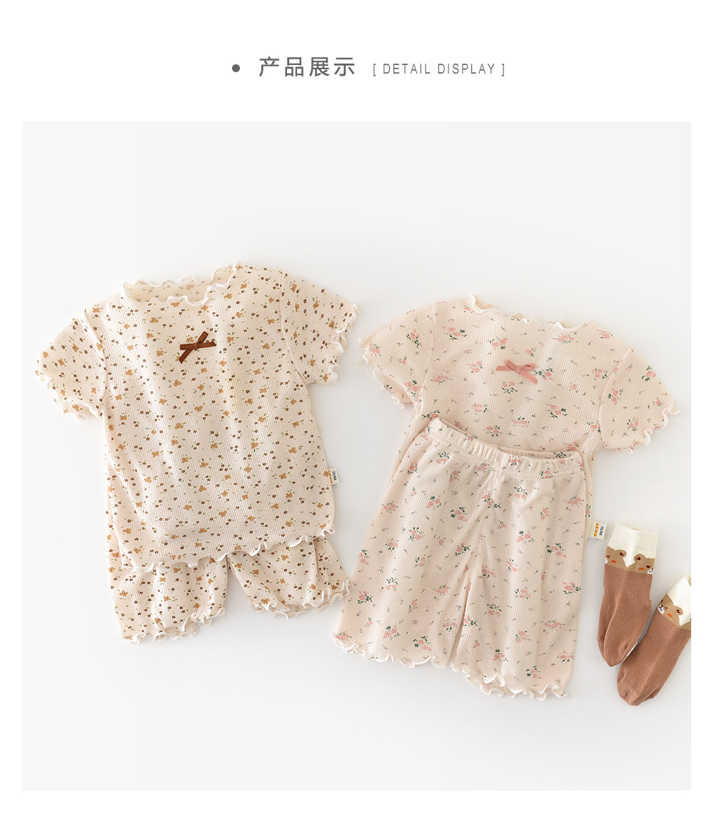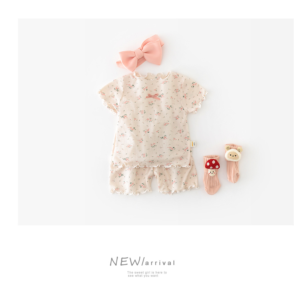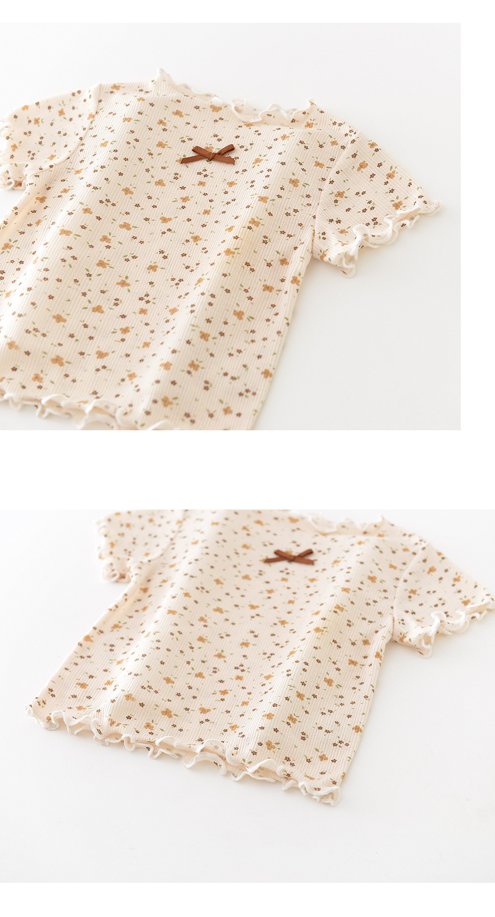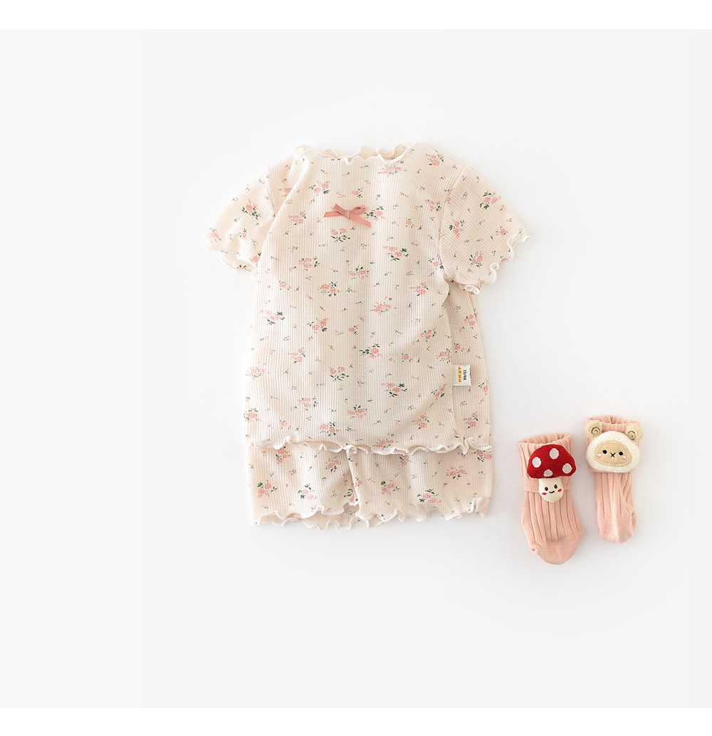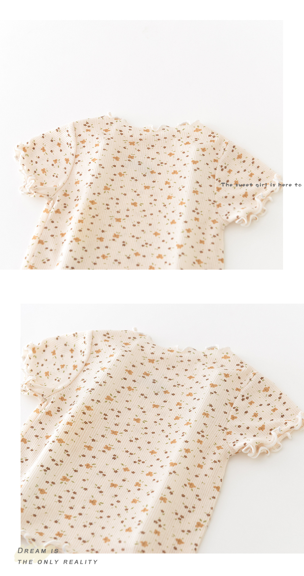 #セットアップ #小花柄 #女の子服 #夏服 #ショートパンツ #フリル袖 #リボン #韓国風キッズファッション