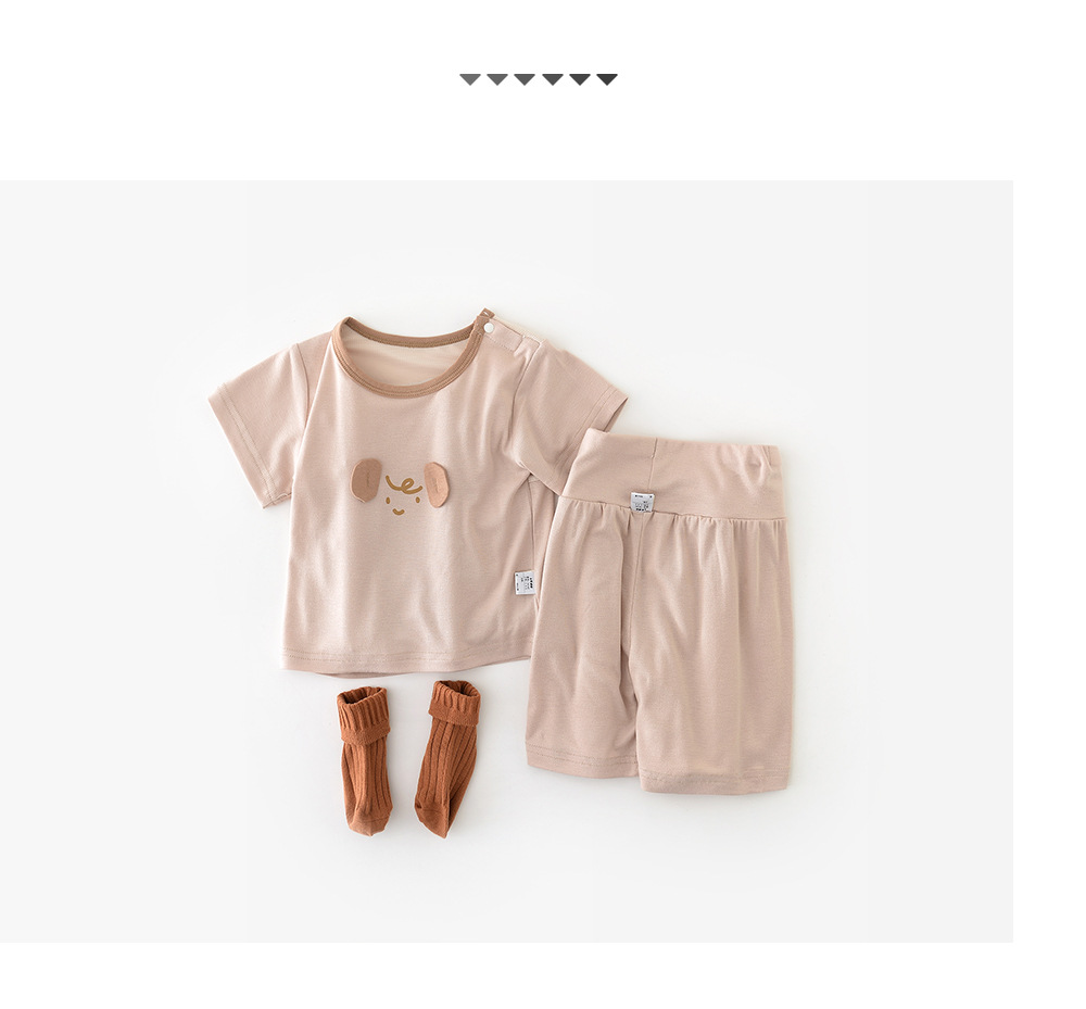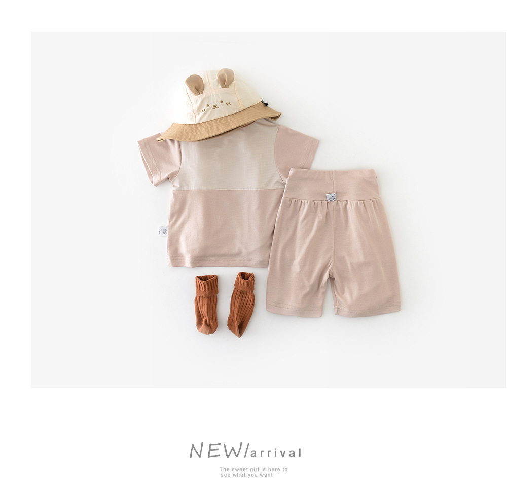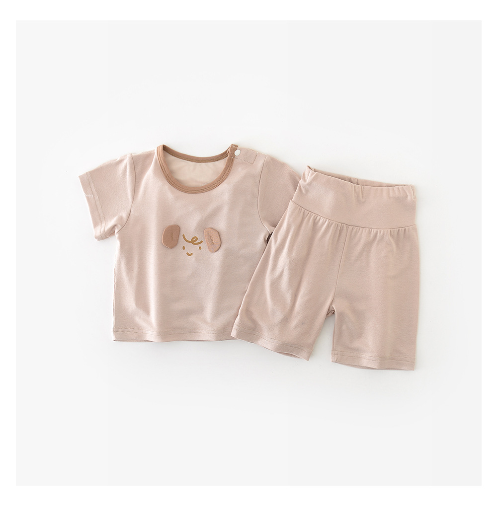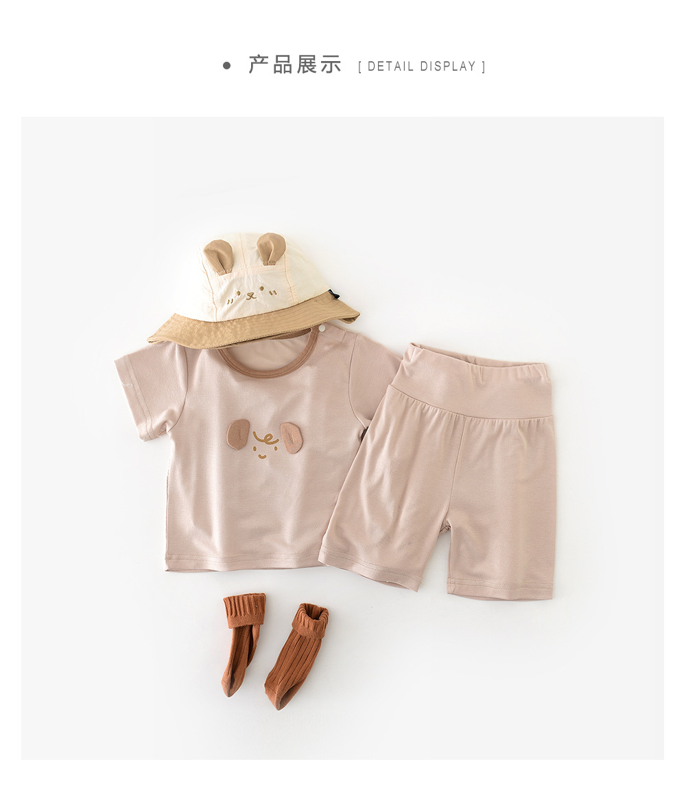 様々な動物たちのアップリケがにぎやかな、ベビー&トドラー向けの半袖Tシャツとショートパンツのセットアップです。韓国らしいポップなデザインで、お子様の好奇心を刺激します。通気性に優れた素材を使用しており、活発なお子様も涼しく快適に過ごせるでしょう。Tシャツには、わんちゃんや猫ちゃんなど、愛らしい動物たちのアップリケが丁寧に縫い付けられています。ショートパンツも動きやすいデザインで、元気いっぱい遊ぶお子様にぴったり。上下セットで簡単におしゃれが楽しめる、おすすめのアイテムです。
