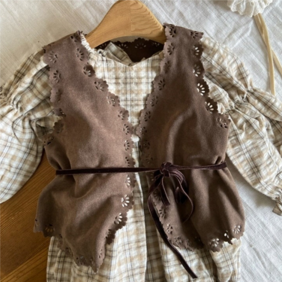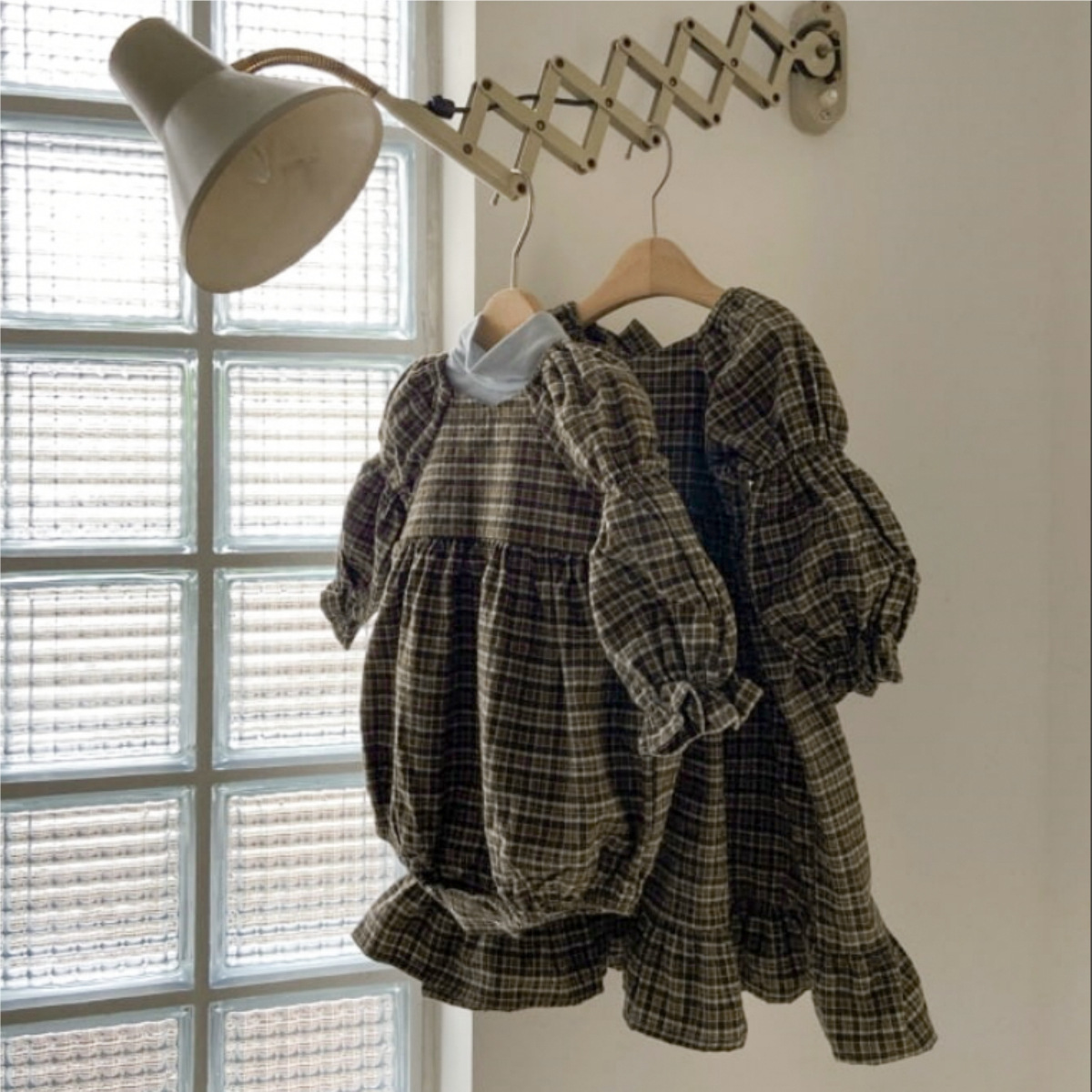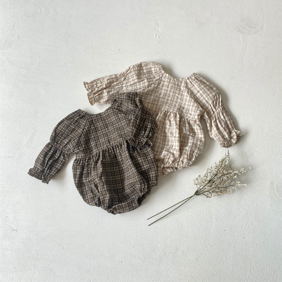 #ベビー服 #女の子ベビー #長袖ロンパース #レトロチェック #ベルスリーブ #春物ベビー