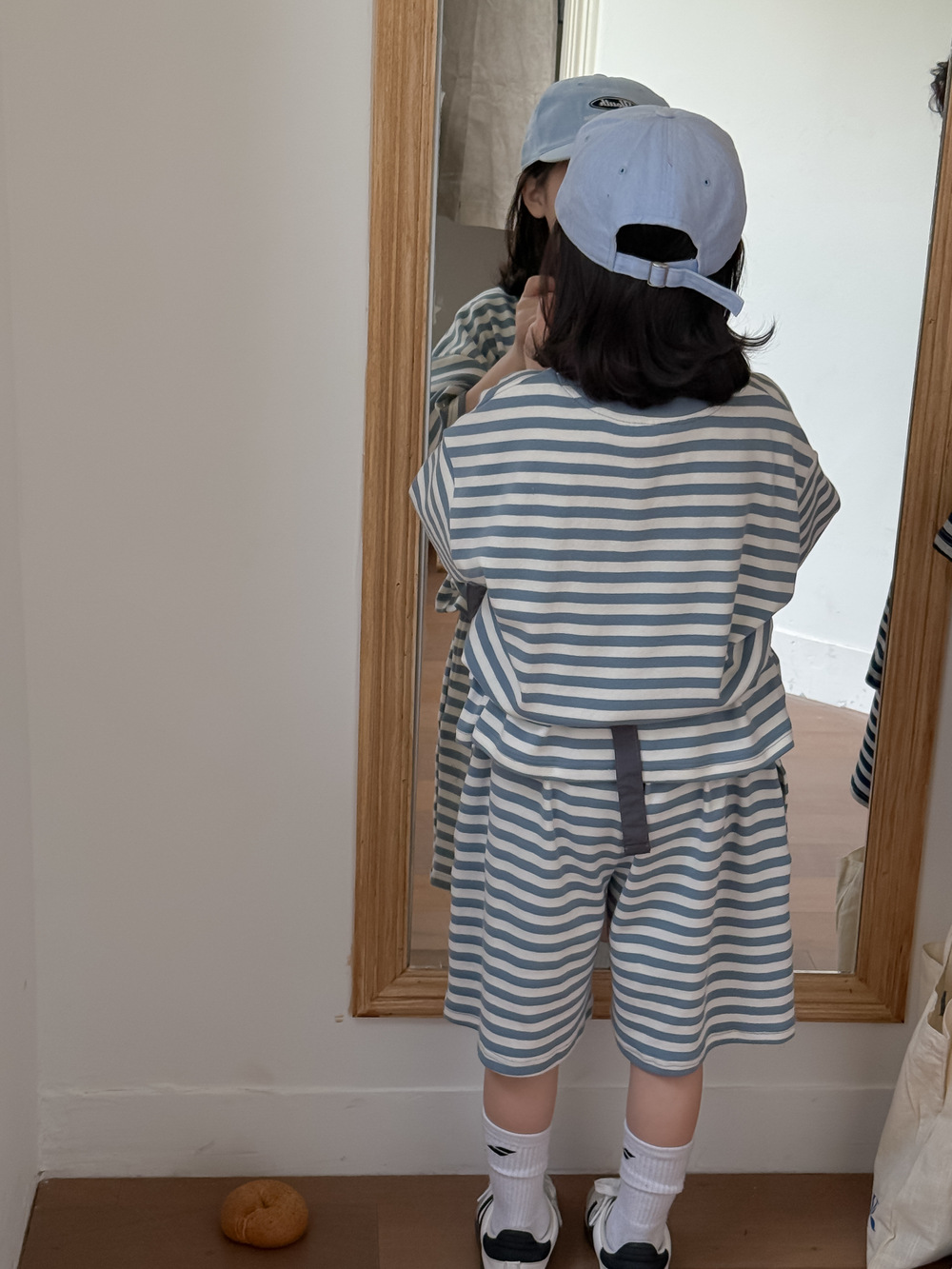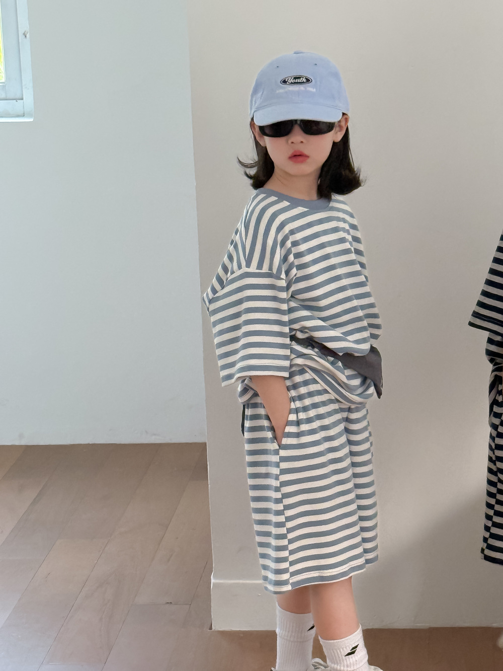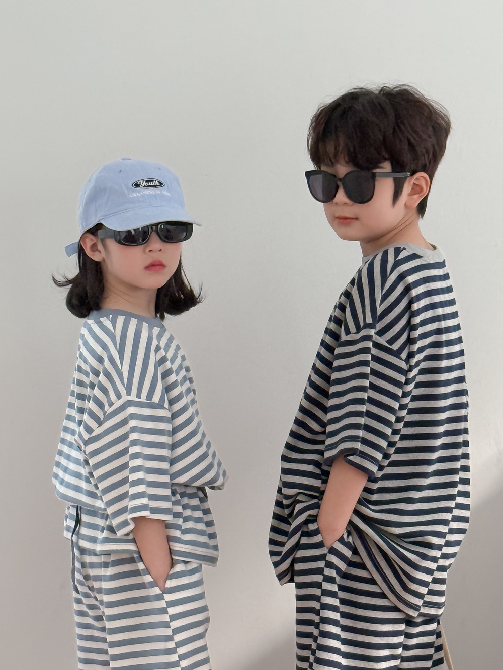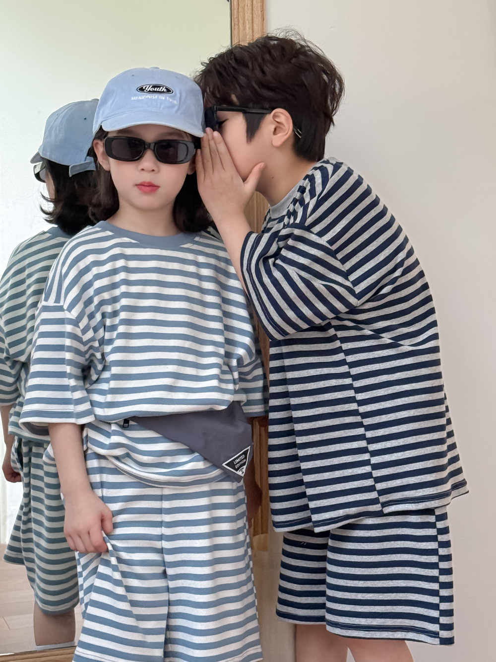 ボーダーセットアップ 2点セット 半袖Tシャツ+ハーフパンツ【mh0009681】