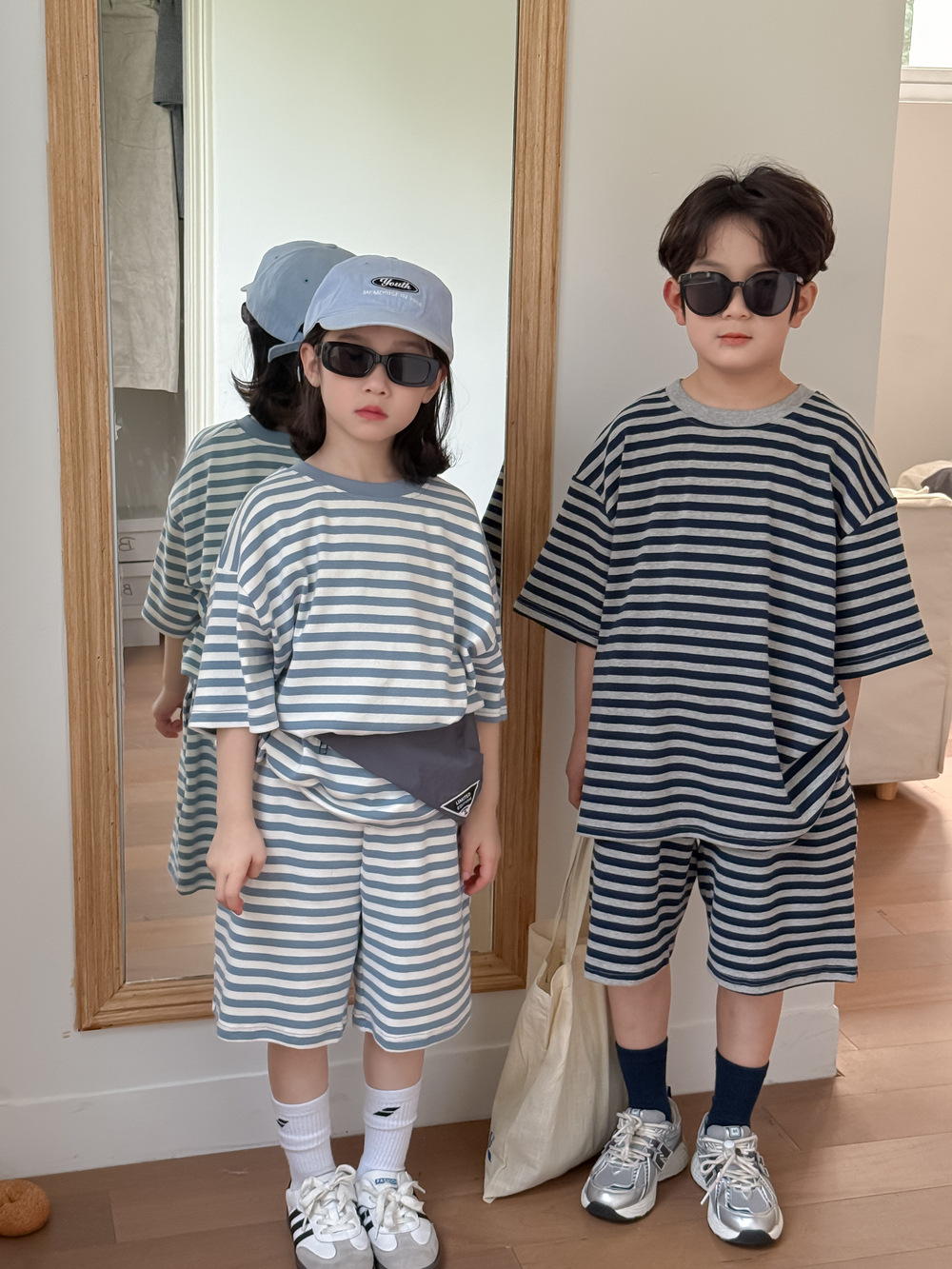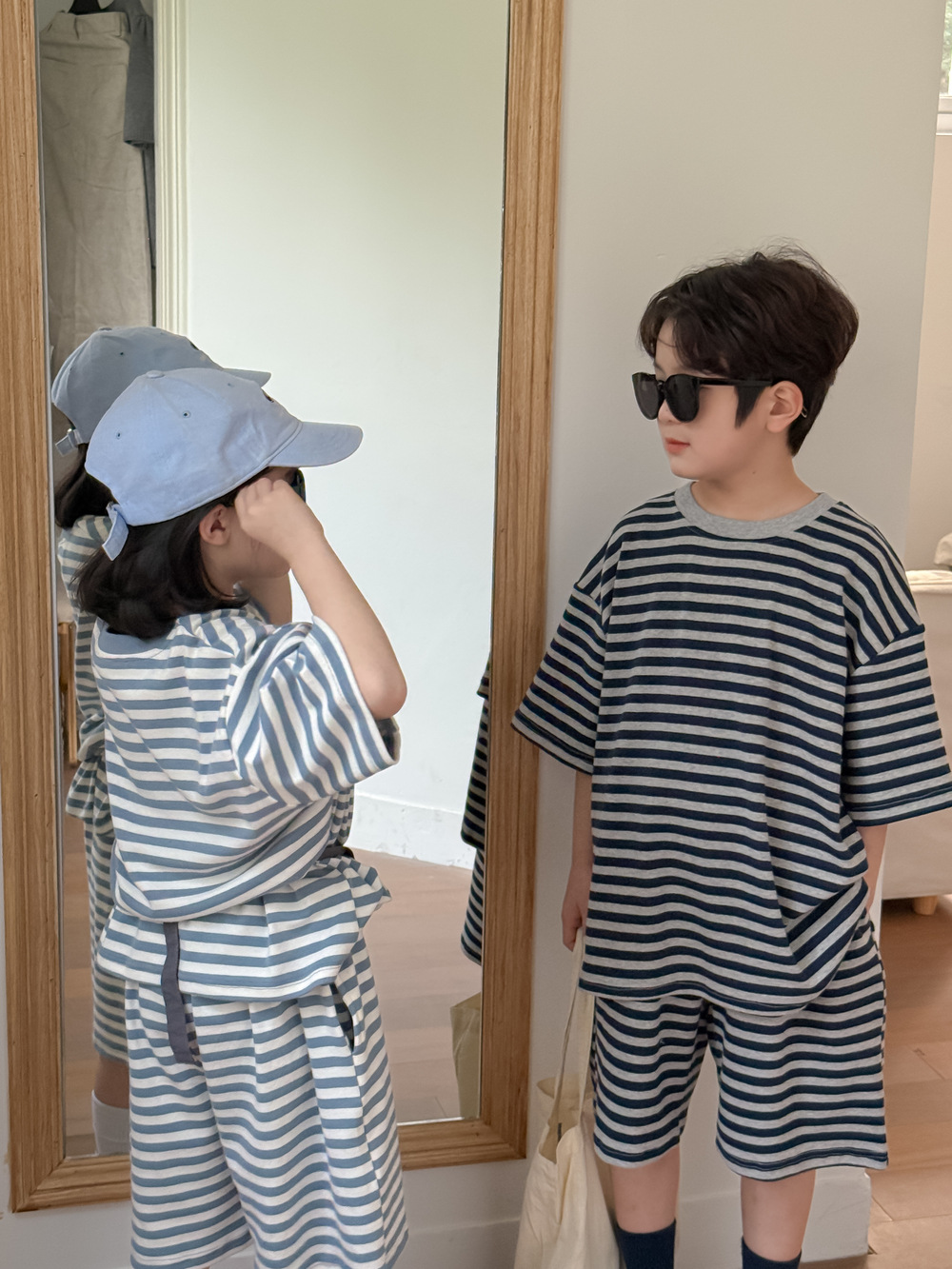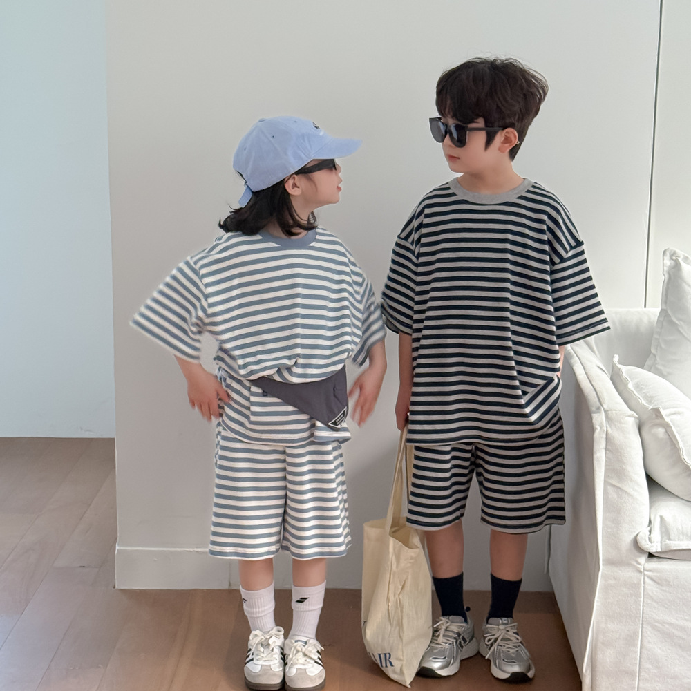 ボーダーセットアップ 2点セット 半袖Tシャツ+ハーフパンツ【mh0009681】