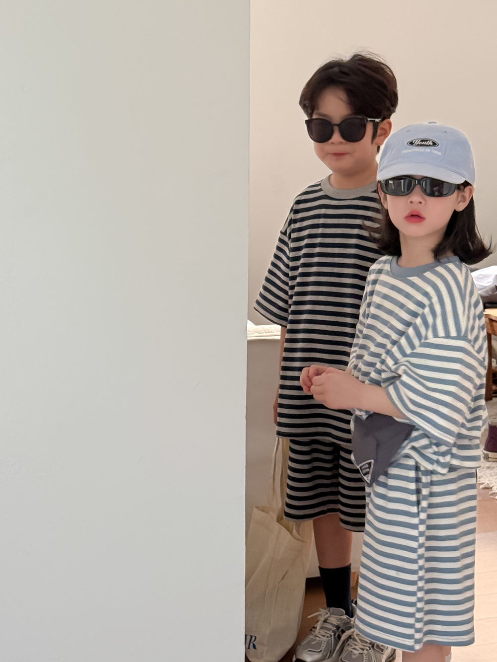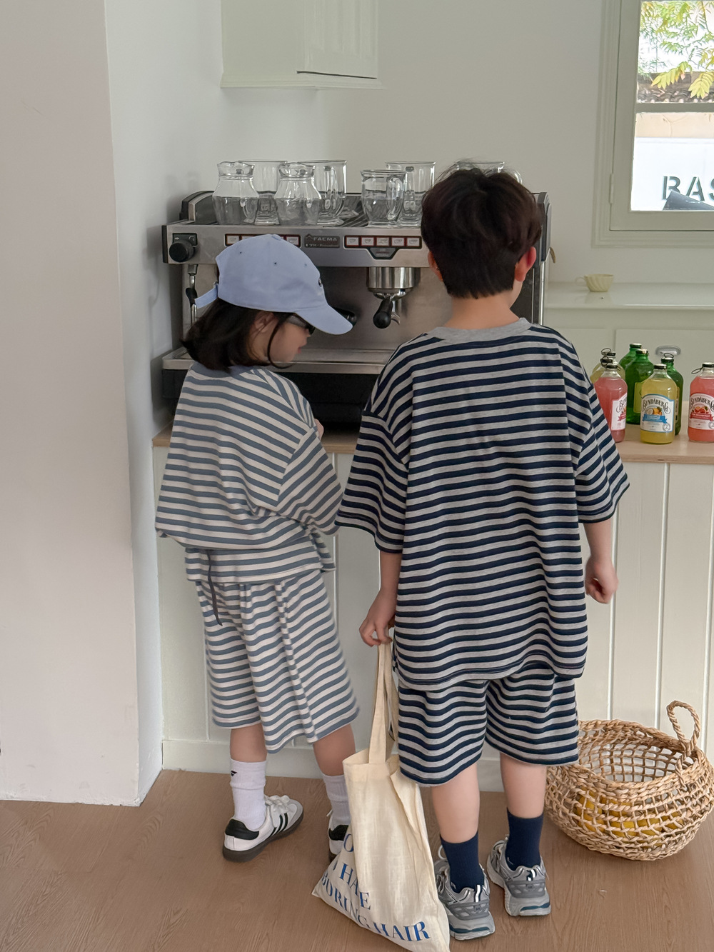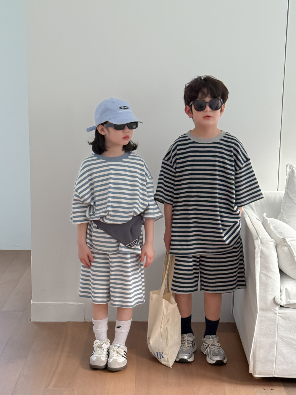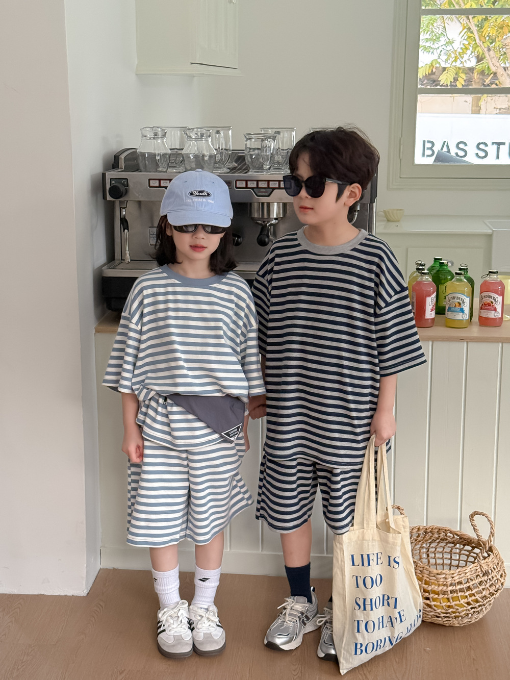 ボーダーセットアップ 2点セット 半袖Tシャツ+ハーフパンツ【mh0009681】