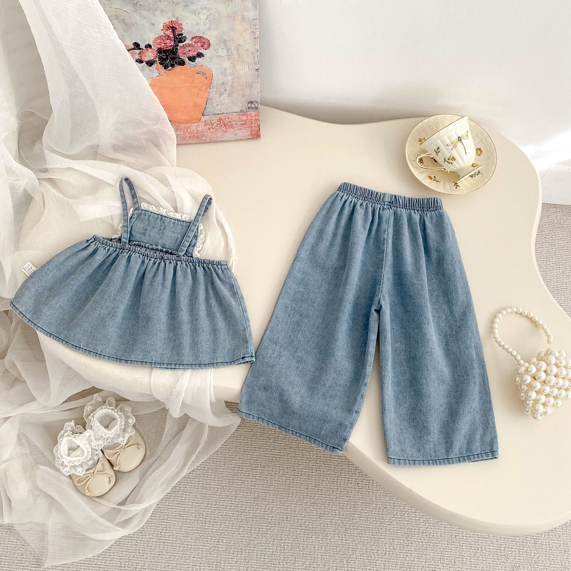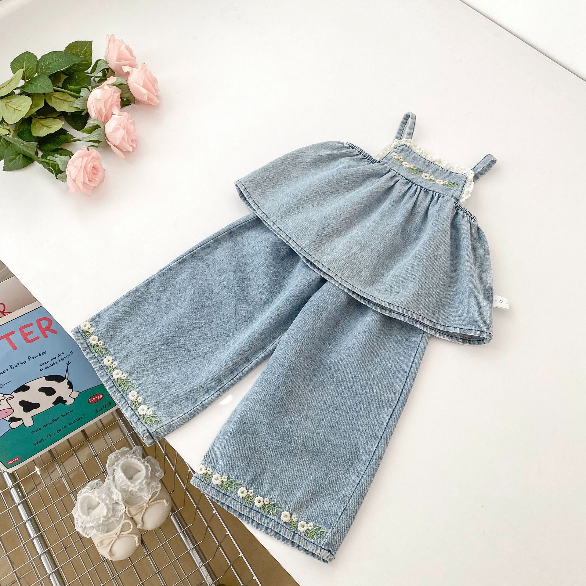 #キッズセットアップ #子供服 #女の子 #デニム #キャミソール #ワイドパンツ #刺繍 #夏物子供服