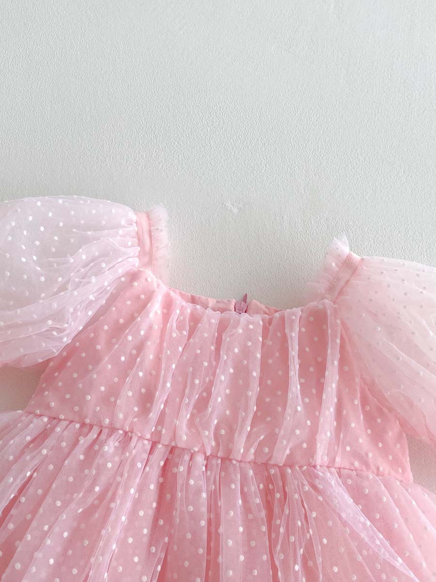 ピンドットチュール半袖パフスリーブドレスロンパース【mh0010324】