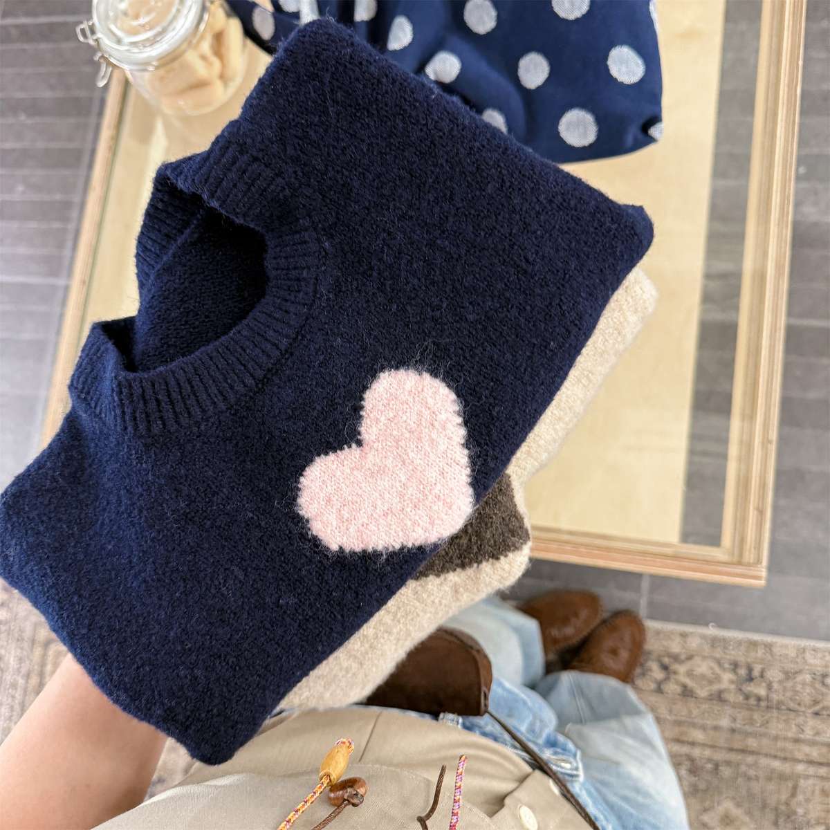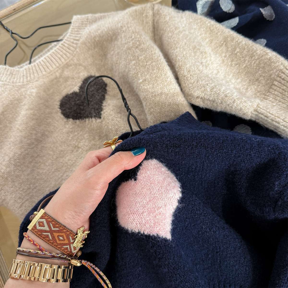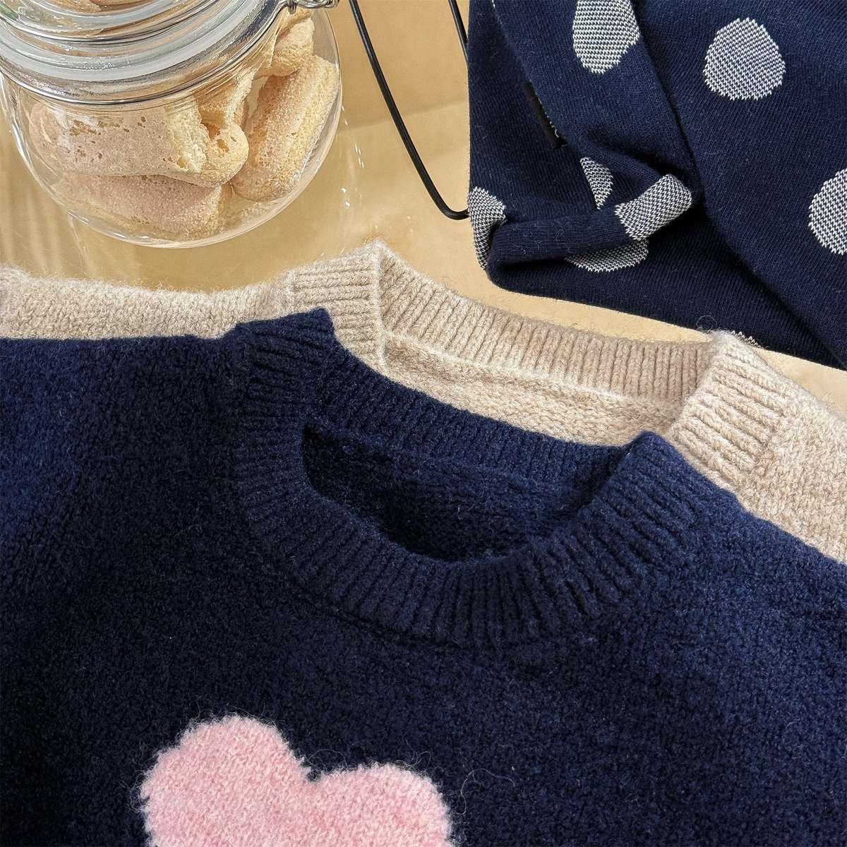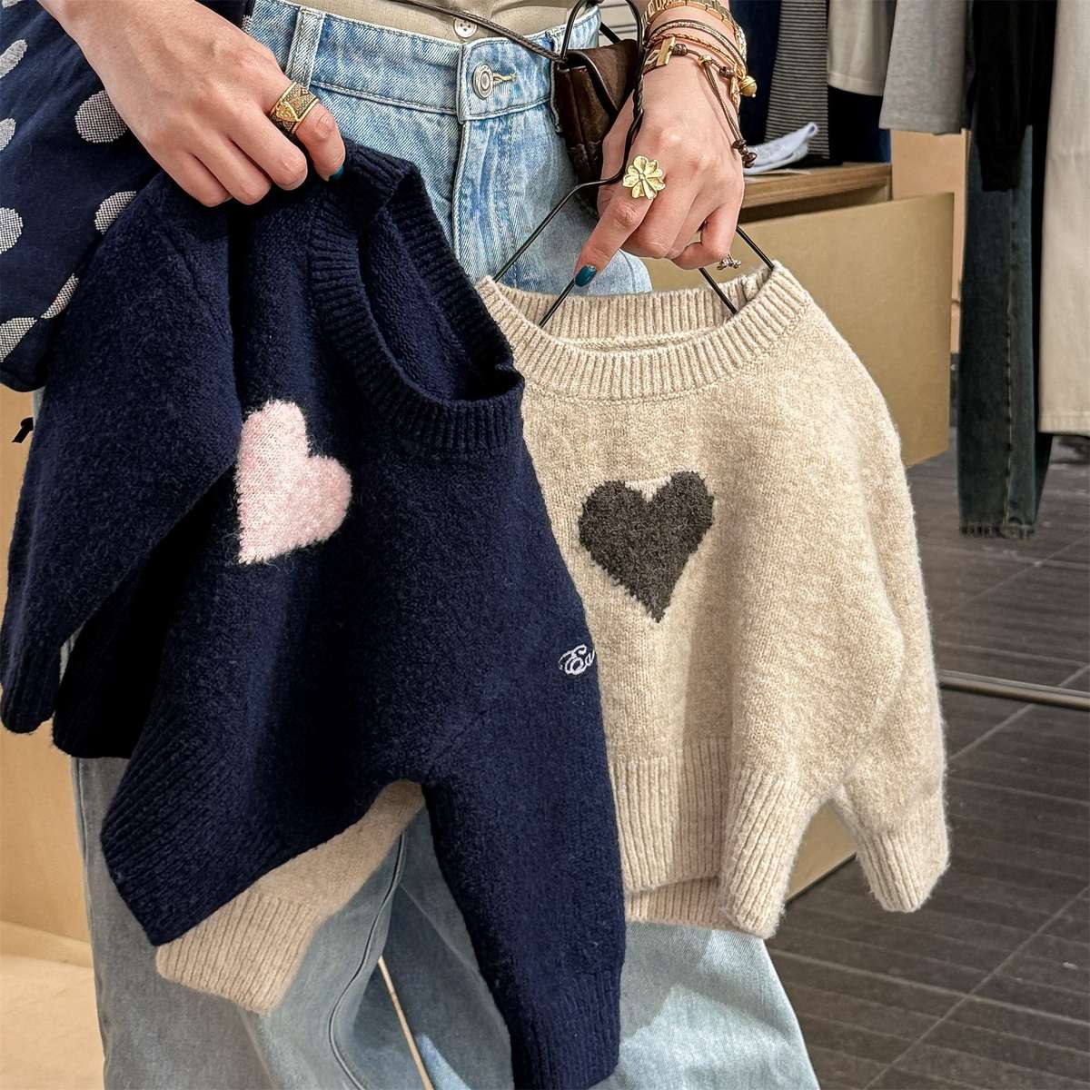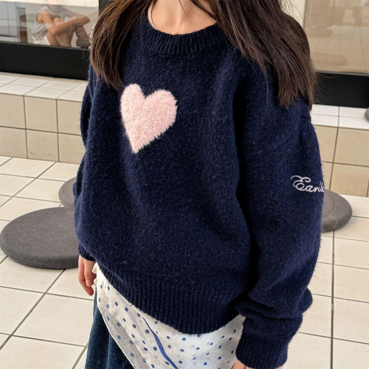 長袖ニット ハート柄プルオーバー クルーネック ゆるシルエット【mh0011432】