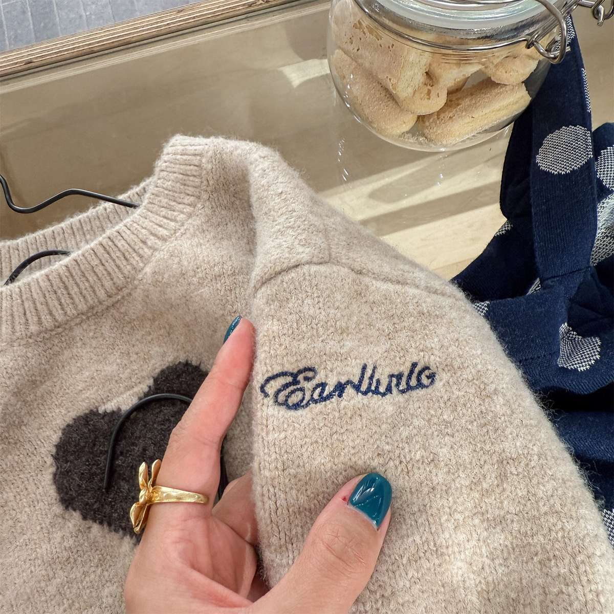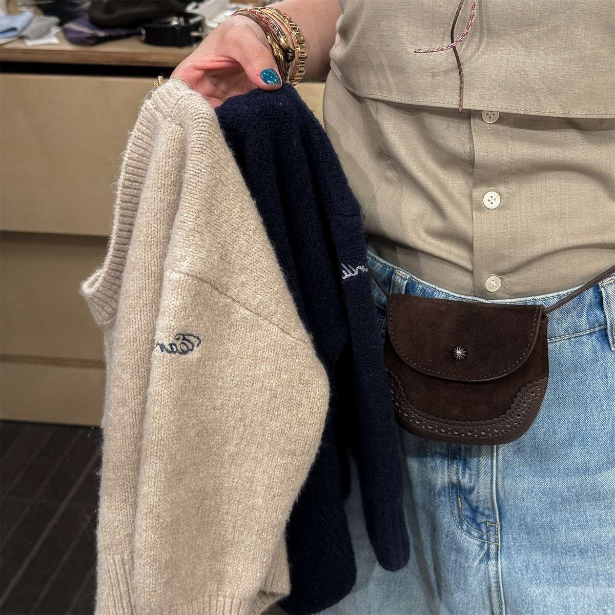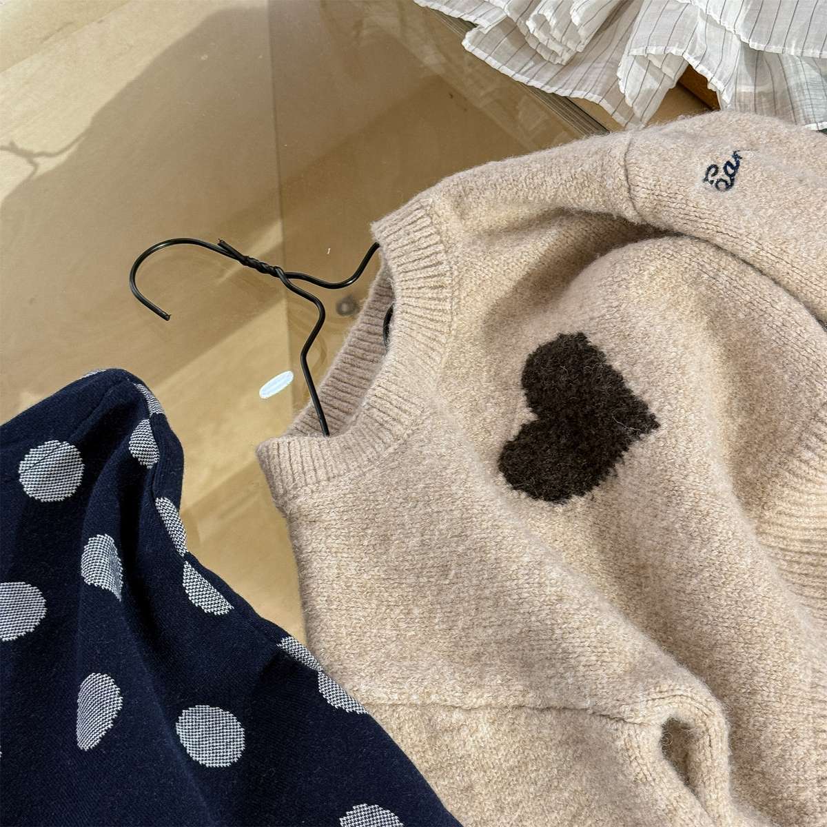 ・ 生地に違う色の糸が紛れている場合やお洋服に別の糸が付着している場合がございます。