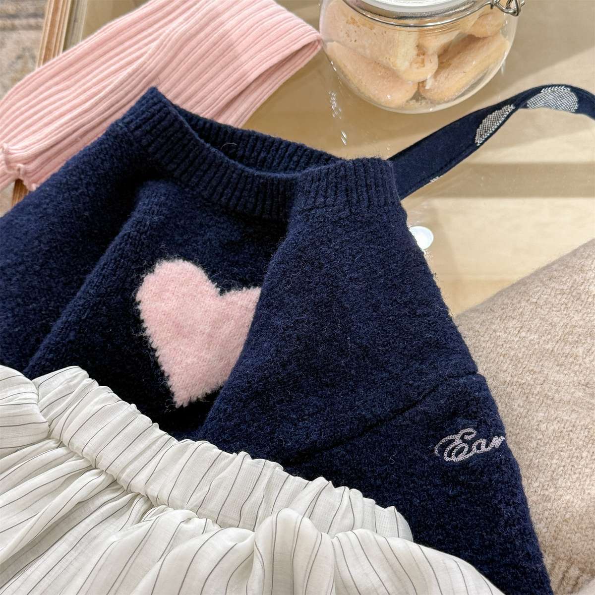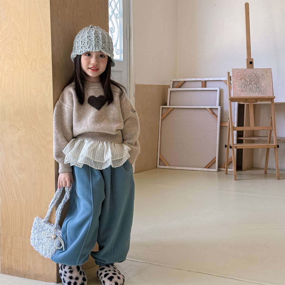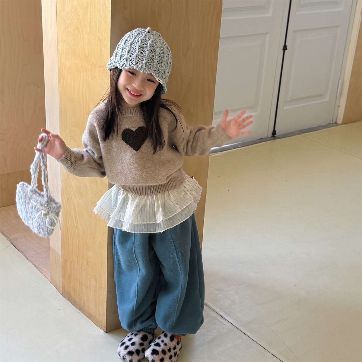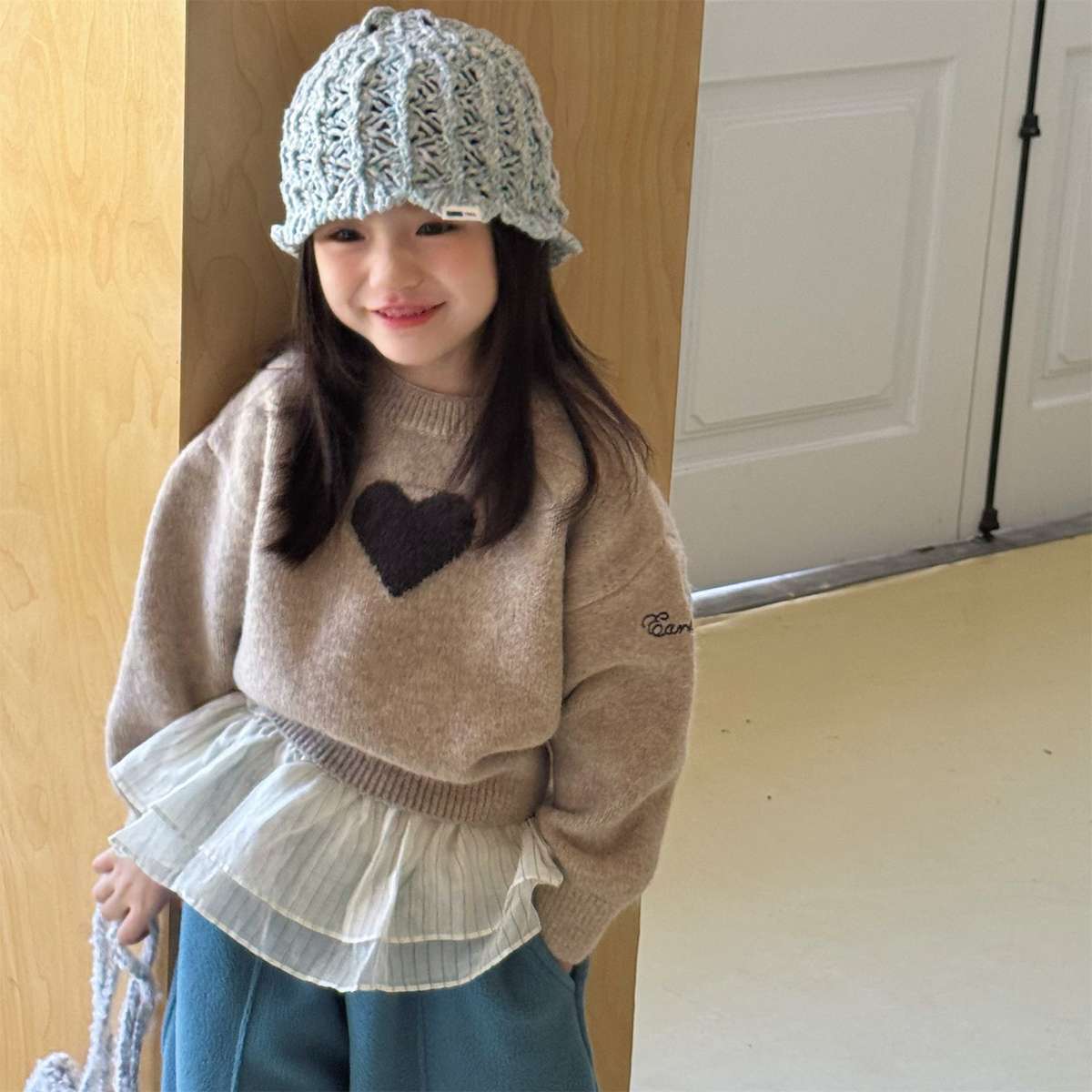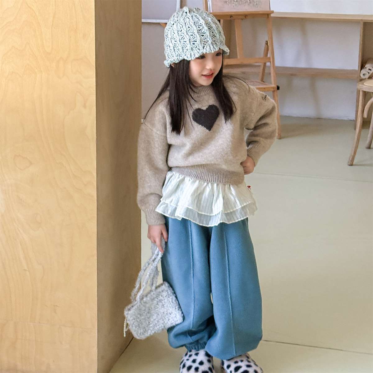 暖かく包み込むような長袖ニットは、おしゃれなベビーやキッズのコーディネートを彩るプルオーバーです。愛らしいハート柄が散りばめられたクルーネックのトップスは、優しげで魅力的な雰囲気を演出します。ゆったりとしたゆるシルエットで着心地も快適なこのセーターは、男の子にも女の子にも人気の高いニットウェアとして、秋冬の装いをチャーミングに仕上げます。