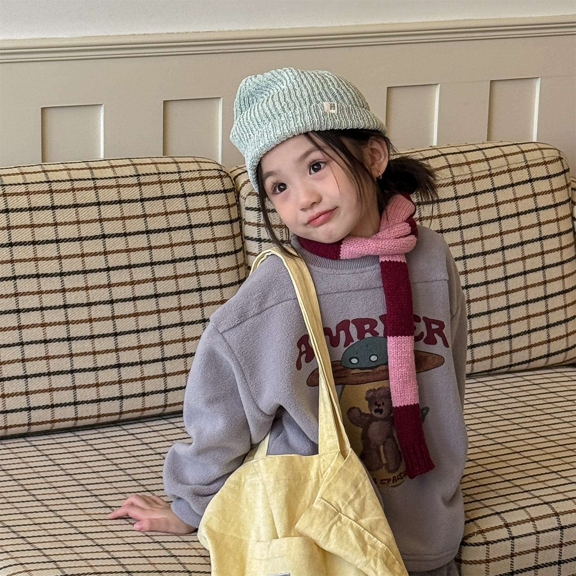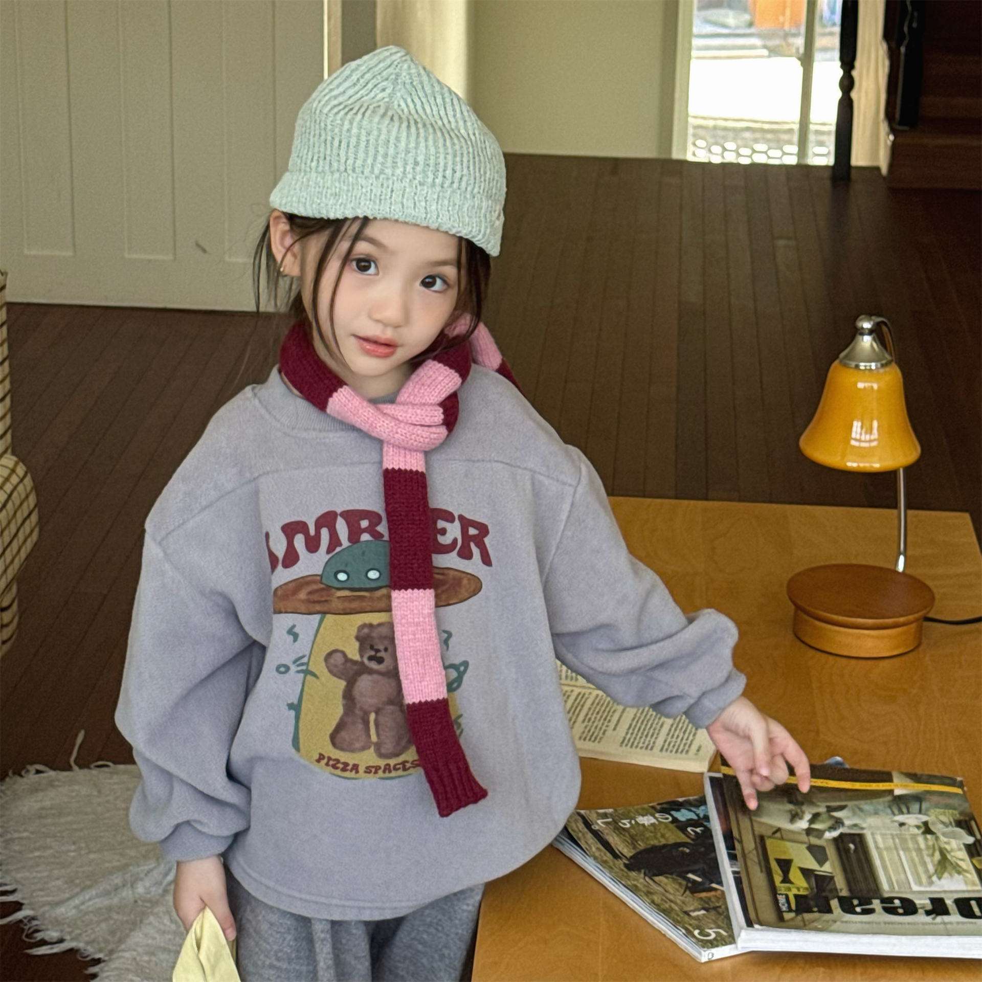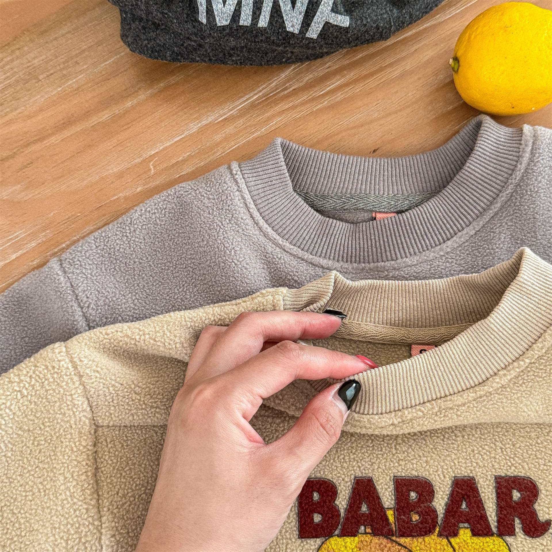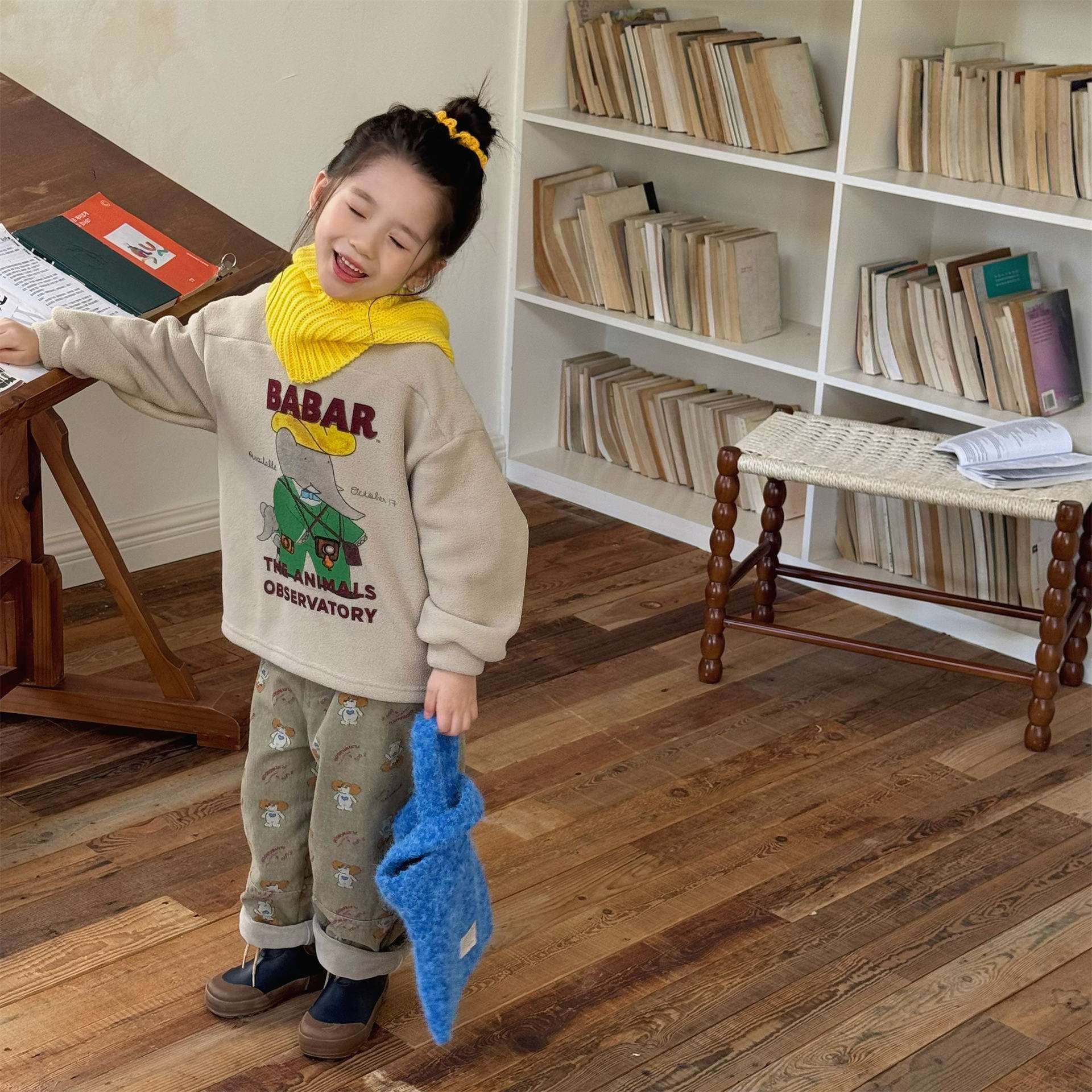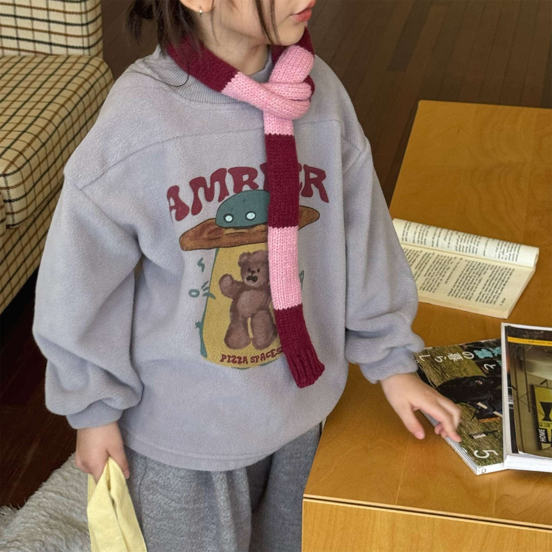遊び心あふれるプリントが目を引くゆったりとしたシルエットの長袖トレーナーは、デイリーの装いをクラスアップさせる子ども服です。暖かなフリース素材を使用しているので、おしゃれを楽しみながら快適に過ごせます。ユニセックスで着用できるデザインは、キッズのカジュアルスタイルに洗練された雰囲気を添えるスウェットシャツとして活躍します。