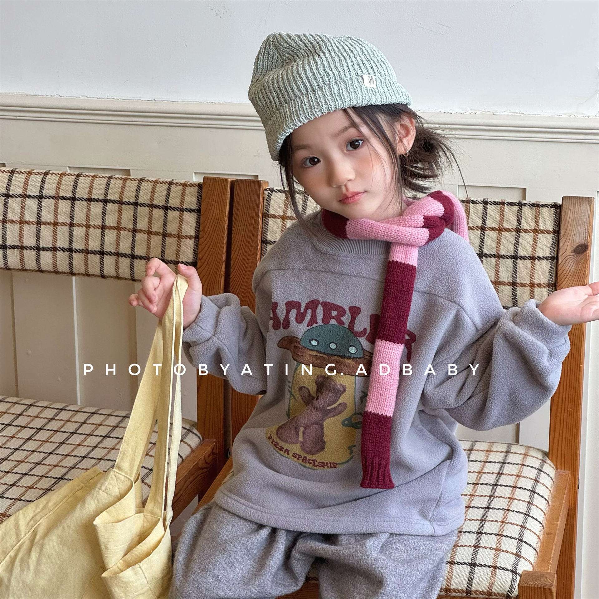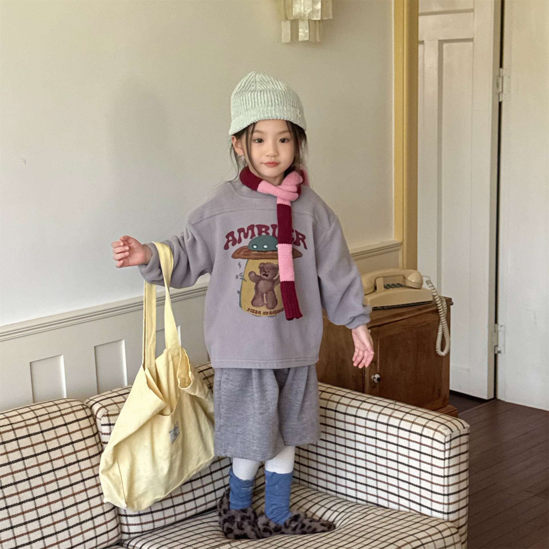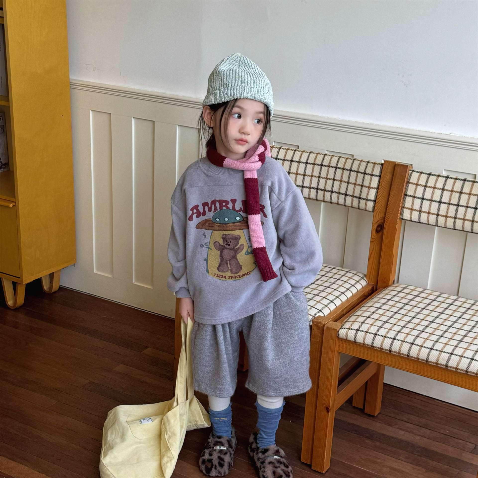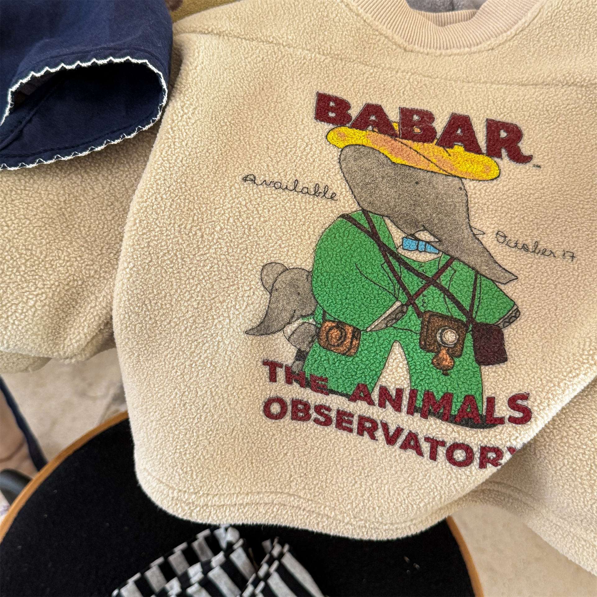 遊び心あふれるプリントが目を引くゆったりとしたシルエットの長袖トレーナーは、デイリーの装いをクラスアップさせる子ども服です。暖かなフリース素材を使用しているので、おしゃれを楽しみながら快適に過ごせます。ユニセックスで着用できるデザインは、キッズのカジュアルスタイルに洗練された雰囲気を添えるスウェットシャツとして活躍します。