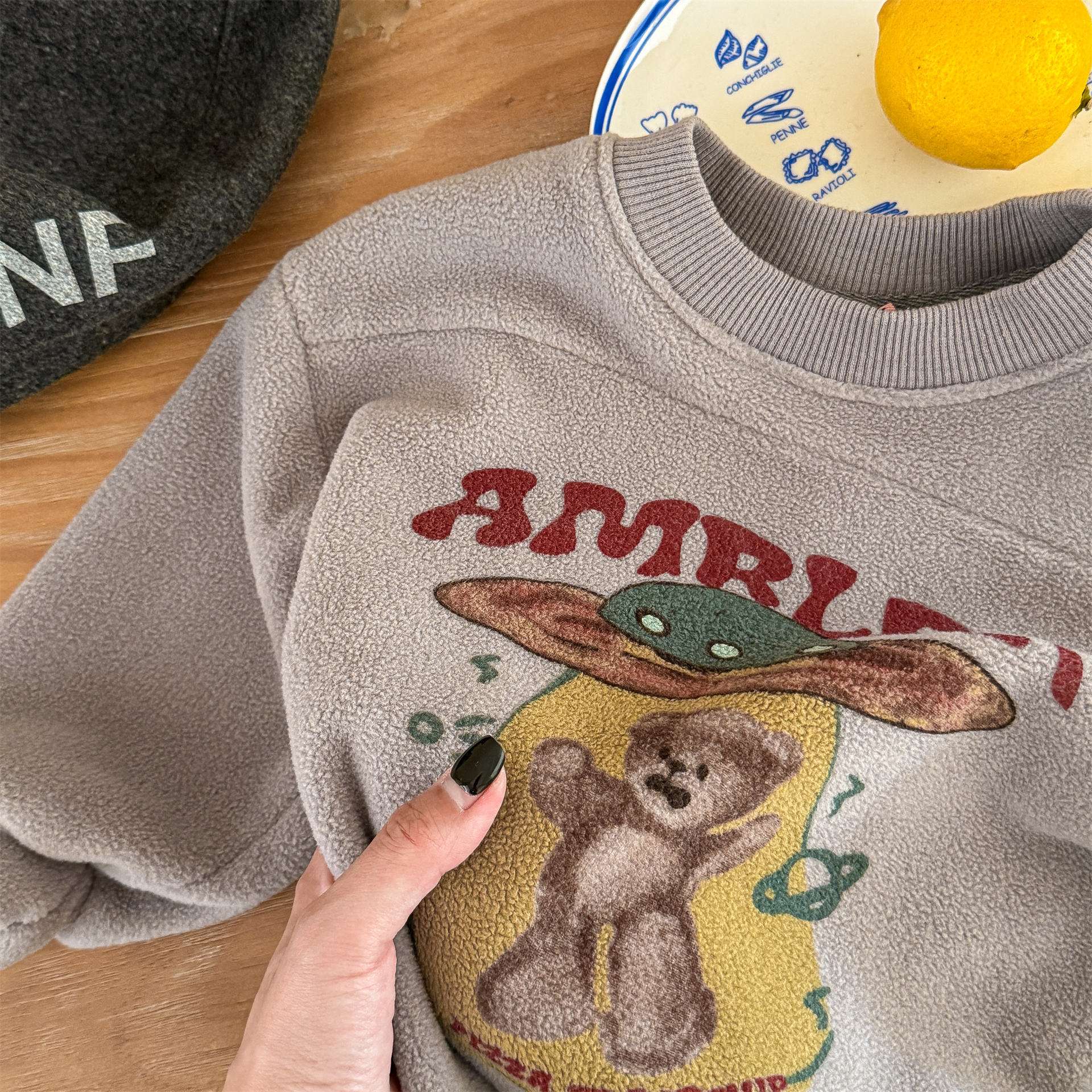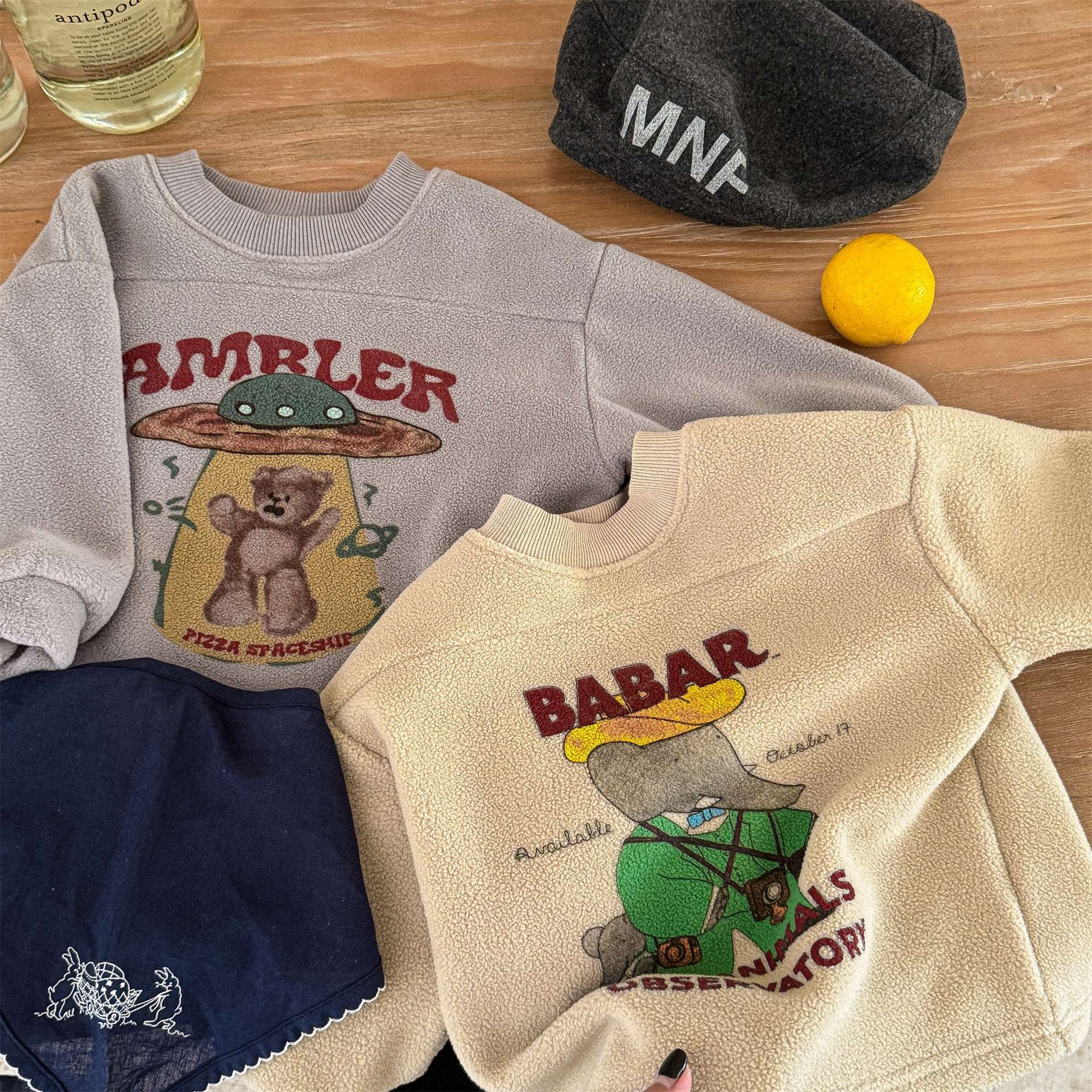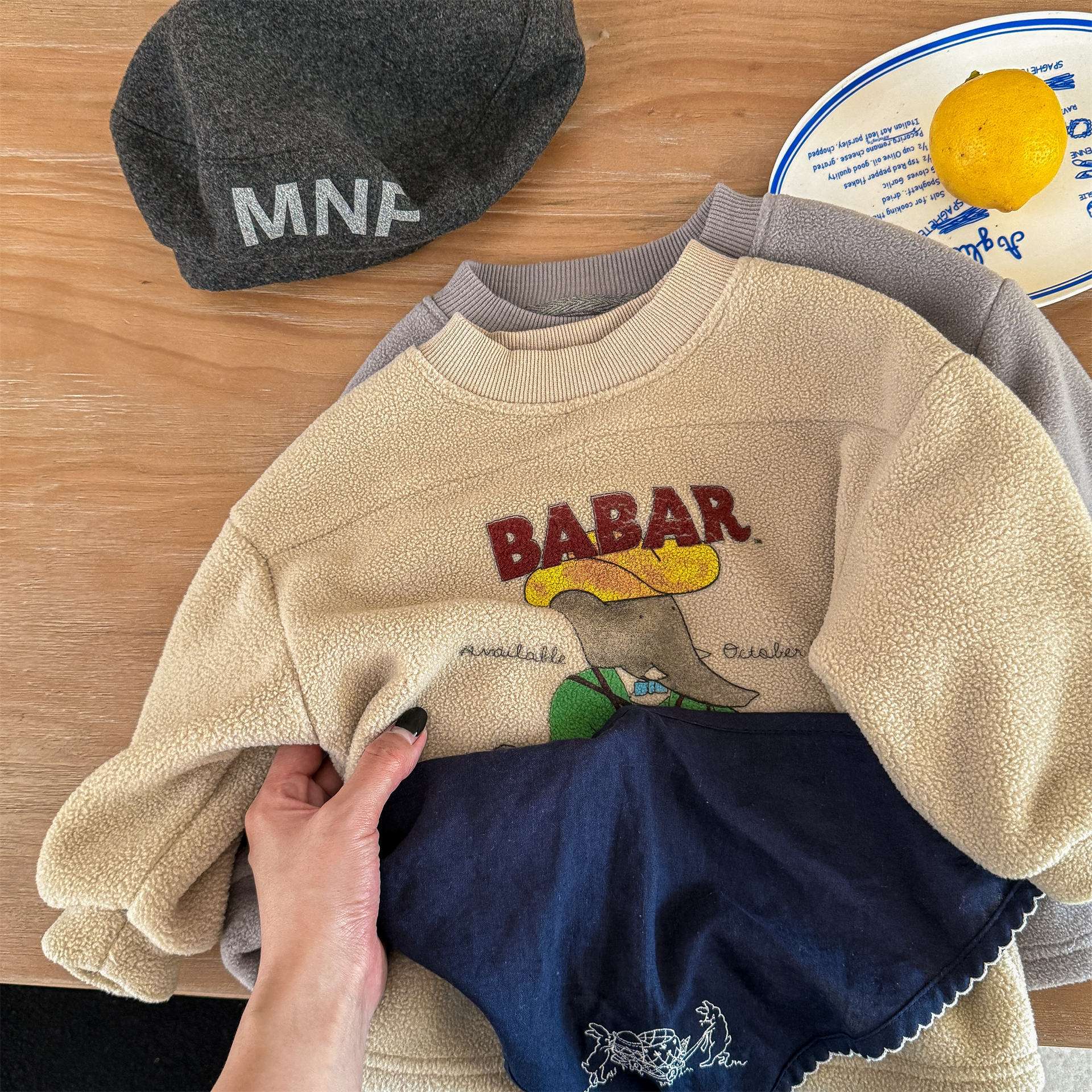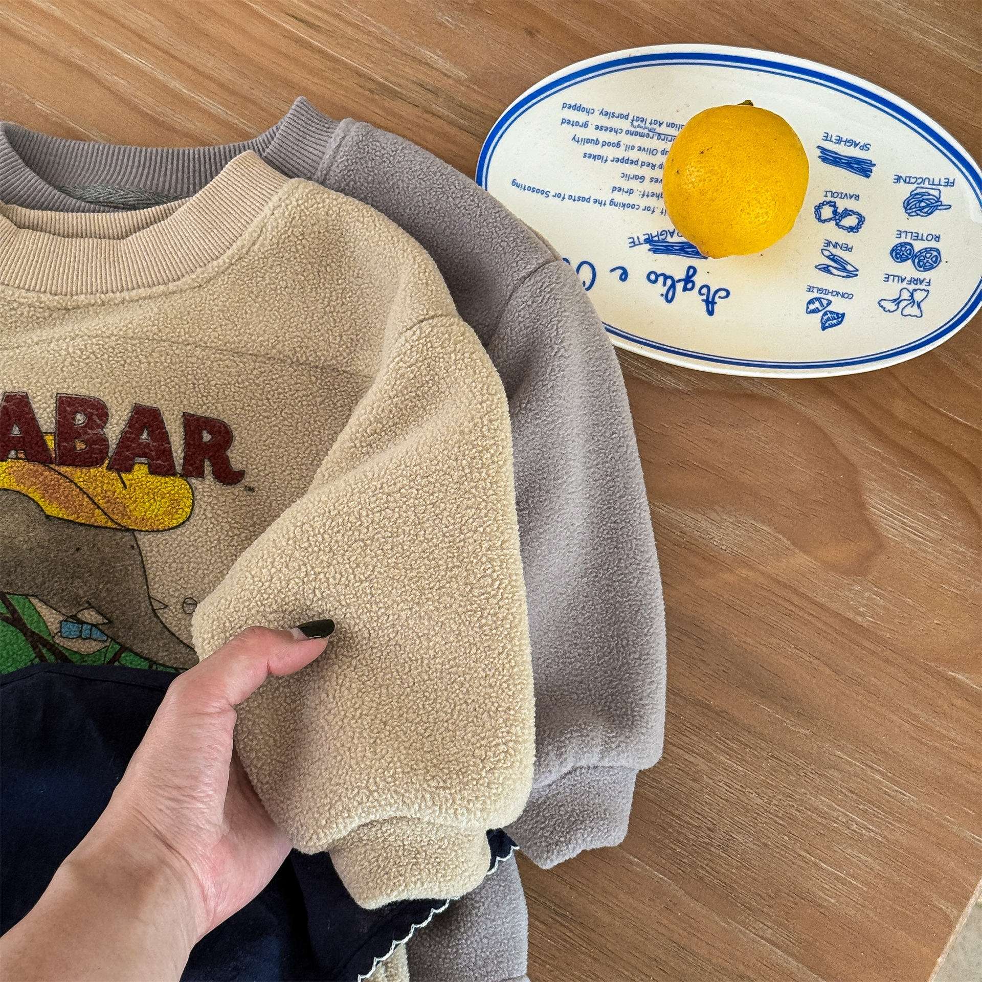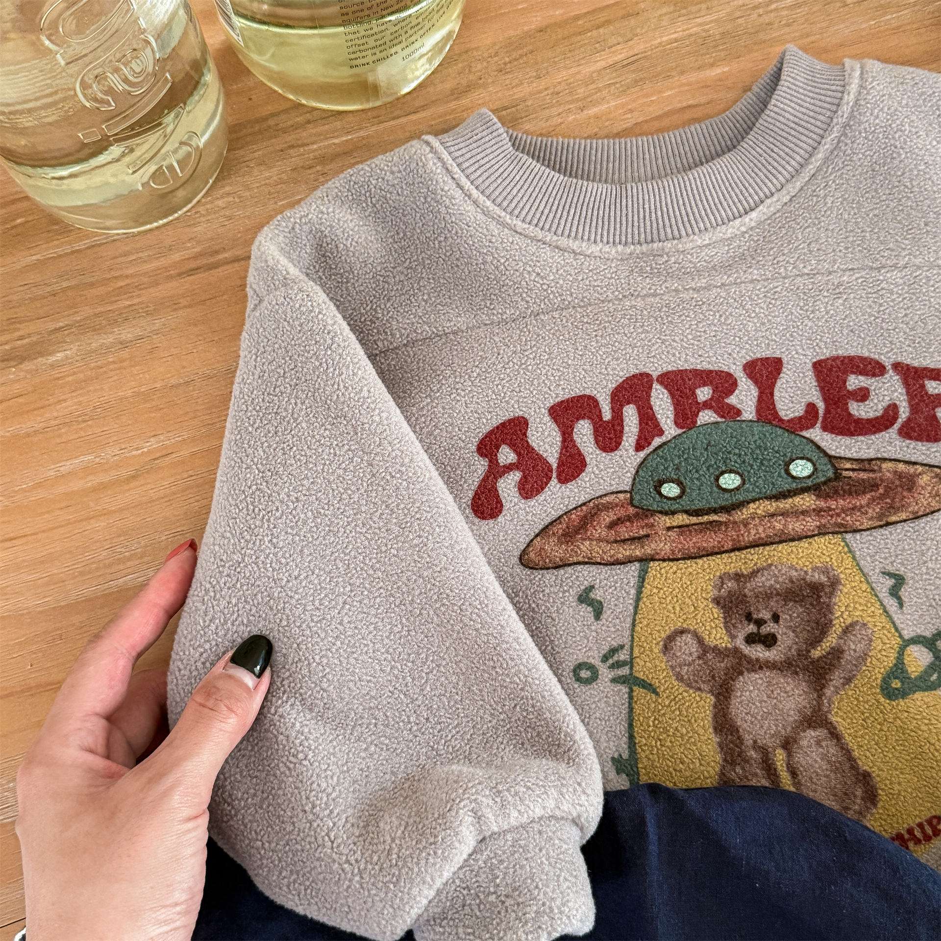 遊び心あふれるプリントが目を引くゆったりとしたシルエットの長袖トレーナーは、デイリーの装いをクラスアップさせる子ども服です。暖かなフリース素材を使用しているので、おしゃれを楽しみながら快適に過ごせます。ユニセックスで着用できるデザインは、キッズのカジュアルスタイルに洗練された雰囲気を添えるスウェットシャツとして活躍します。