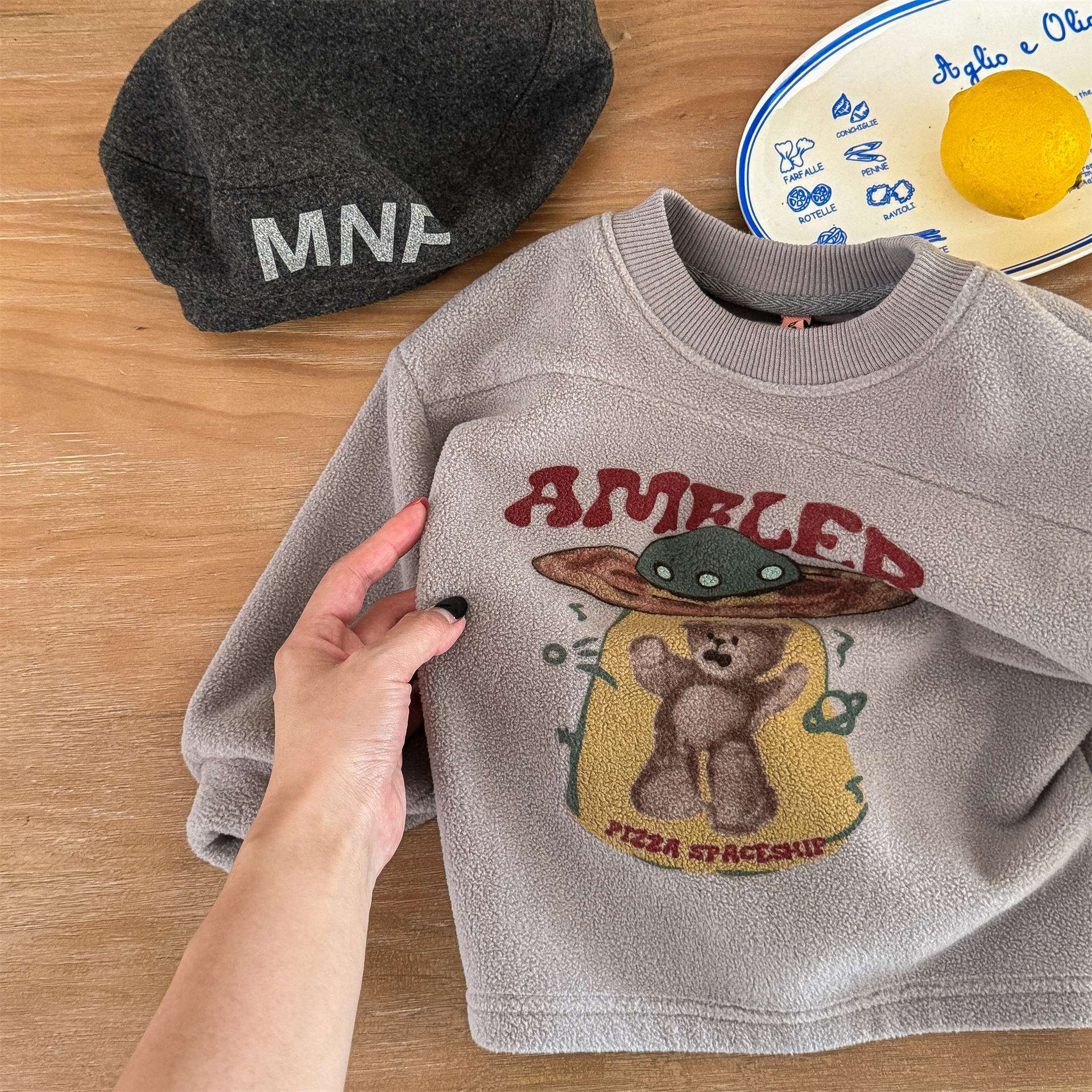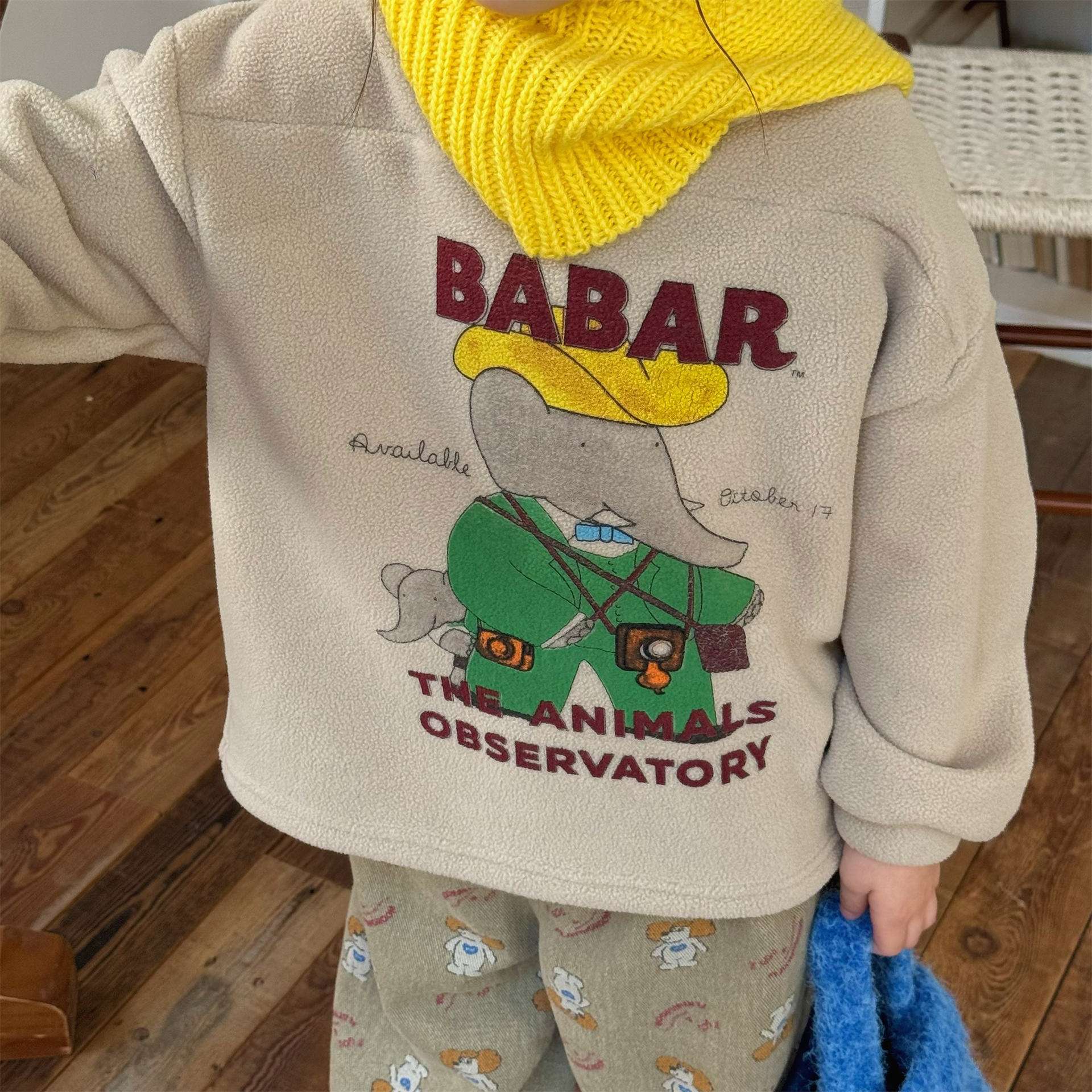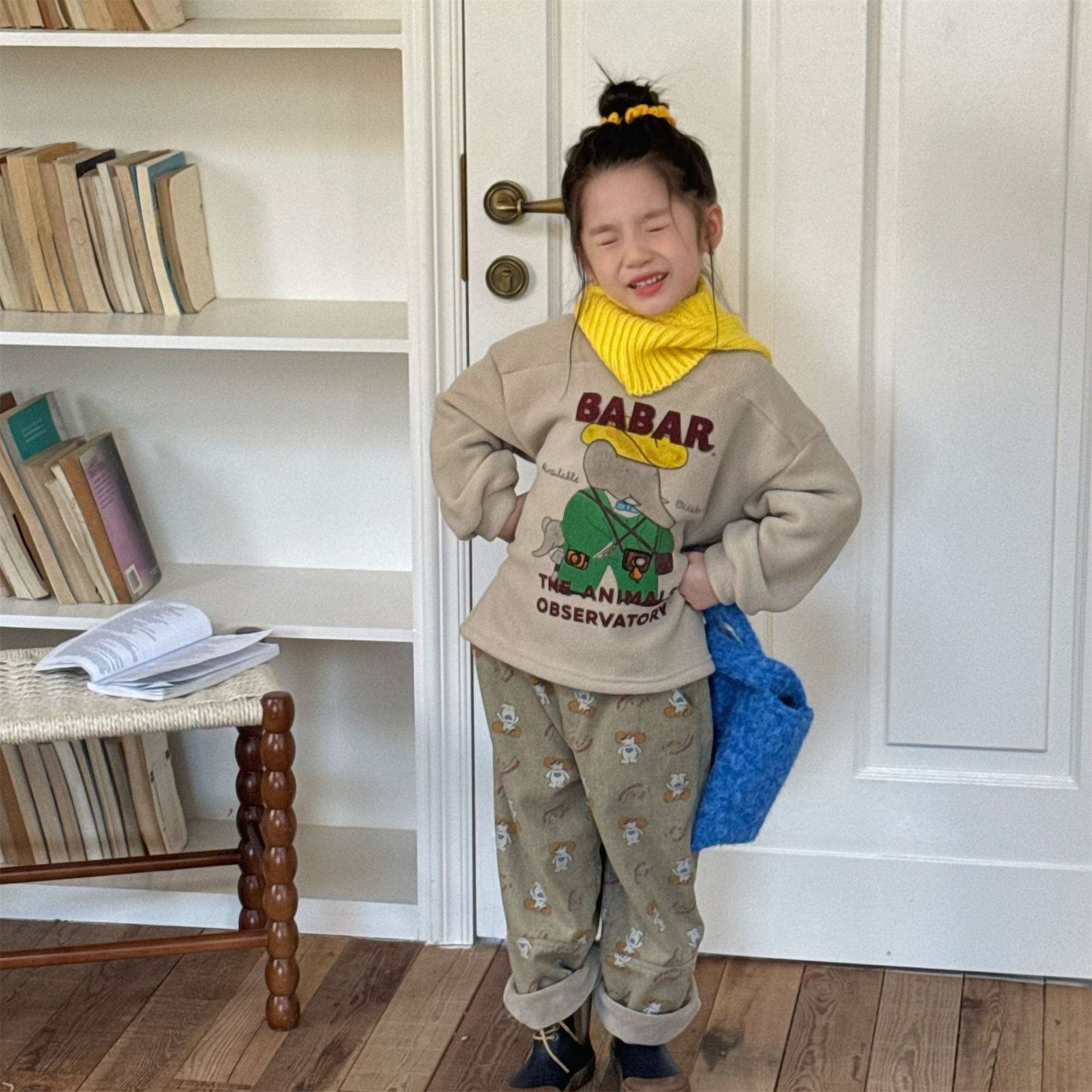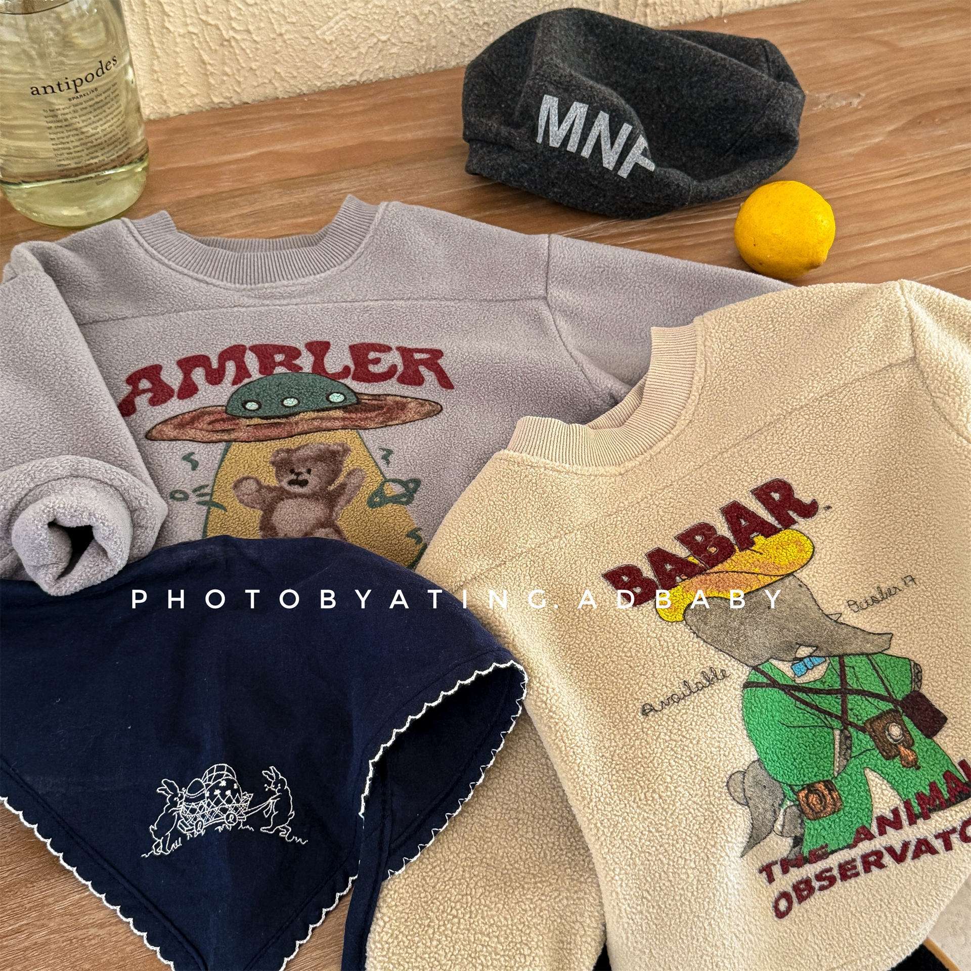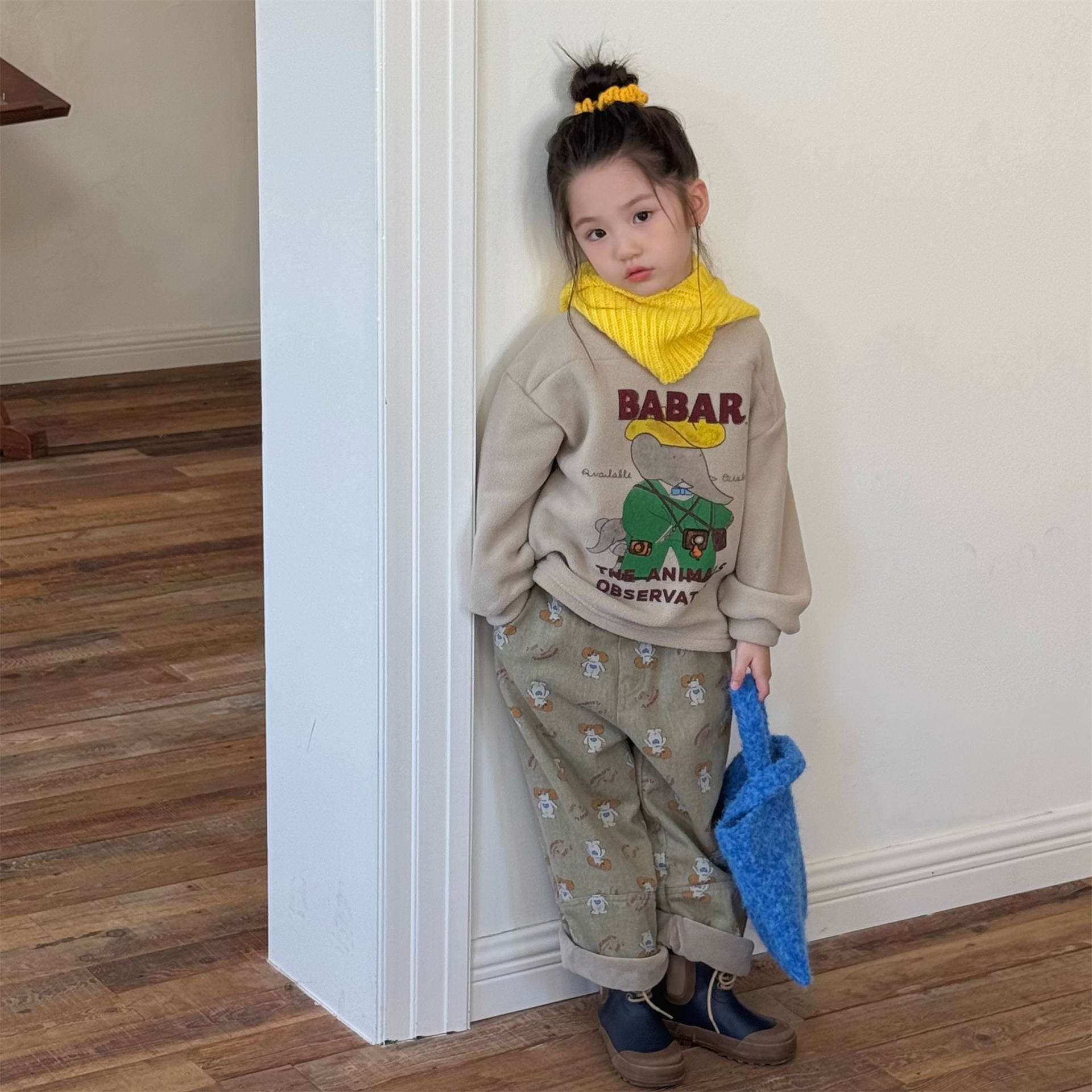 遊び心あふれるプリントが目を引くゆったりとしたシルエットの長袖トレーナーは、デイリーの装いをクラスアップさせる子ども服です。暖かなフリース素材を使用しているので、おしゃれを楽しみながら快適に過ごせます。ユニセックスで着用できるデザインは、キッズのカジュアルスタイルに洗練された雰囲気を添えるスウェットシャツとして活躍します。