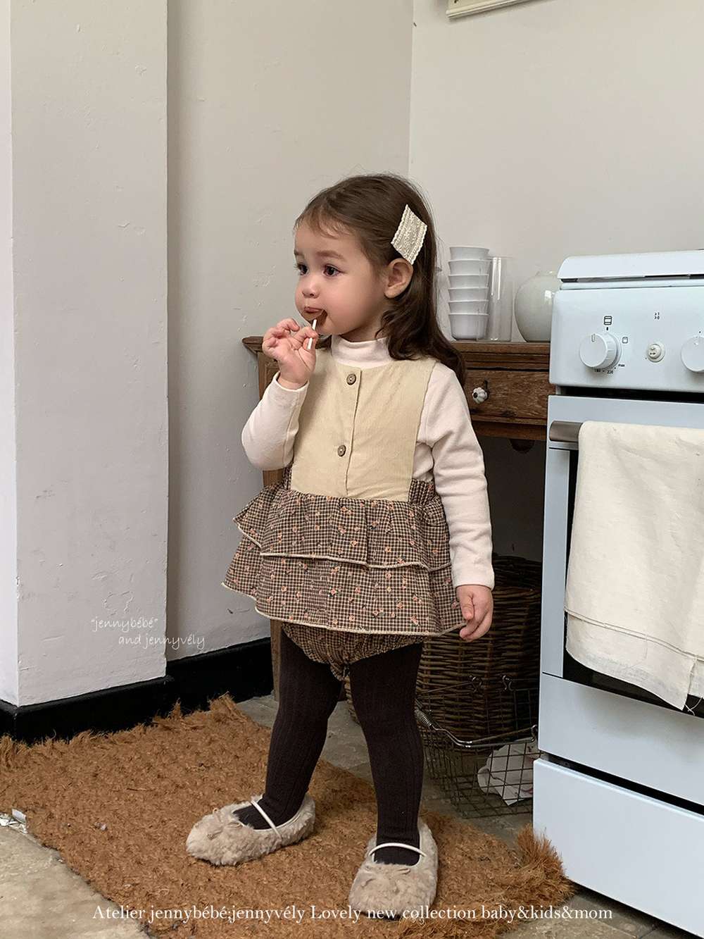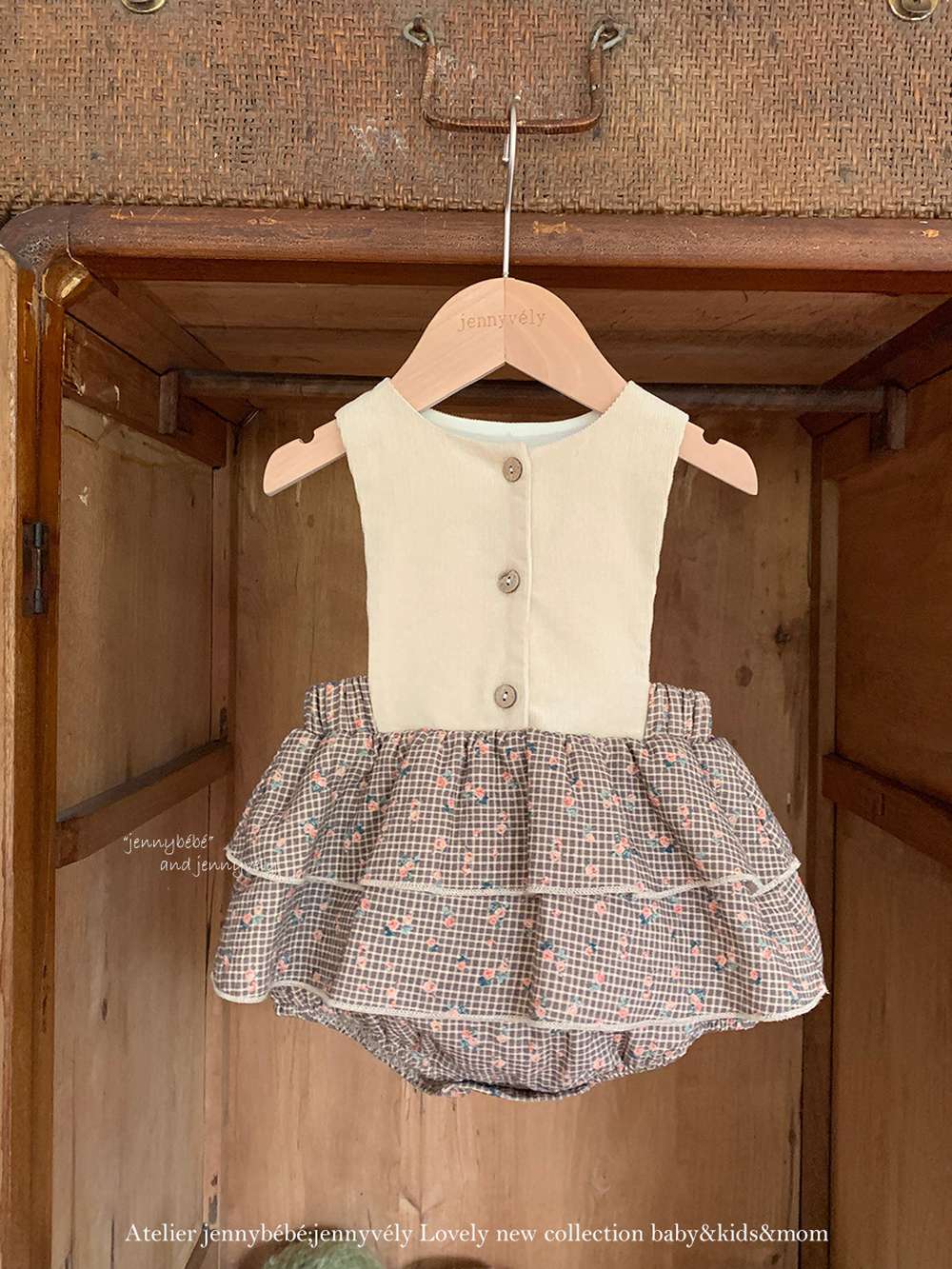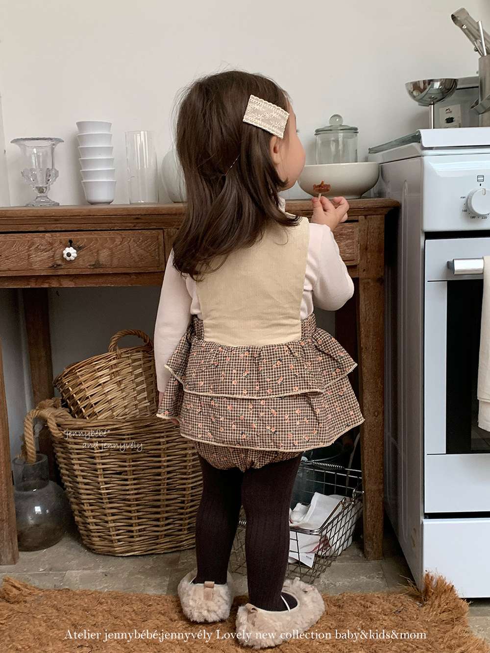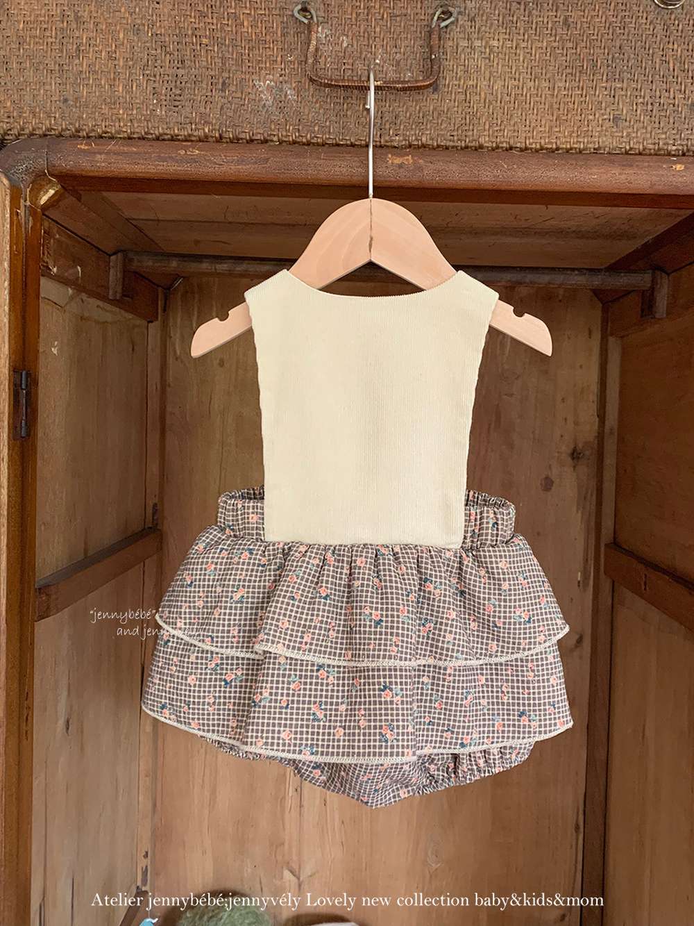 ノースリーブロンパース コーデュロイ チェック柄 フリルスカート【mh0011533】