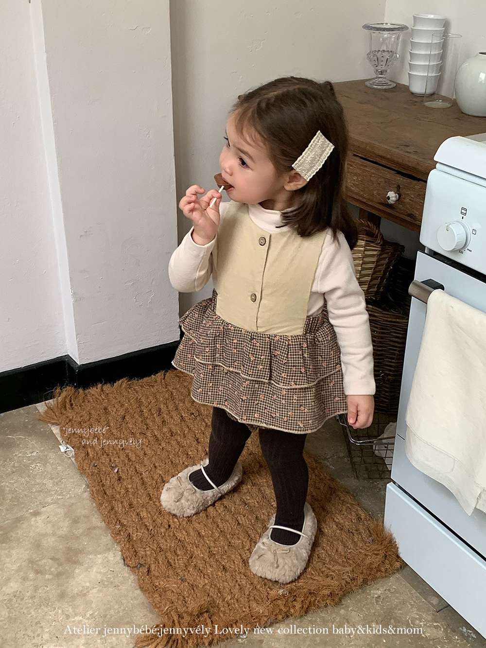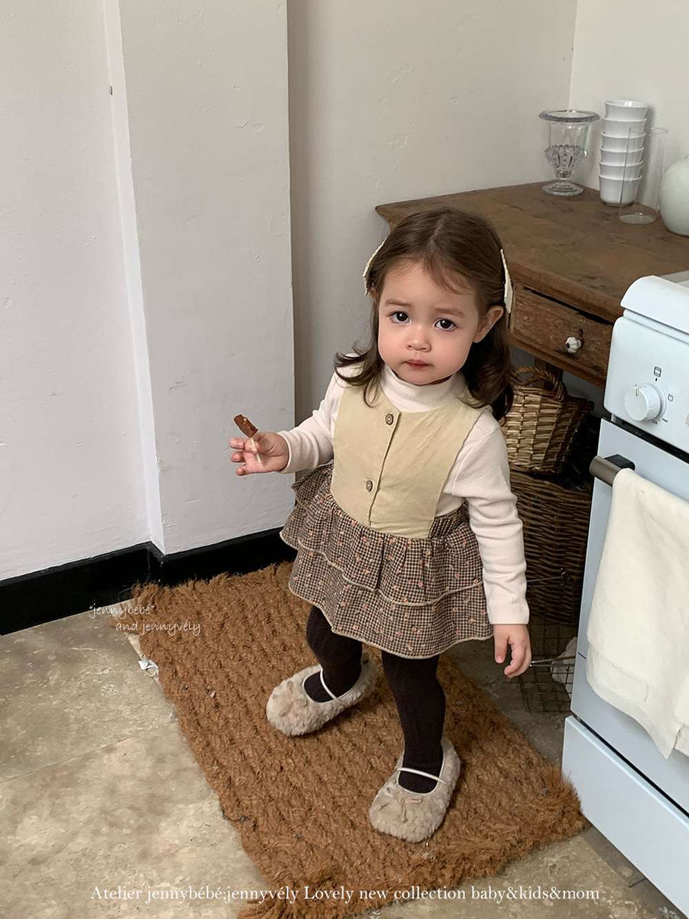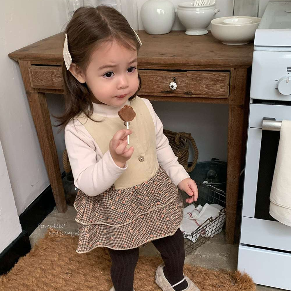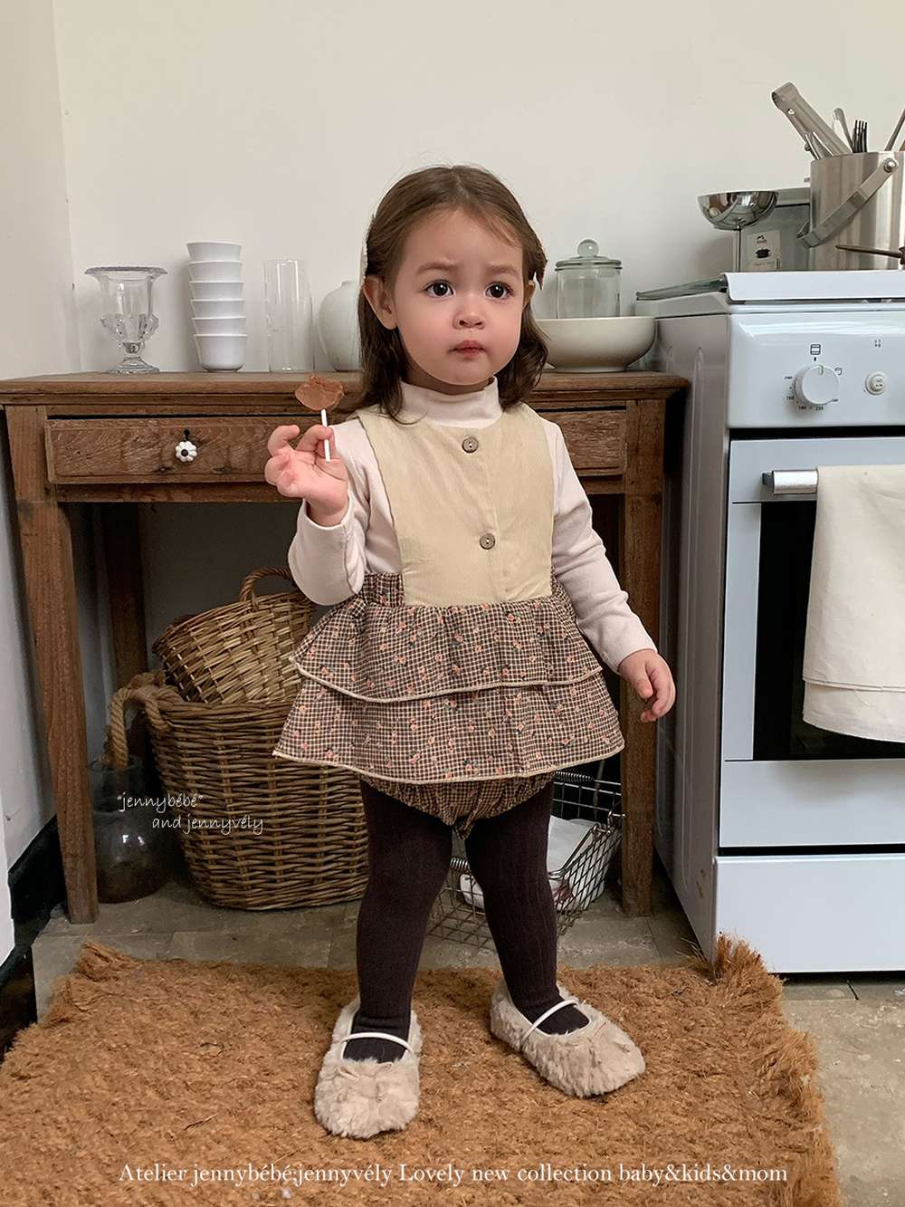 ノースリーブロンパース コーデュロイ チェック柄 フリルスカート【mh0011533】