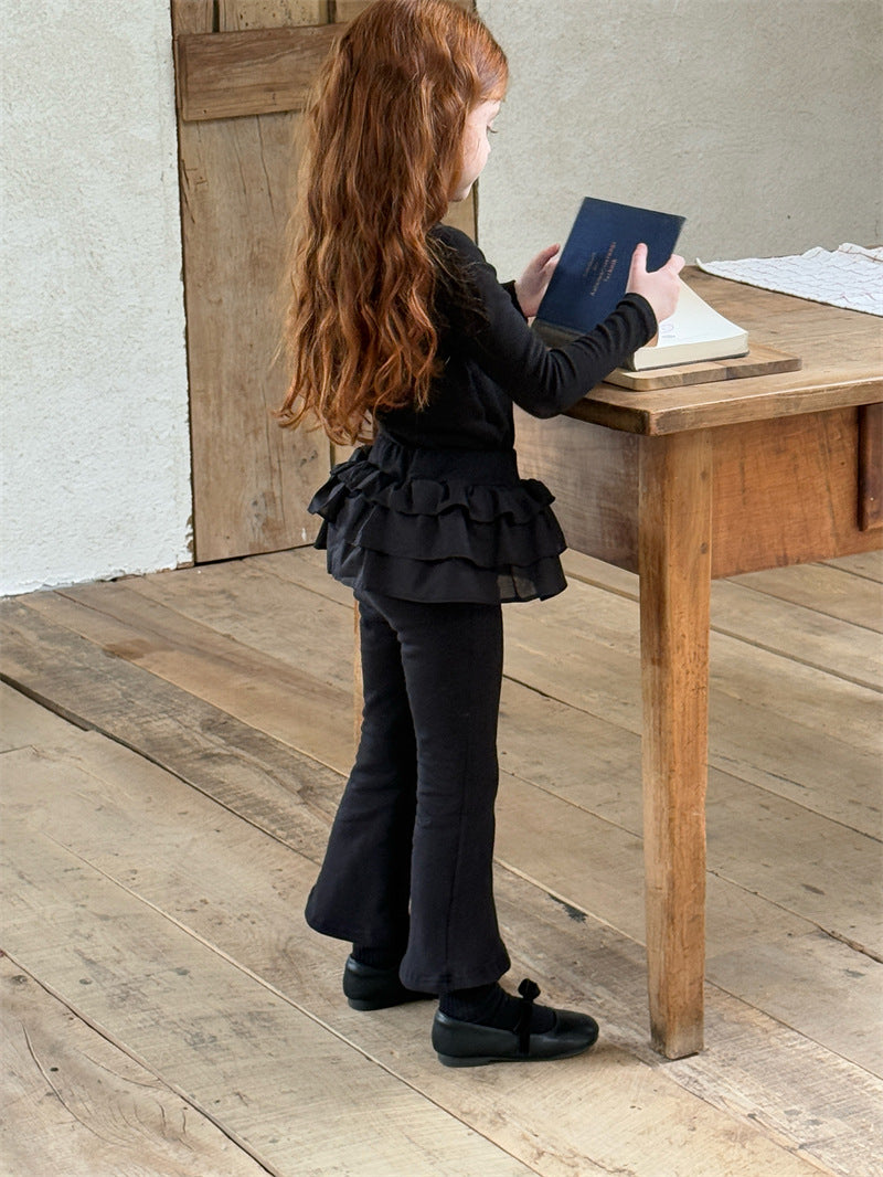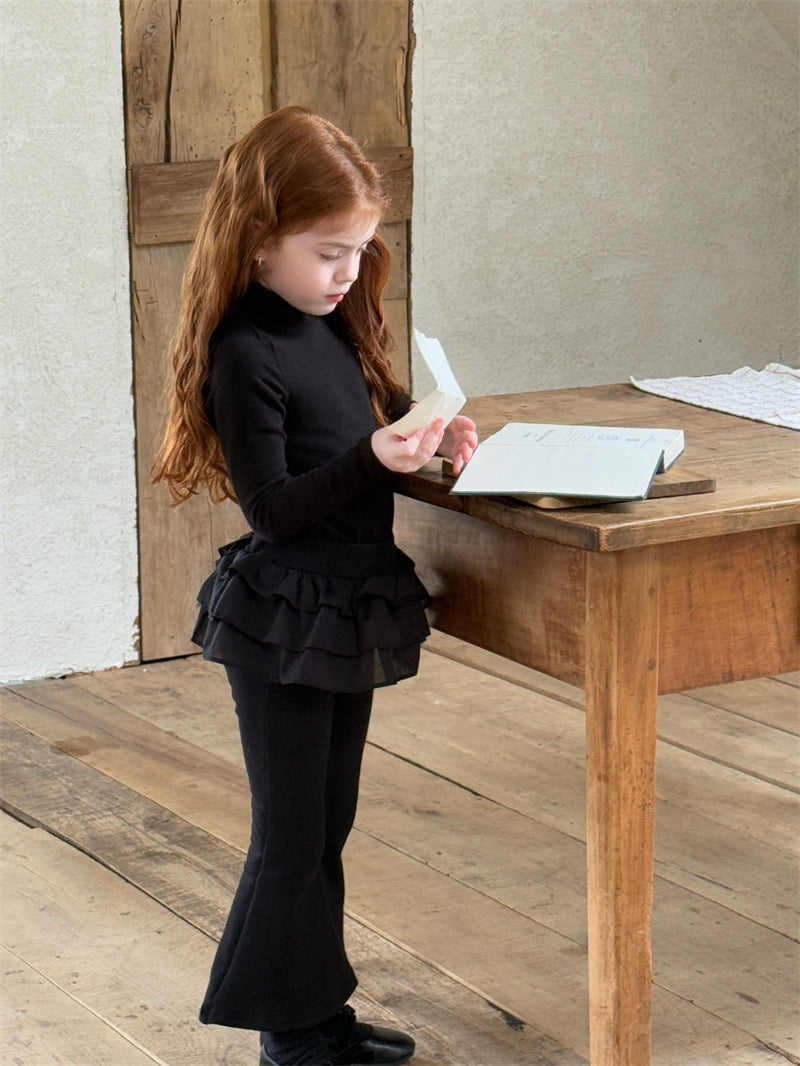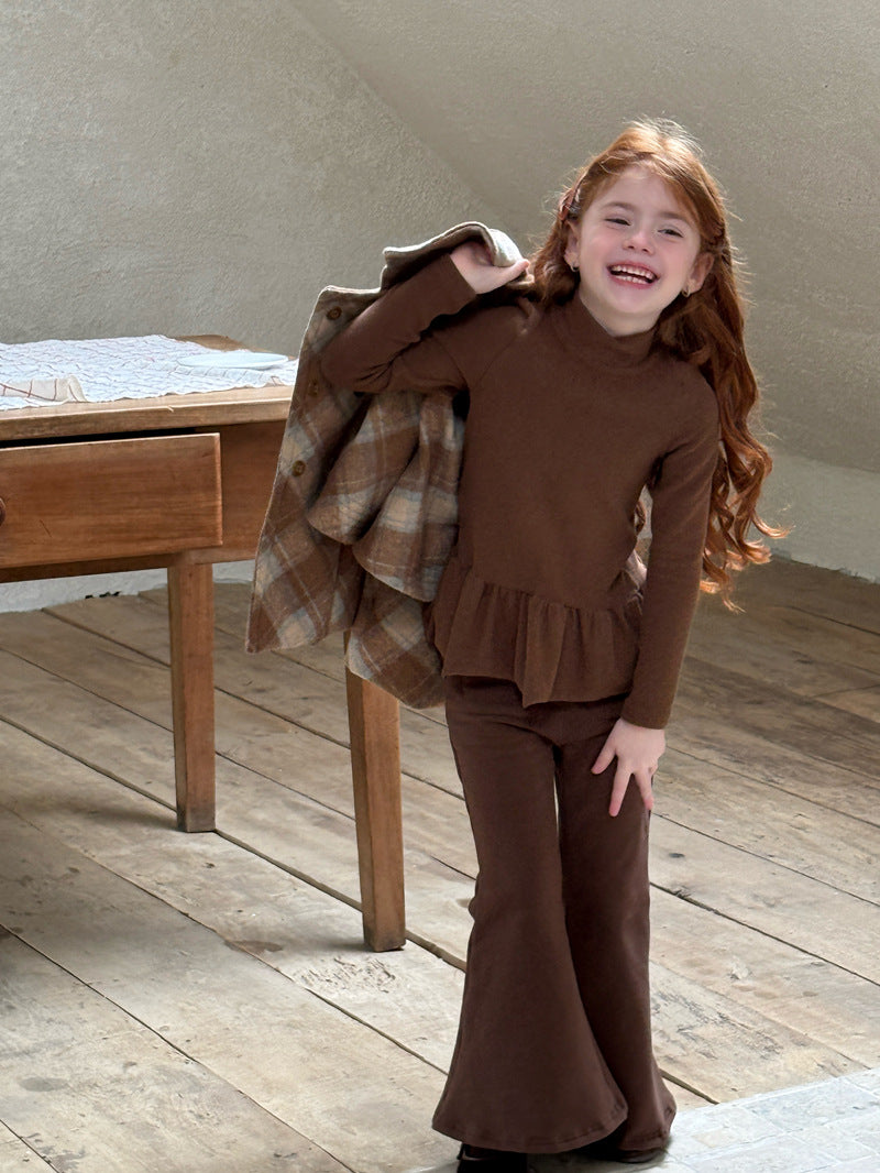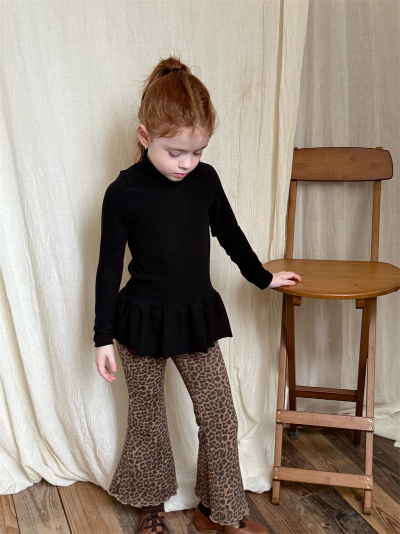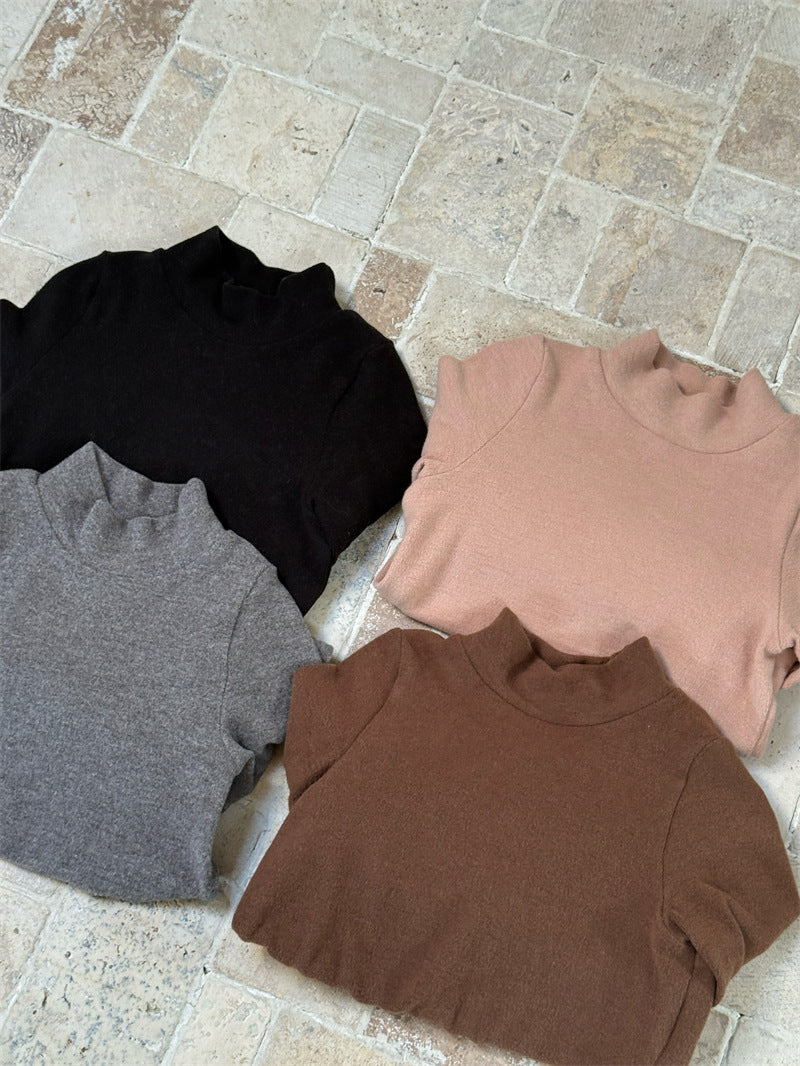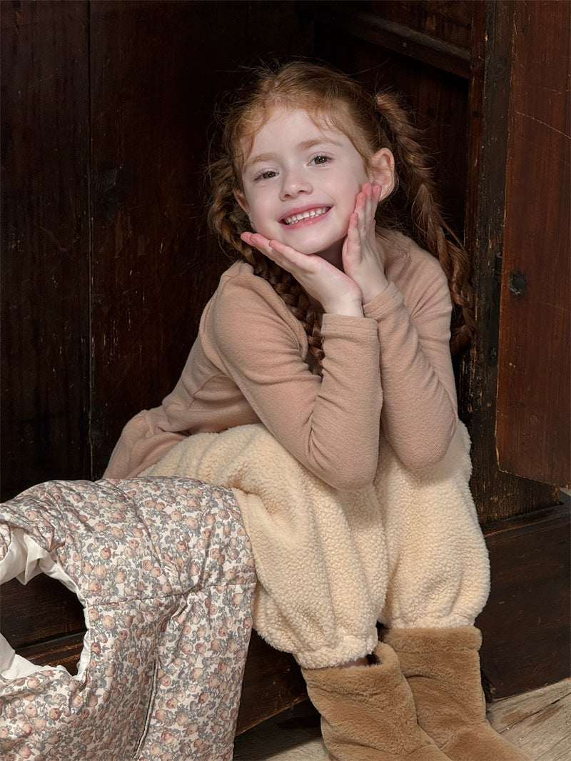 暖かな裏起毛素材を使用した、寒い季節にぴったりの快適な長袖トップス。シンプルなハイネックのデザインに、裾のペプラムフリルが愛らしいアクセントを添え、レイヤードスタイルを華やかに彩ります。ストレッチ性に優れた生地で動きやすく、一枚で着てもワンピースやジャンパースカートのインナーとしても活躍する、着回し力の高い子ども服のベースシャツです。