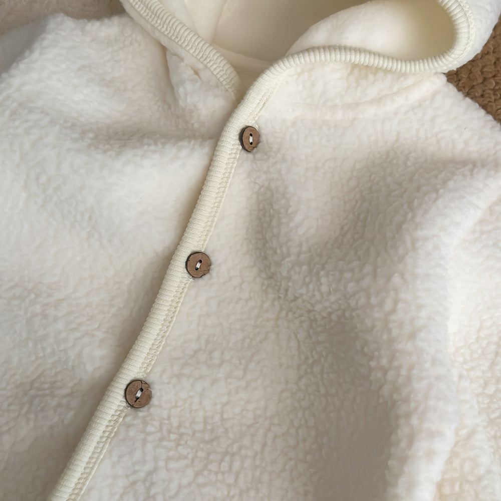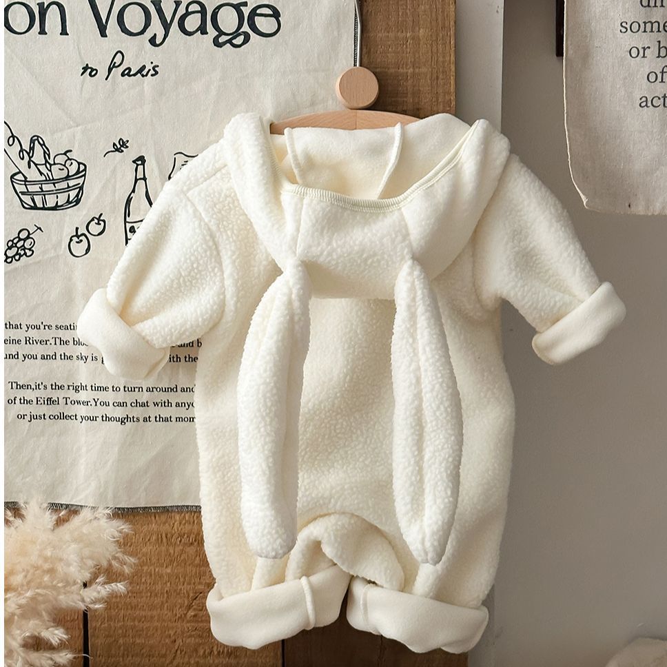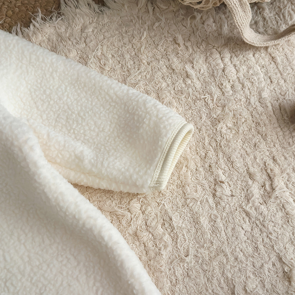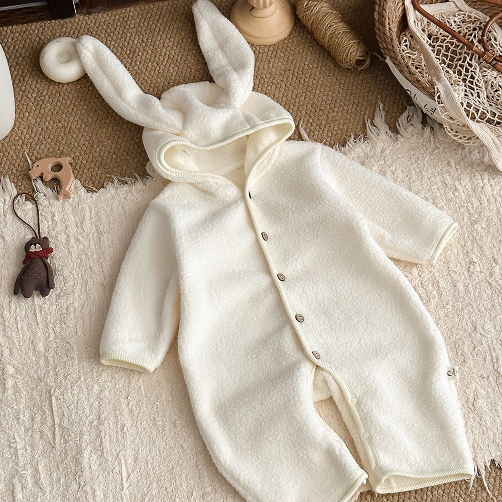 ふっくらとしたボア素材が特徴のフーディロンパースは、ベビーを優しく包み込み、最高の暖かさを提供します。フードに施された可愛らしいうさ耳デザインは、おしゃれなお出かけスタイルを完成させます。このモコモコとした厚手のカバーオールは、秋から冬にかけての寒さ対策に最適なベビー服であり、一枚で全身を暖かく保つボディスーツです。可愛らしいだけではなく、機能性にも優れたこの一着は、ハイセンスなママからの注目を集める子ども服です。
