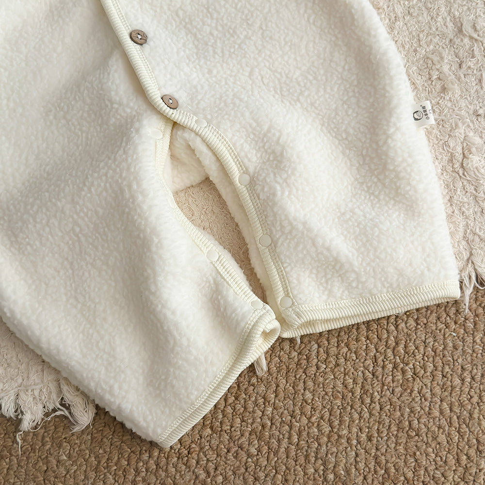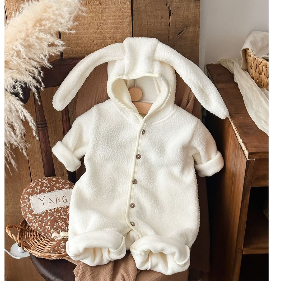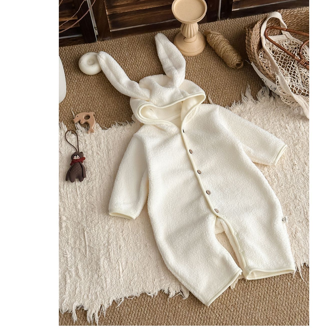 ふっくらとしたボア素材が特徴のフーディロンパースは、ベビーを優しく包み込み、最高の暖かさを提供します。フードに施された可愛らしいうさ耳デザインは、おしゃれなお出かけスタイルを完成させます。このモコモコとした厚手のカバーオールは、秋から冬にかけての寒さ対策に最適なベビー服であり、一枚で全身を暖かく保つボディスーツです。可愛らしいだけではなく、機能性にも優れたこの一着は、ハイセンスなママからの注目を集める子ども服です。