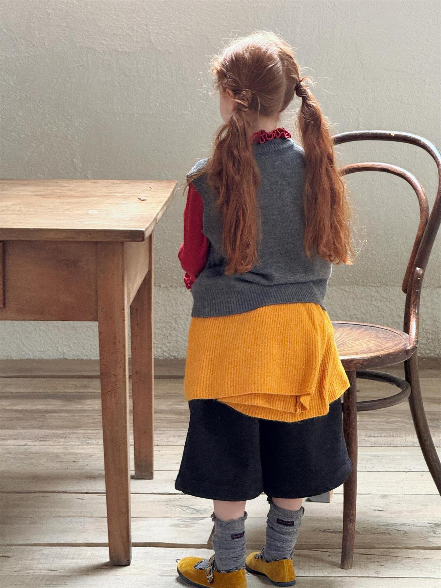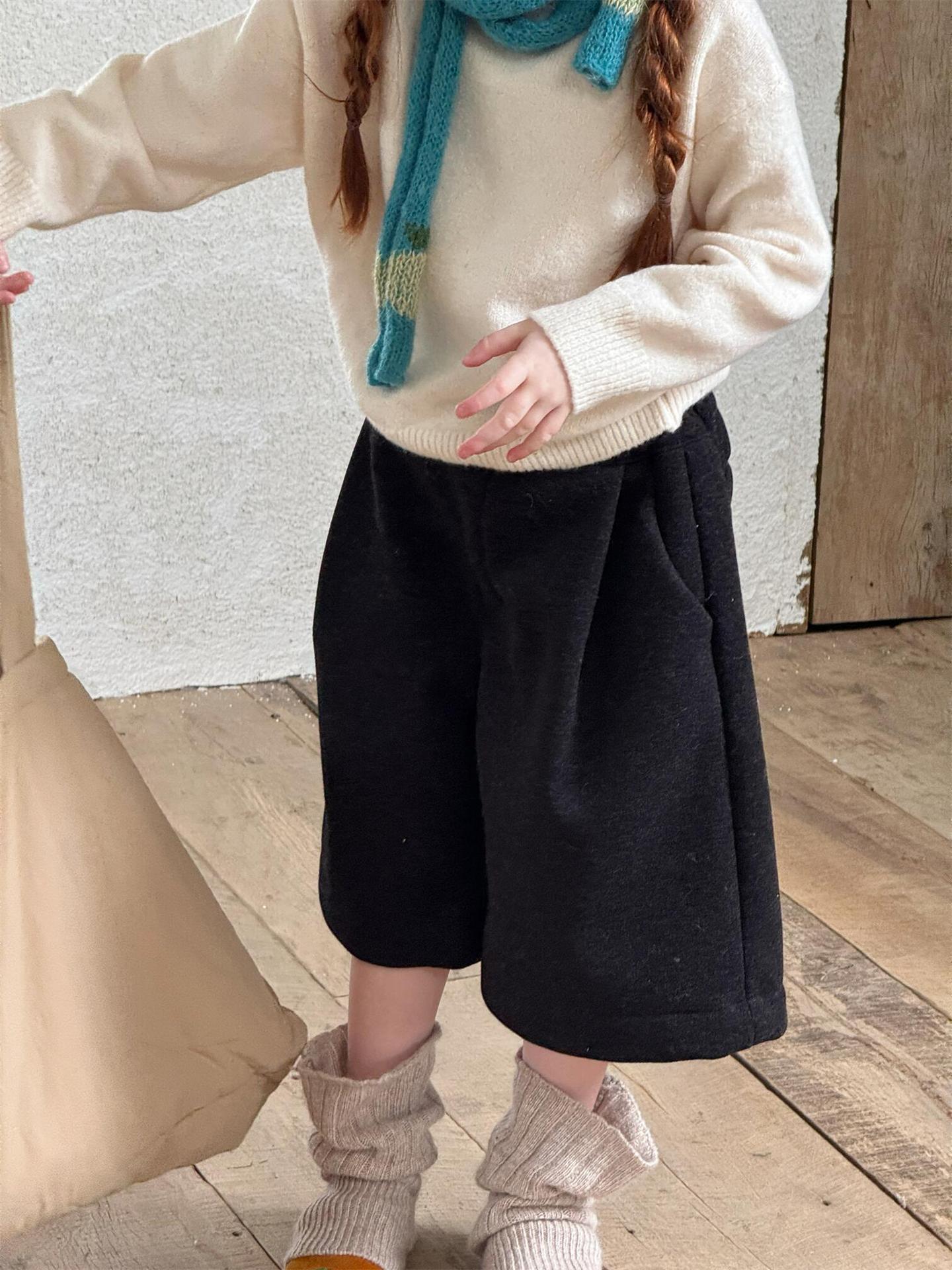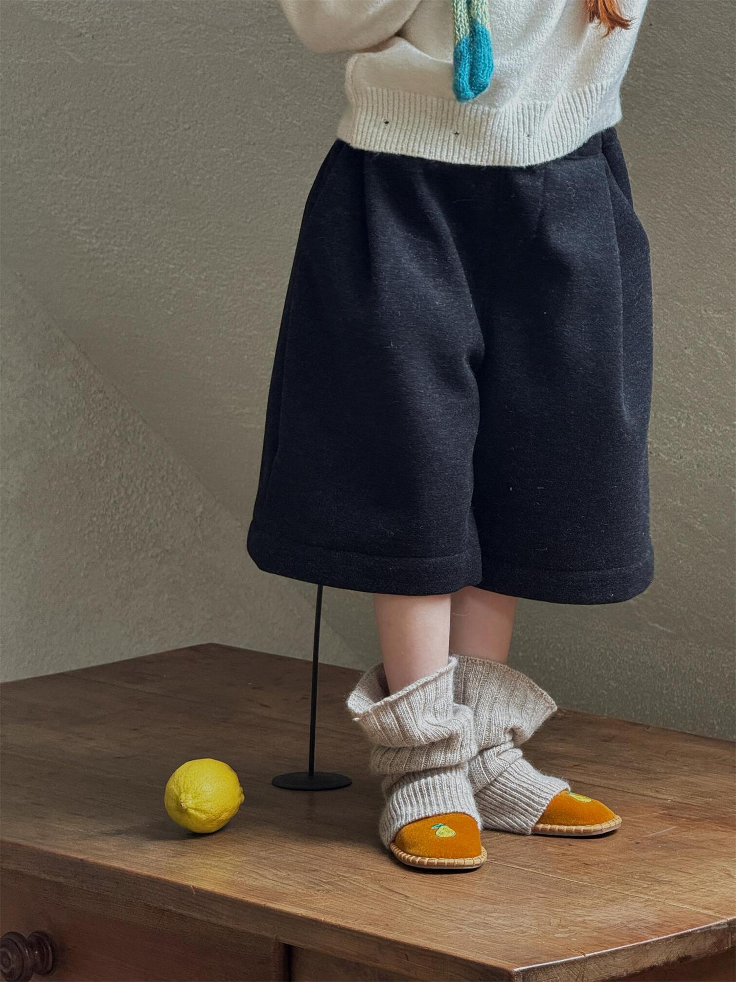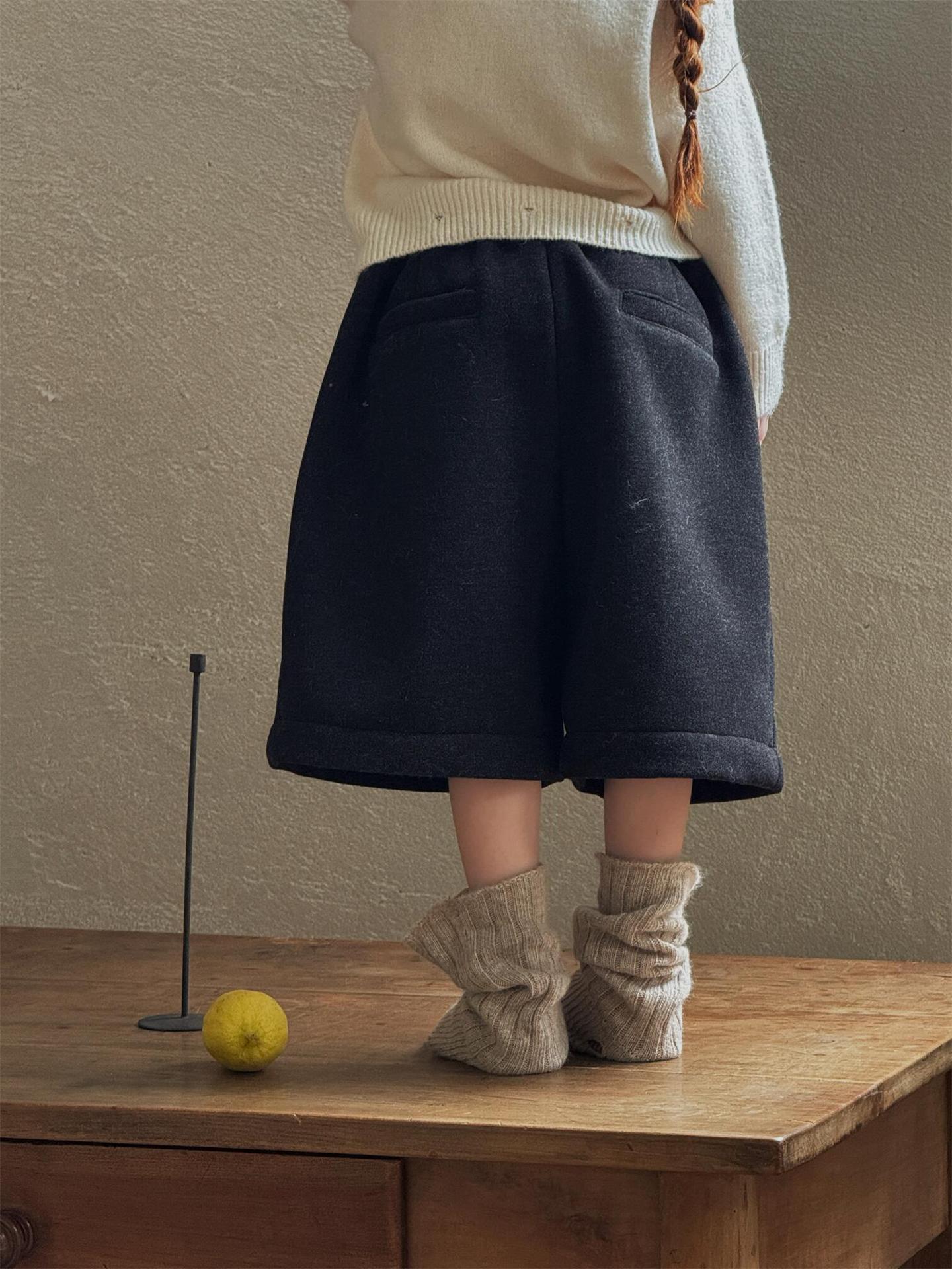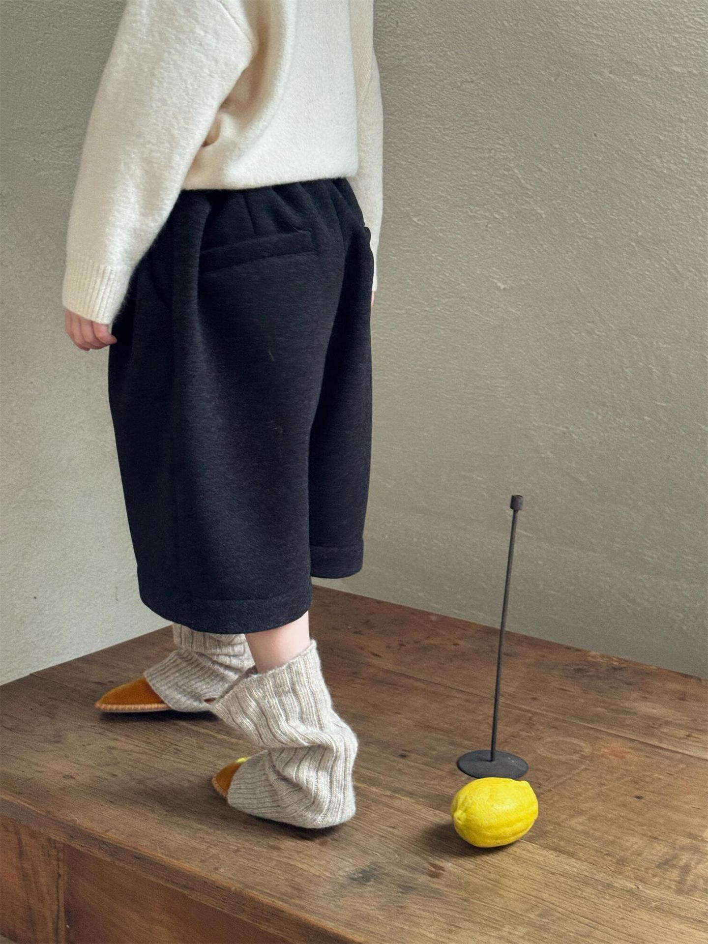 ウールタッチの質感が上品なハーフパンツ。裏起毛素材を使用しているため、寒い季節にも暖かく快適に着用できる子ども服です。ゆったりとしたストレートシルエットがトレンド感を演出し、リラックス感とおしゃれさを両立。ツイード調の素材を組み合わせたこのクロップド丈パンツは、厚手で防寒性にも優れ、デイリーの着こなしに上質な温もりとスタイリッシュな雰囲気をプラスします。
