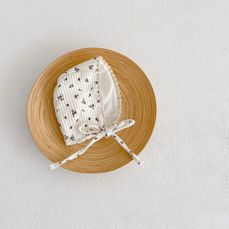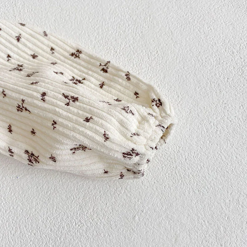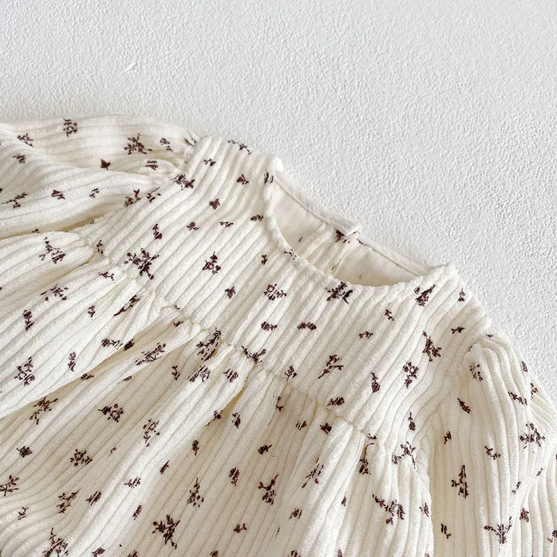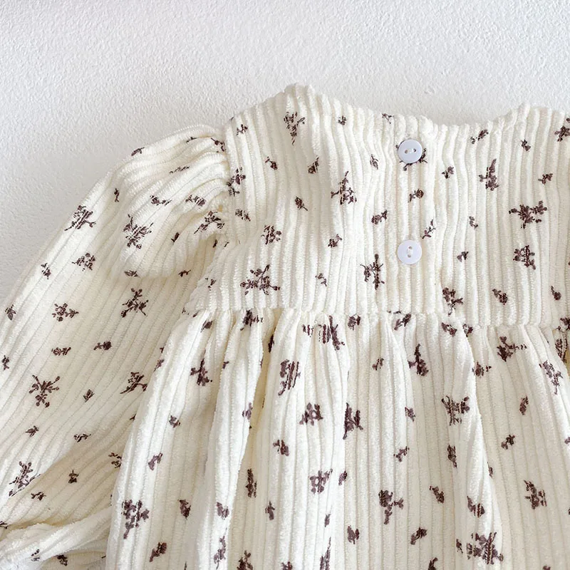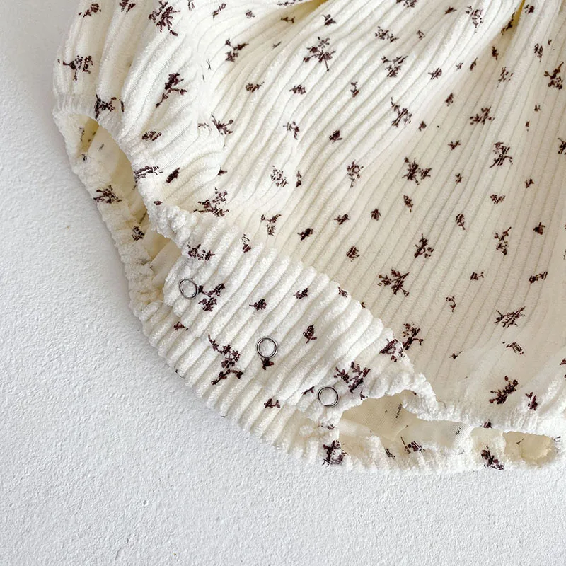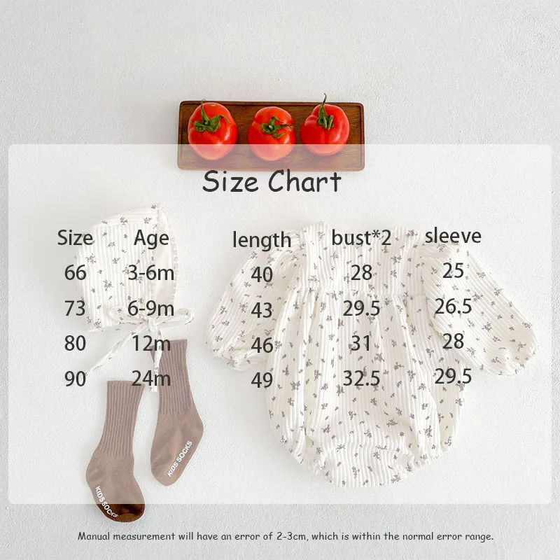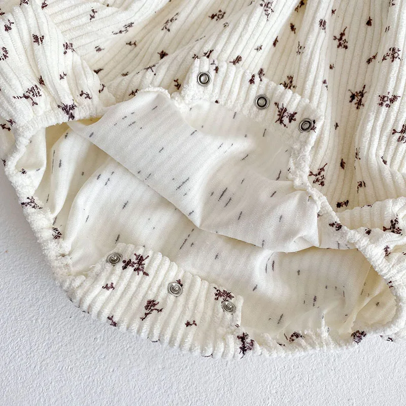 Baby Corduroy Flower Long Sleeve Romper Bonnet Set