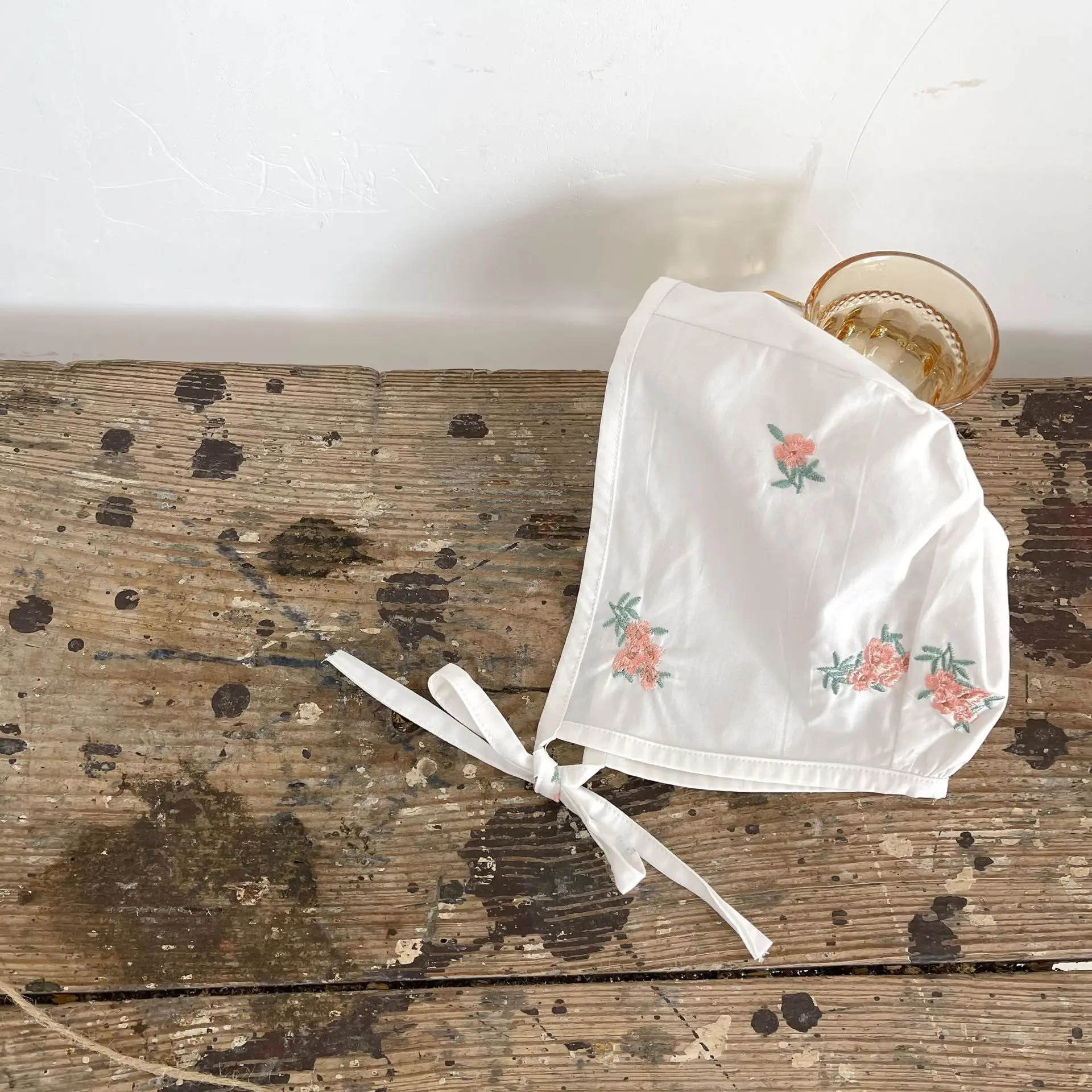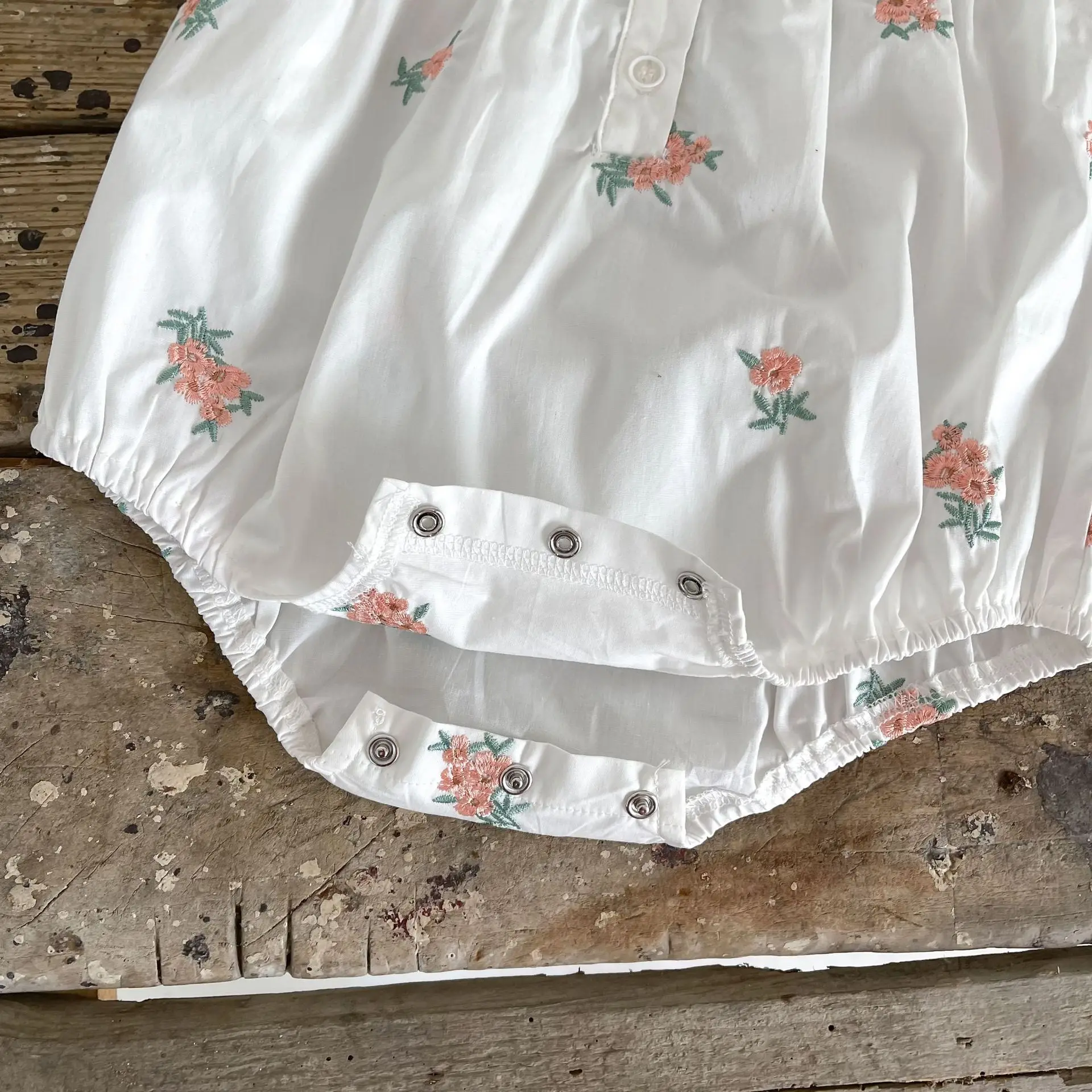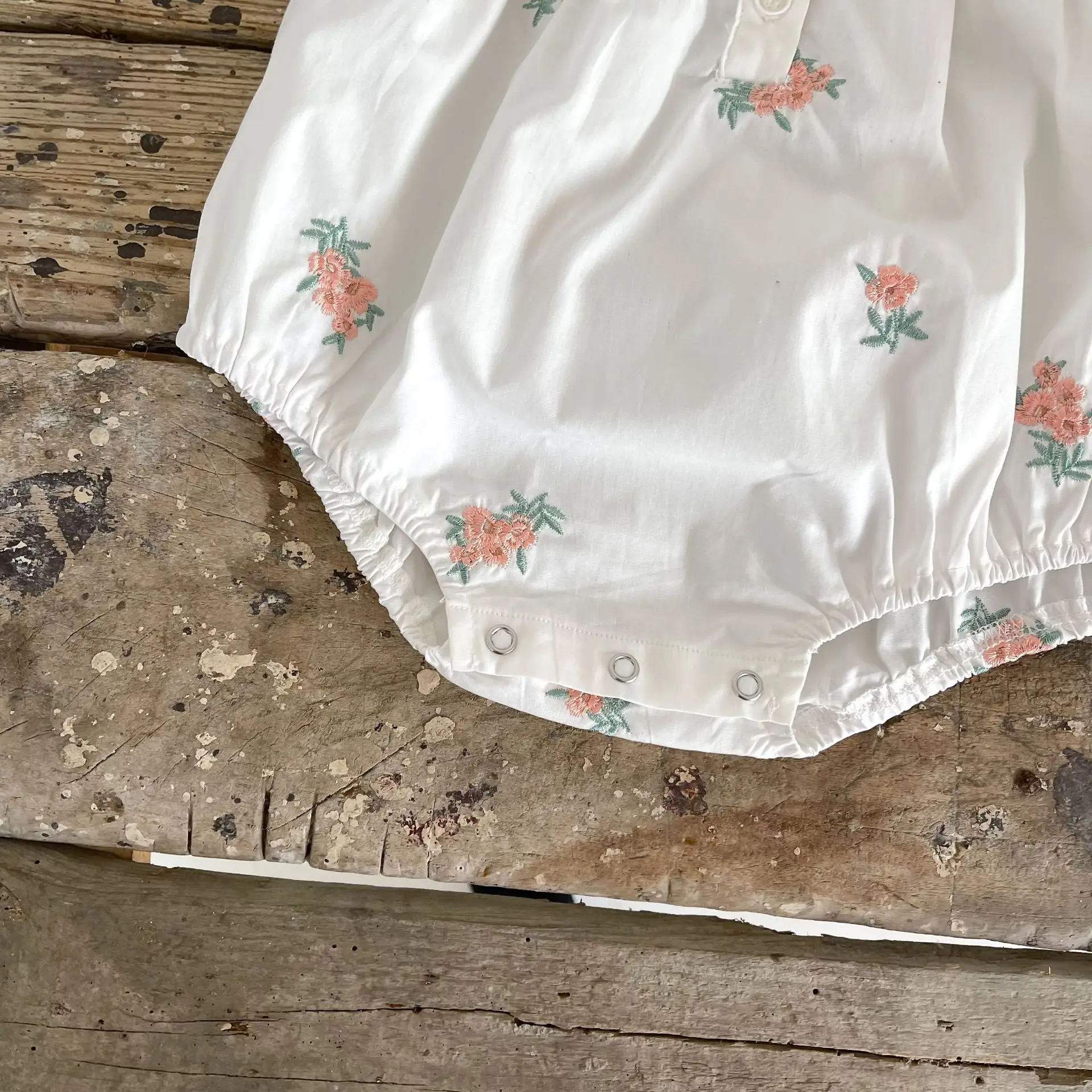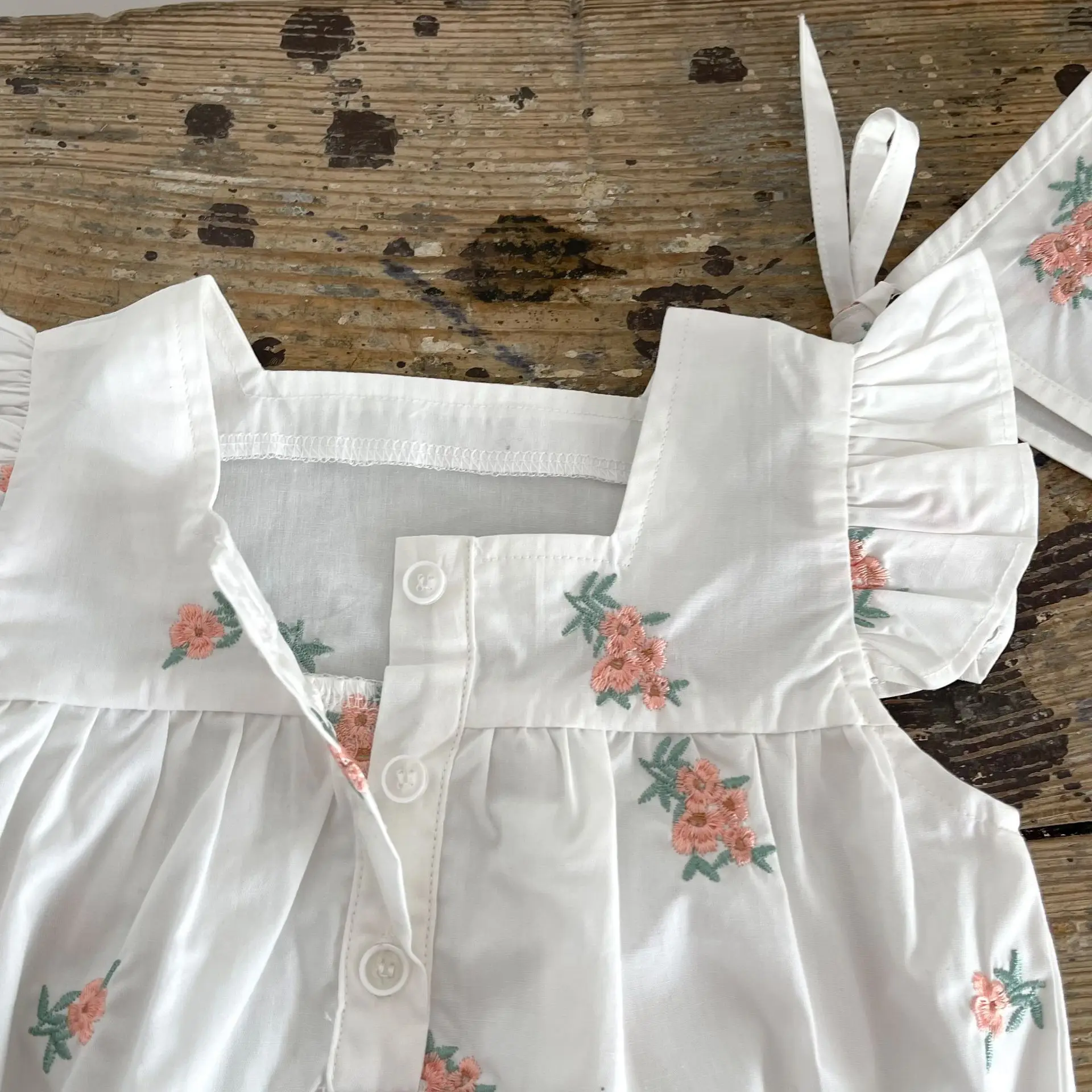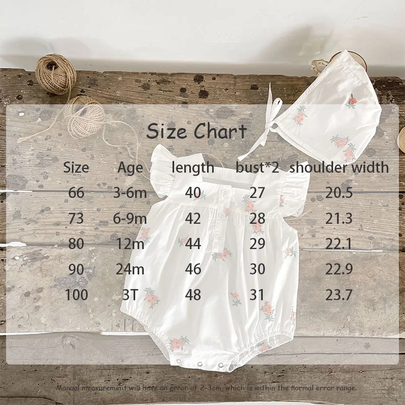 Baby Flower Embroidery Ruffle Romper Bonnet Hat Set