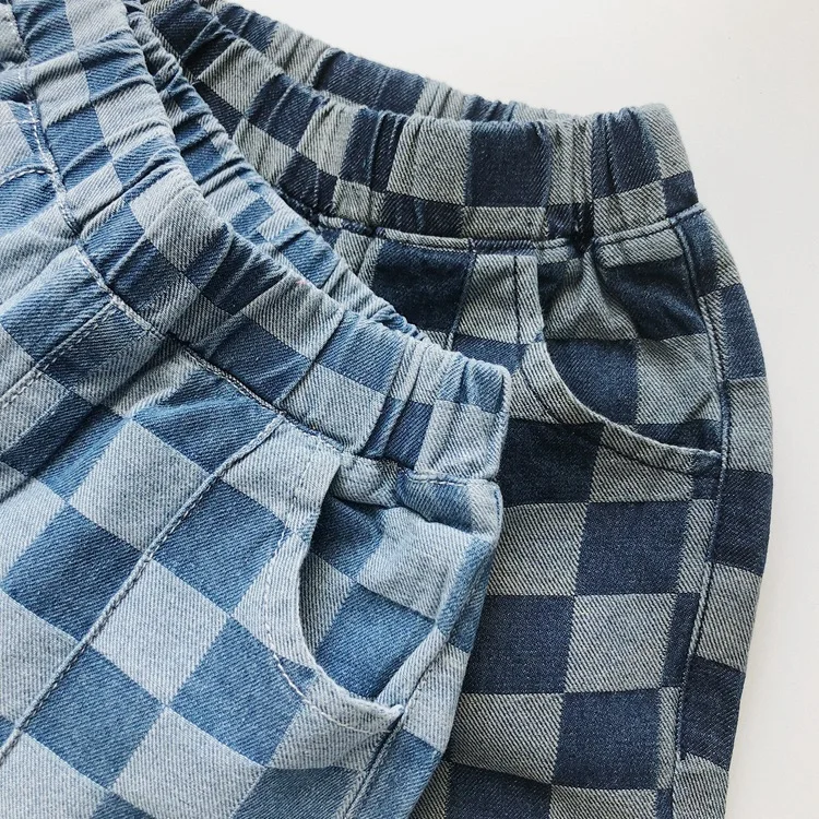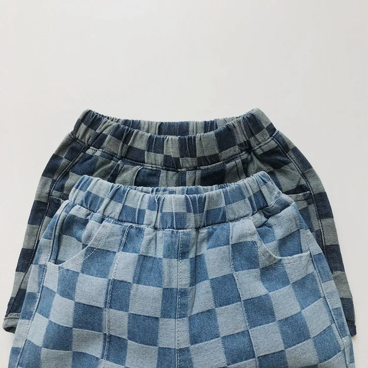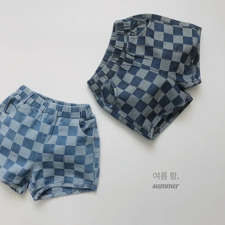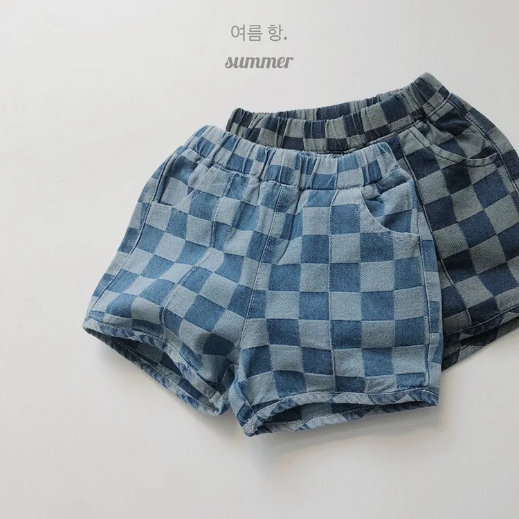Kids Checkered Denim Shorts Light Blue Dark Blue Boys