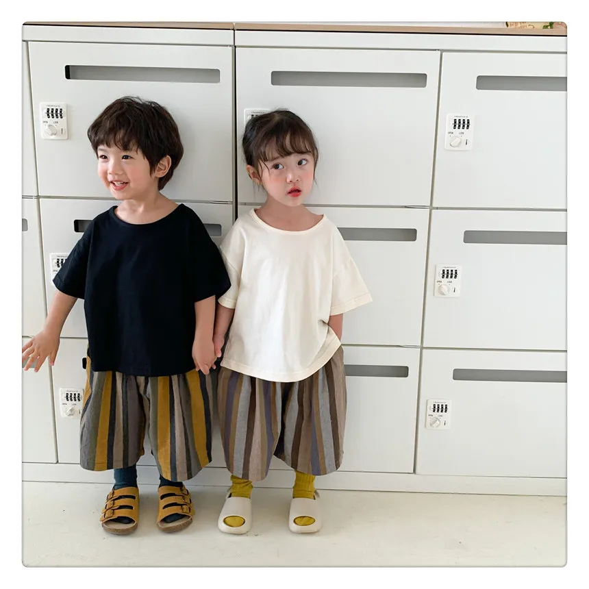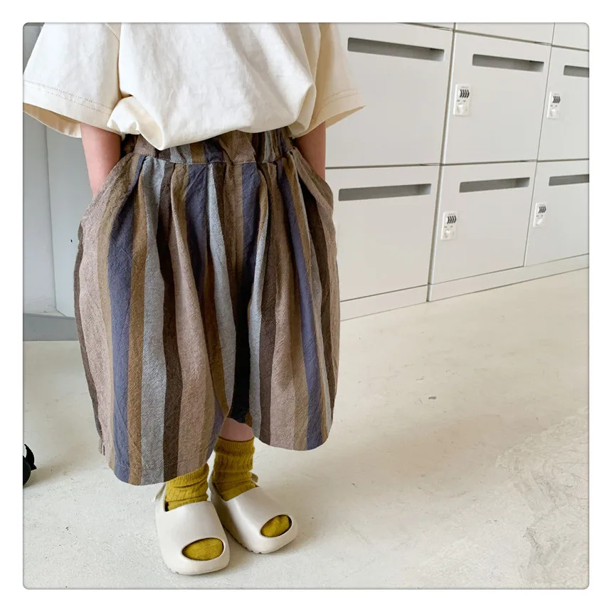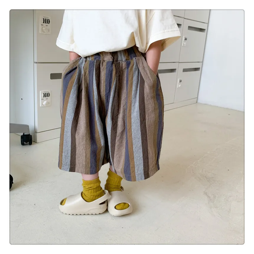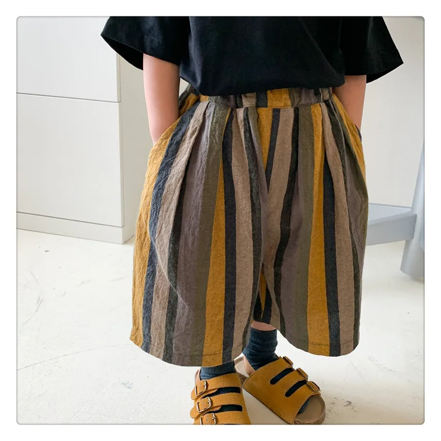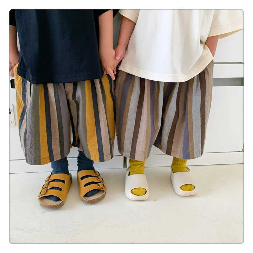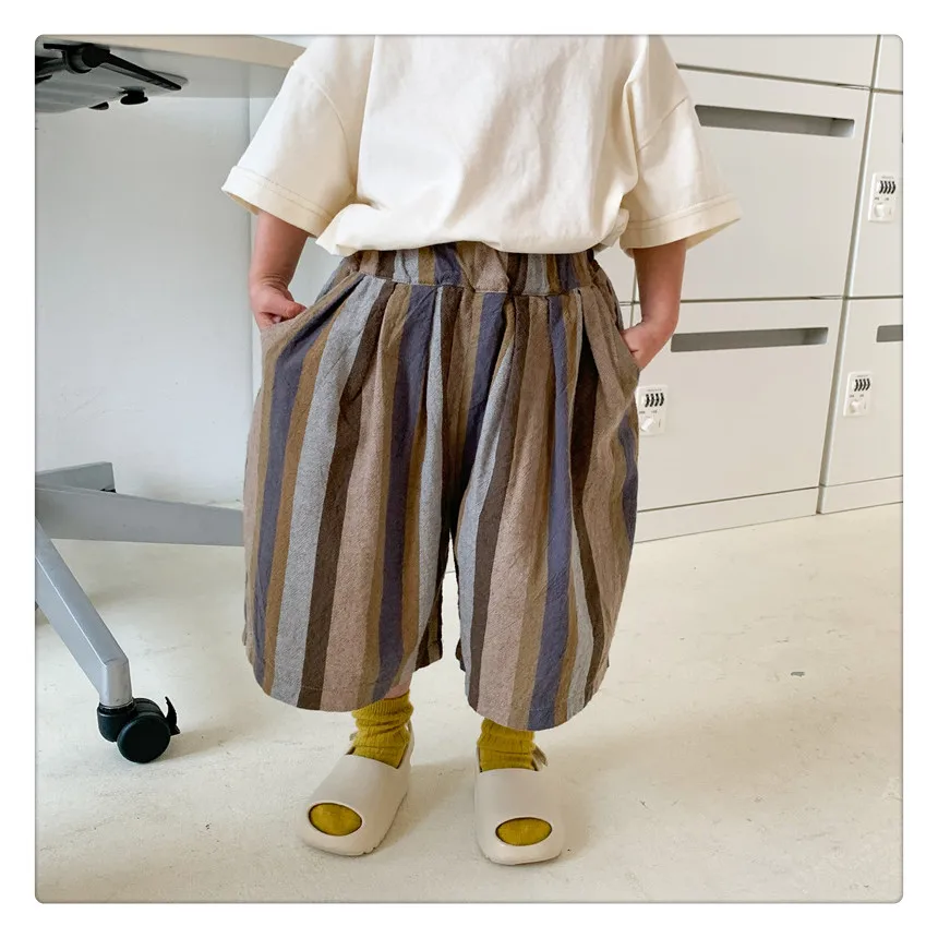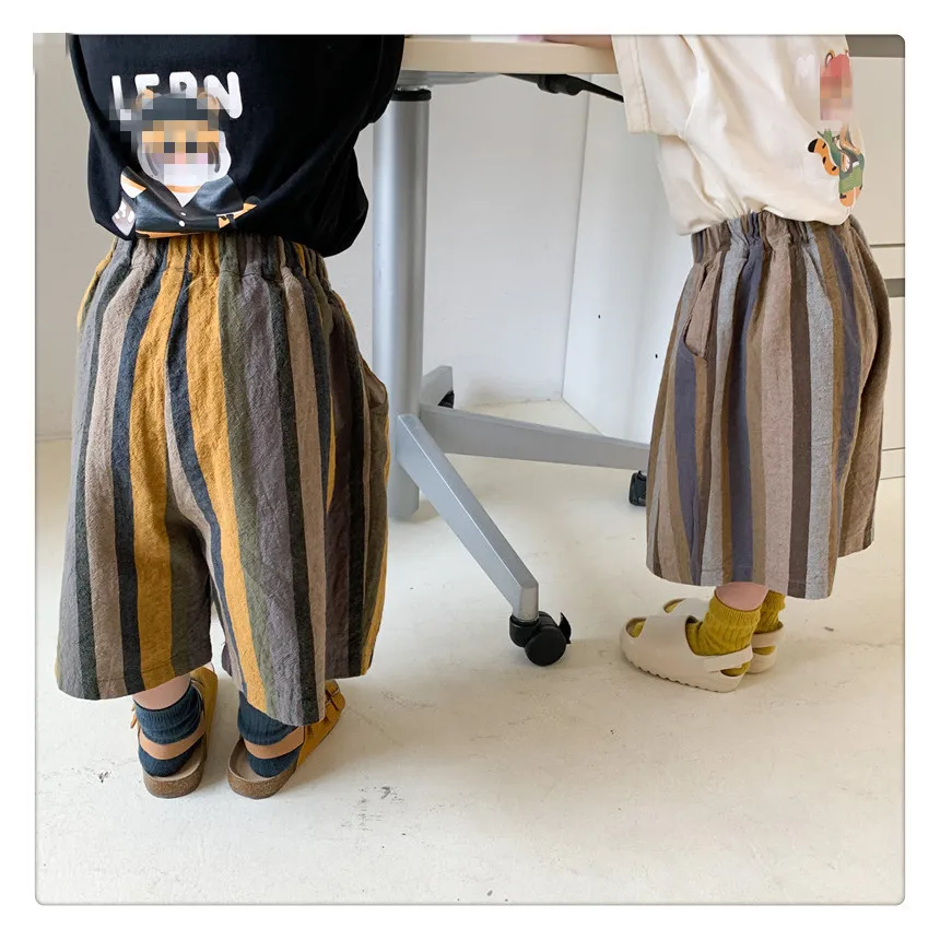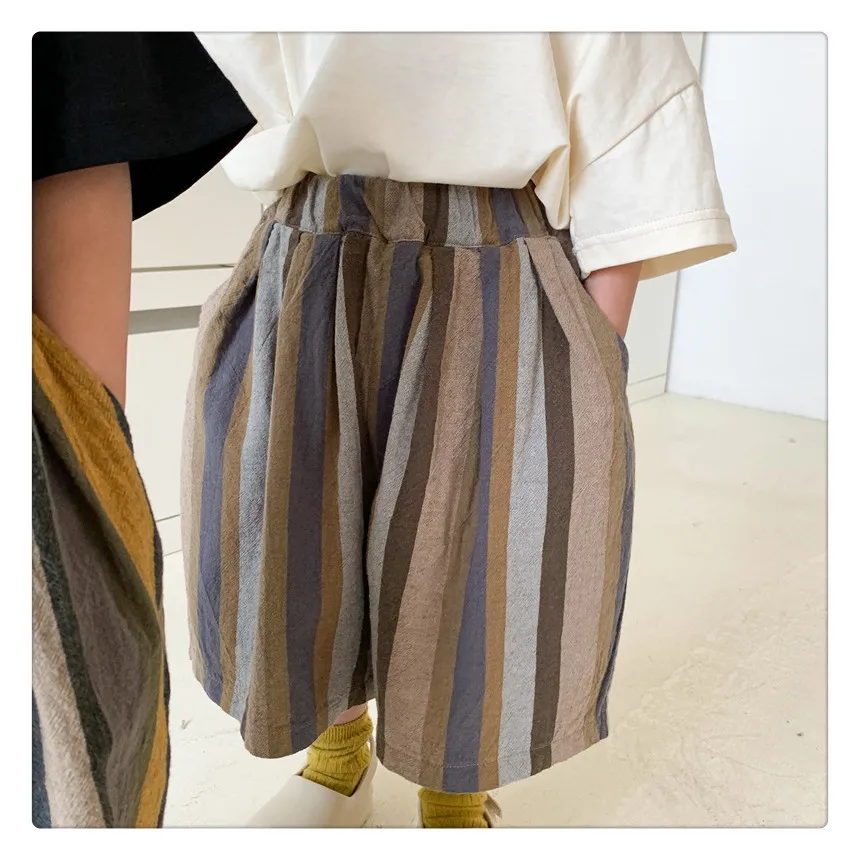 Kids Striped Loose Wide Cropped Gaucho Pants