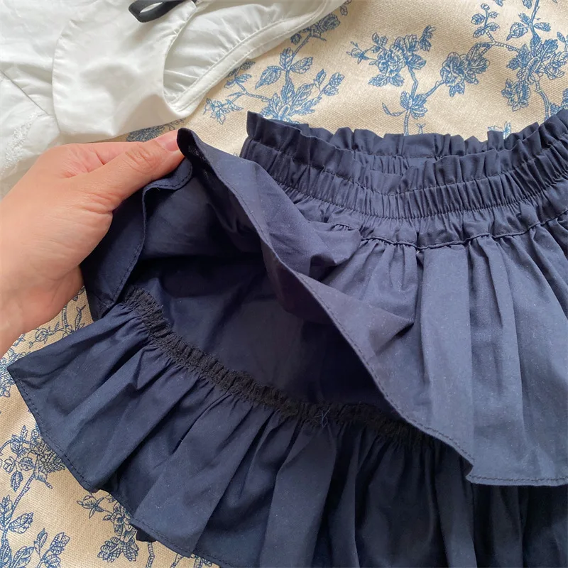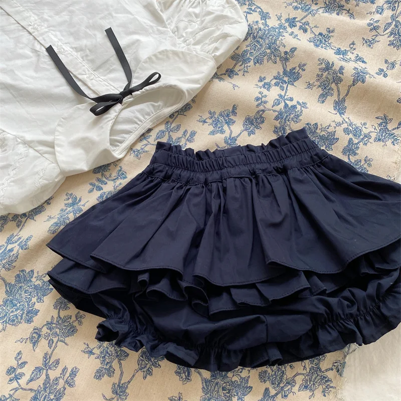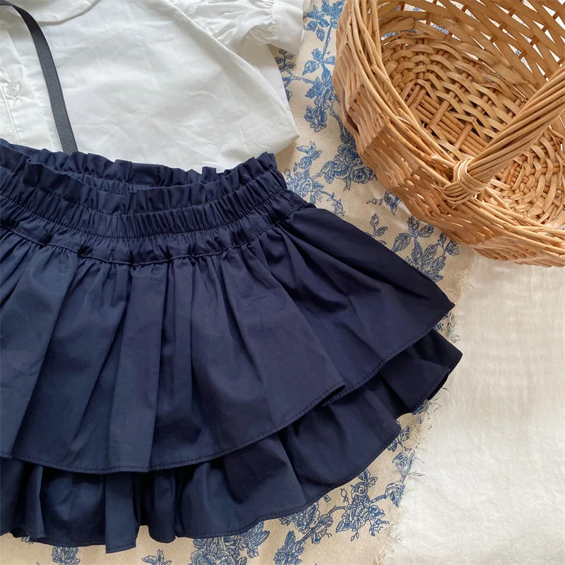 Kids Layered Ruffle Pants-In Skirt Navy Blue Girls