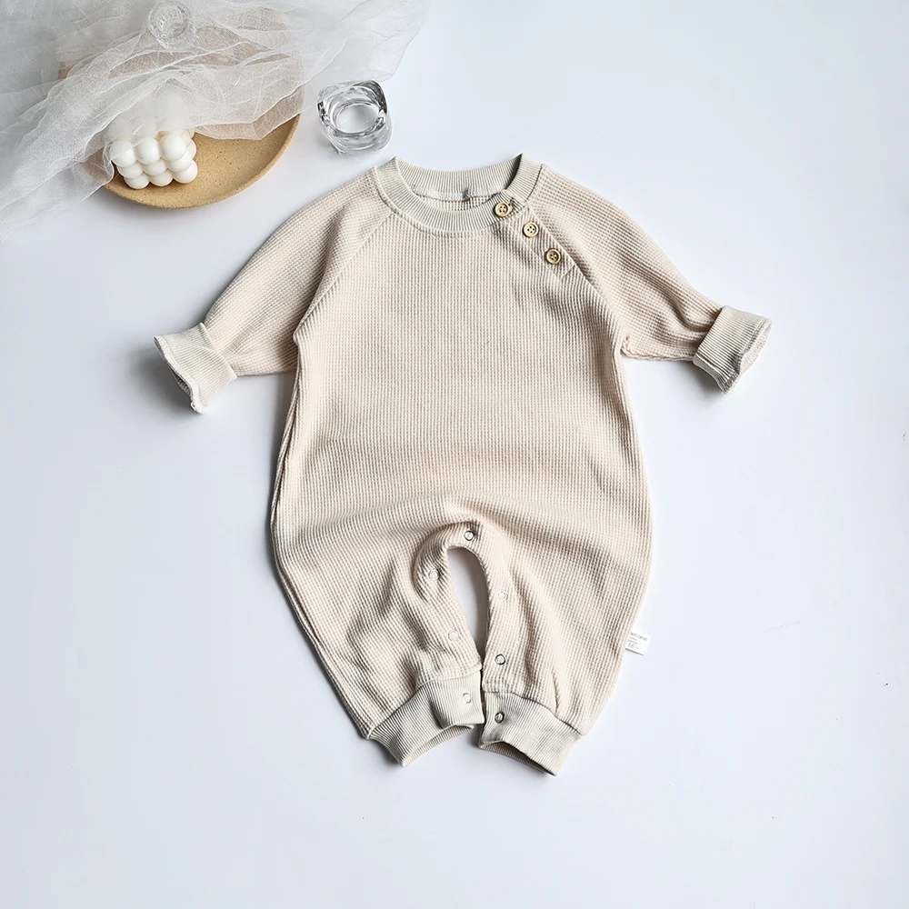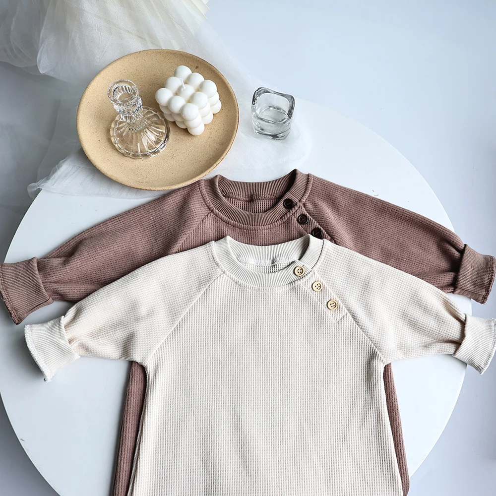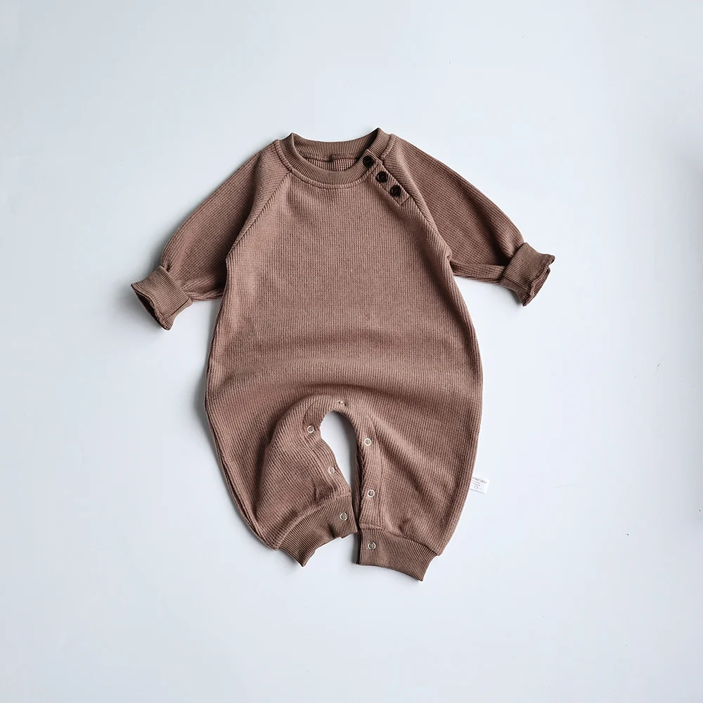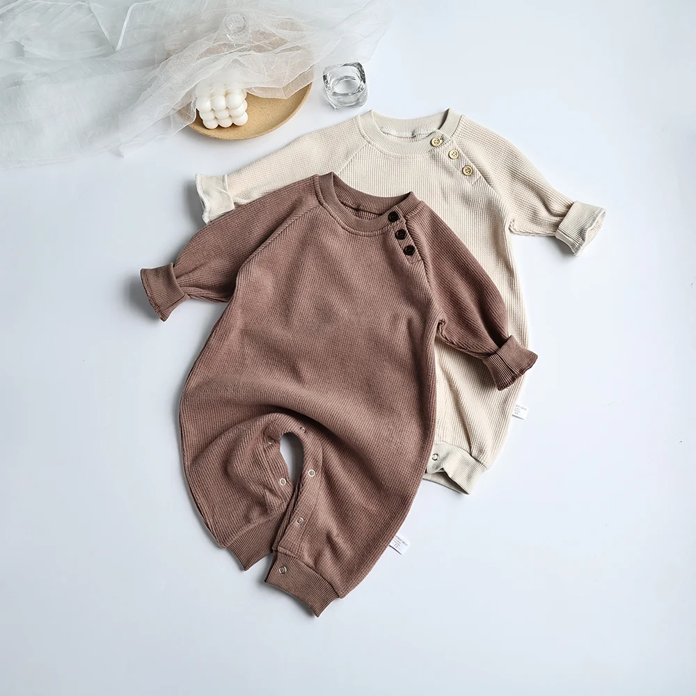 Baby Clothes Rompers Jumpsuits Long Sleeve Coveralls Simple Basic Loose Cotton Coffee Beige Boys Girls