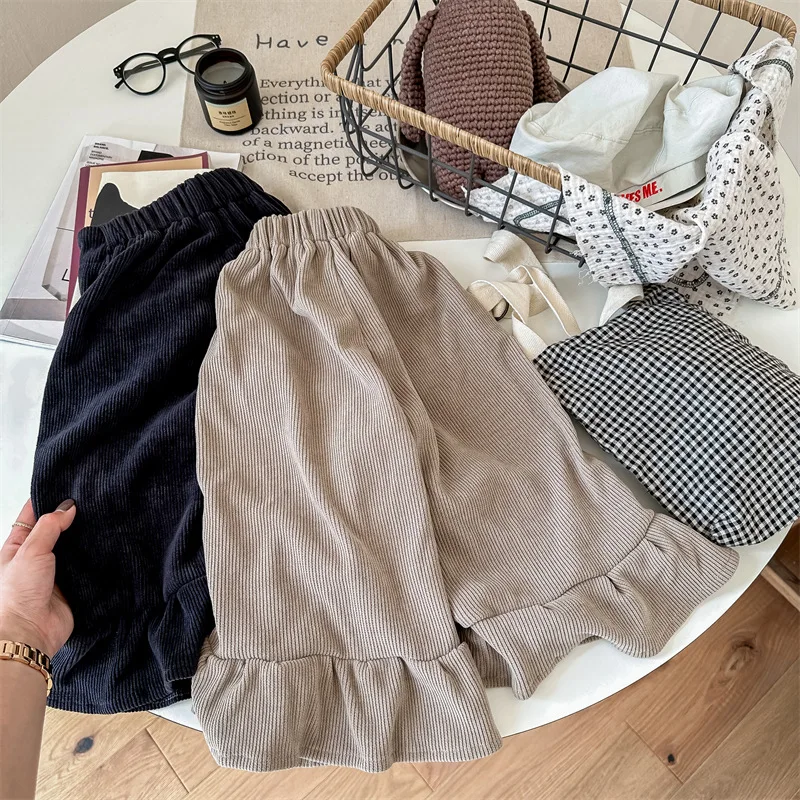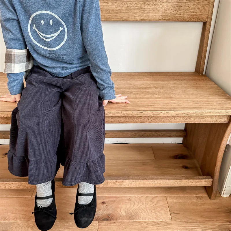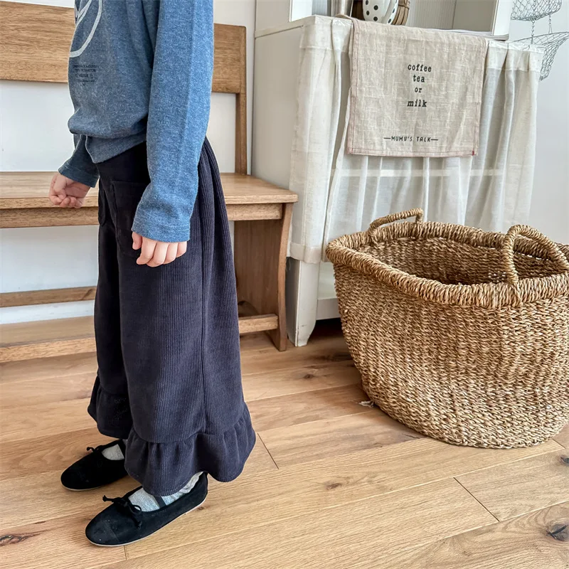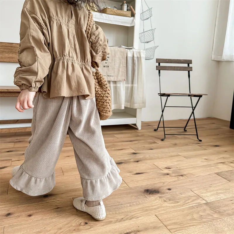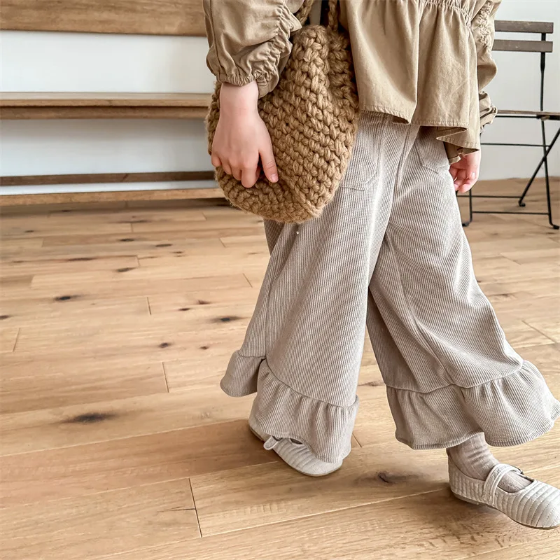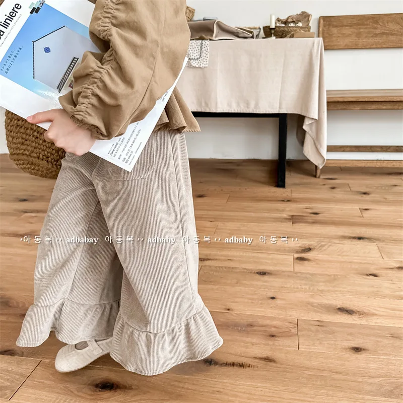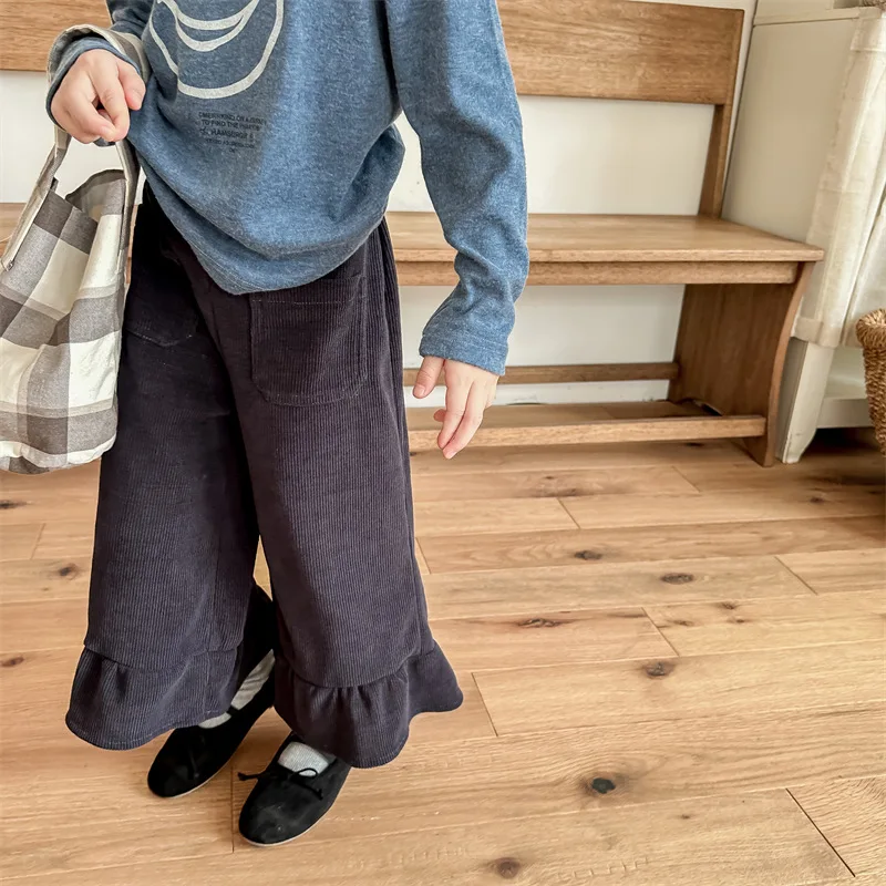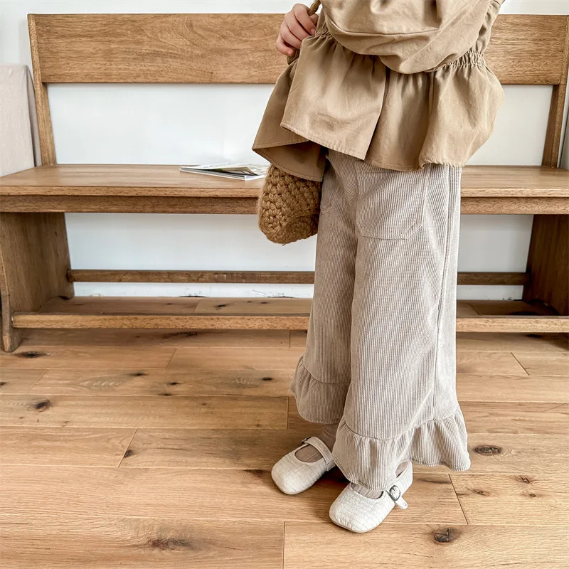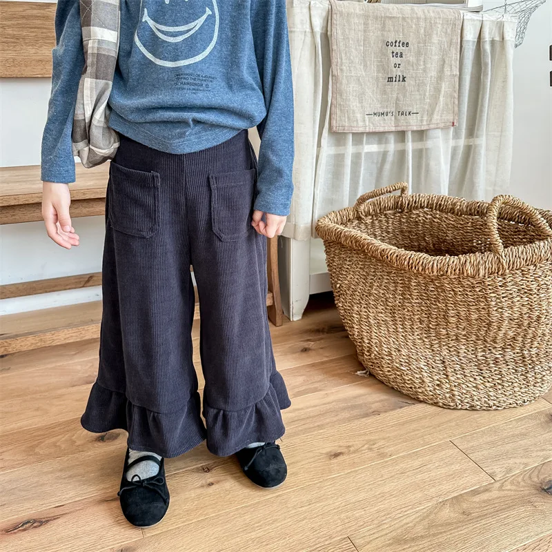 Kids Corduroy Ruffle Flare Loose Long Pants for Girls