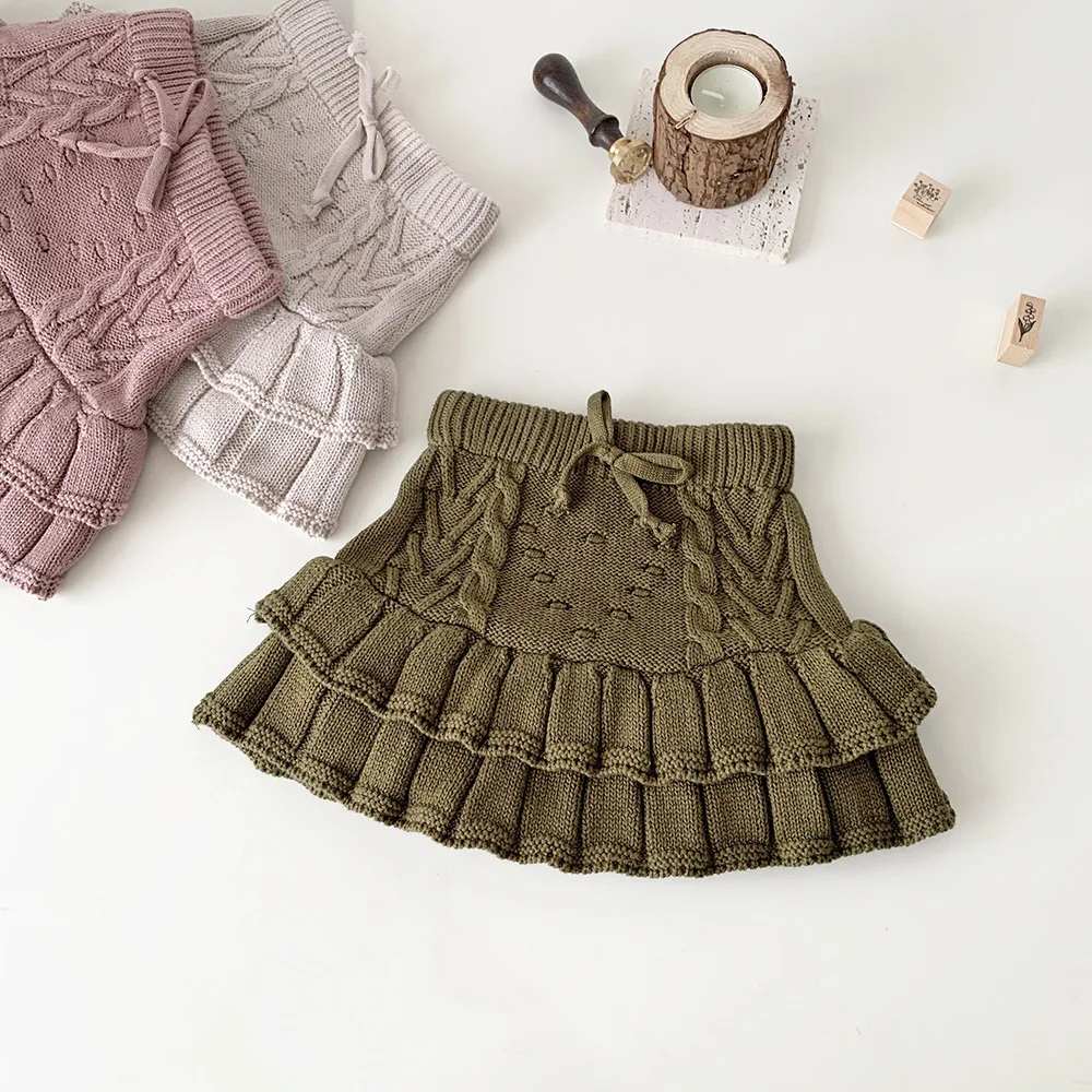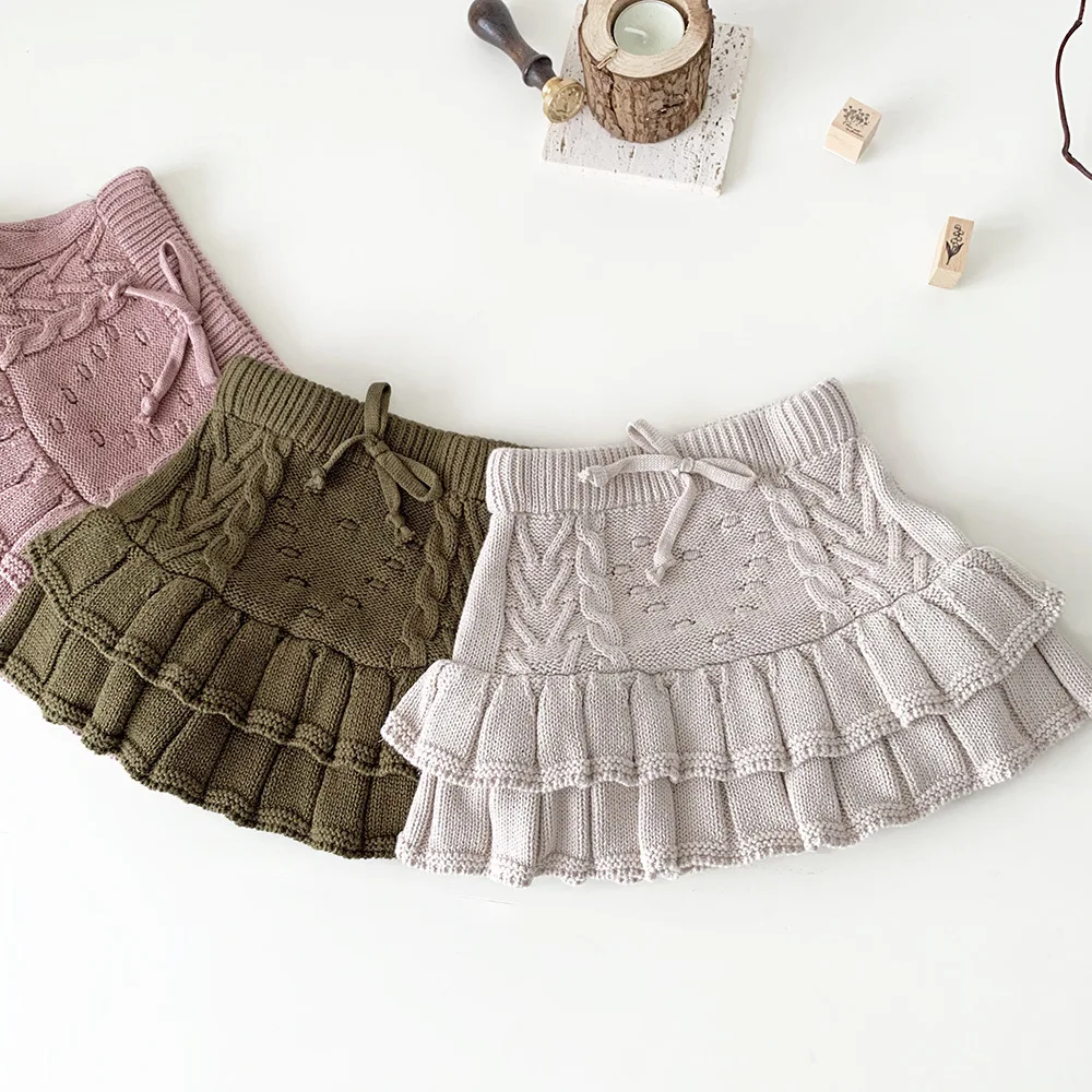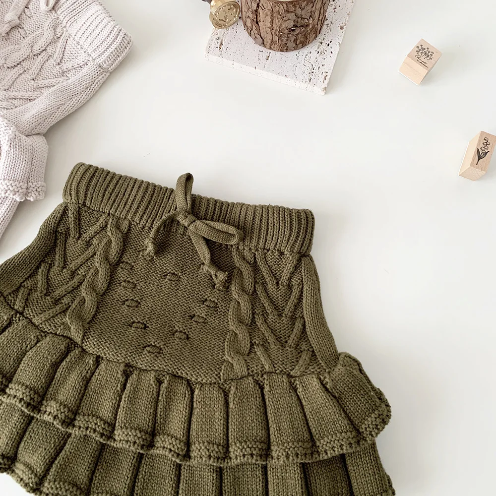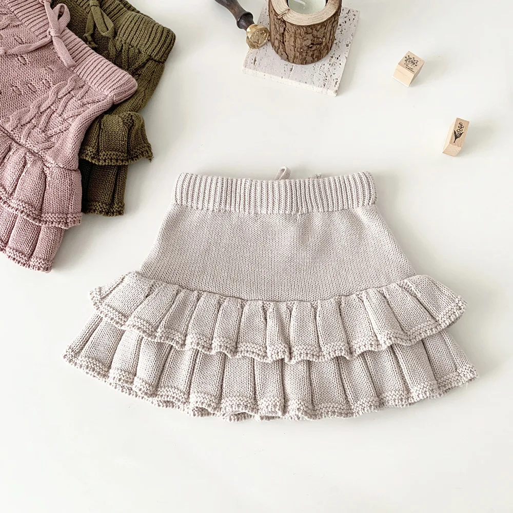 Baby Kids Knit Skirt Tiered Skirt Ruffle Girly Pants-in Skirt Beige Green Pink 3 Colors Girls Kids Clothing