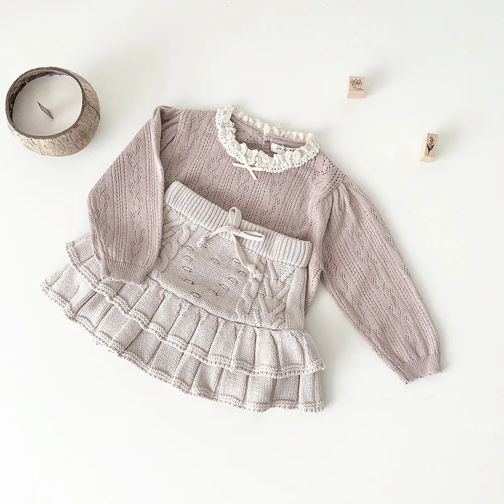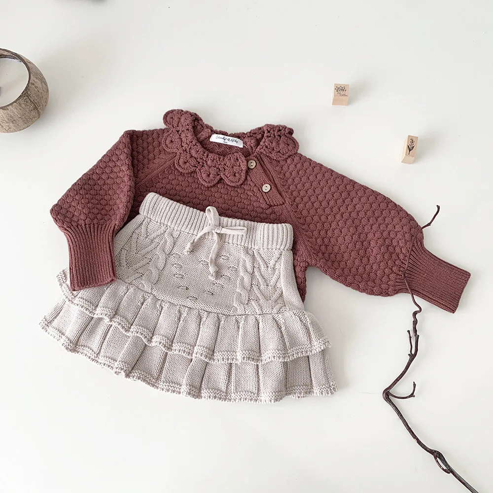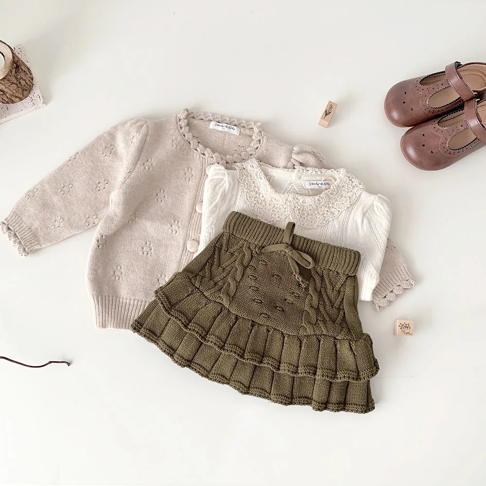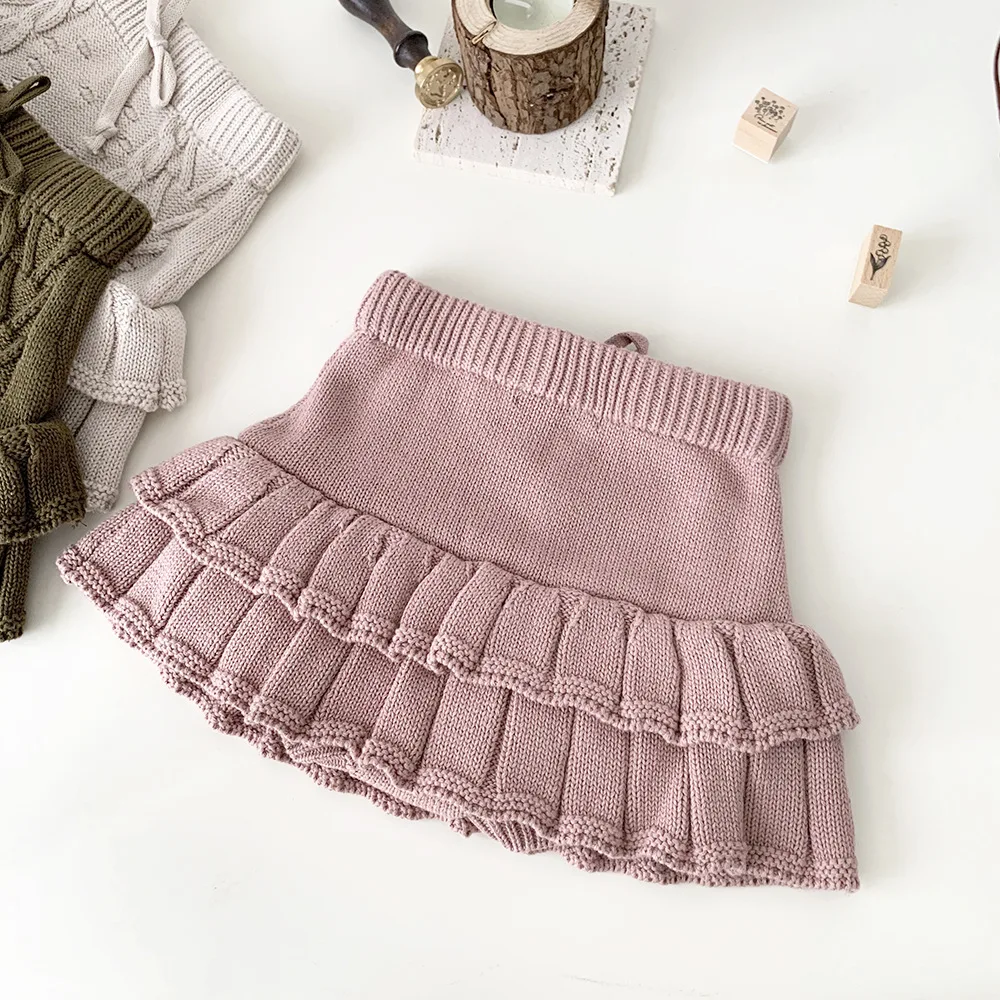 Baby Kids Knit Skirt Tiered Skirt Ruffle Girly Pants-in Skirt Beige Green Pink 3 Colors Girls Kids Clothing