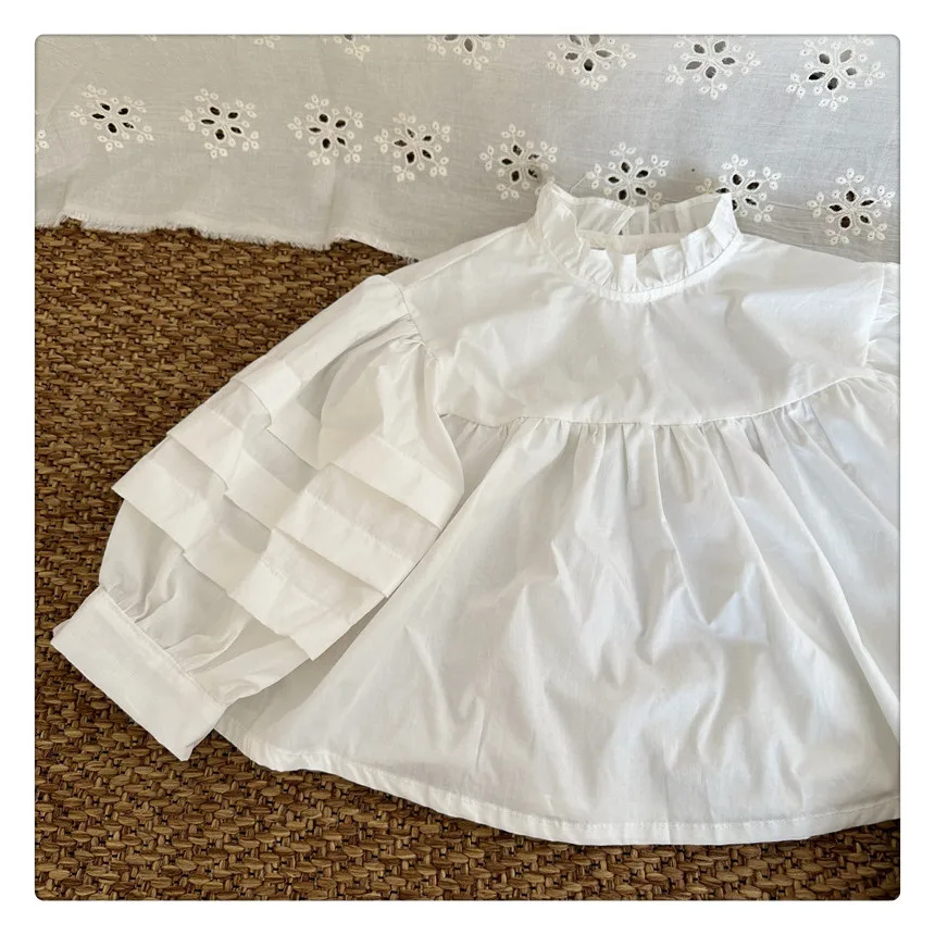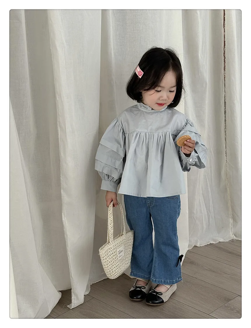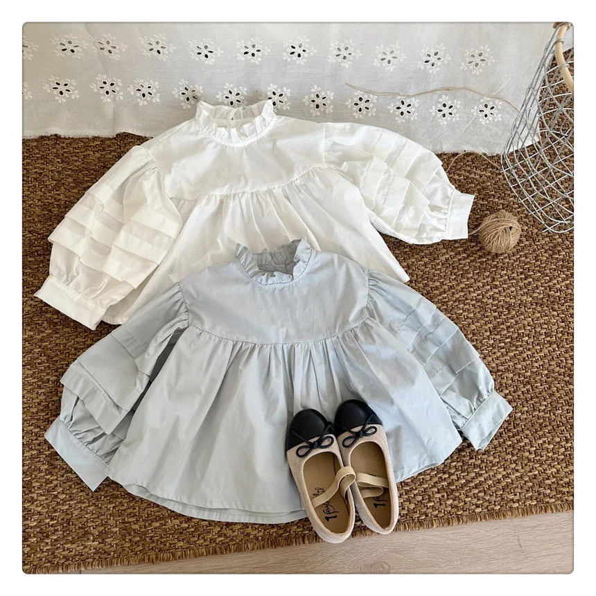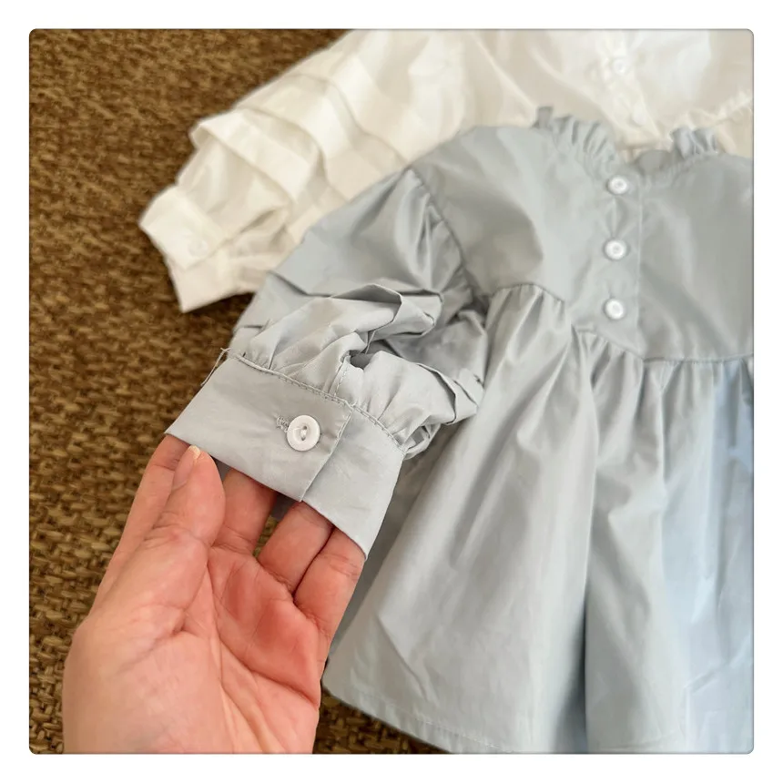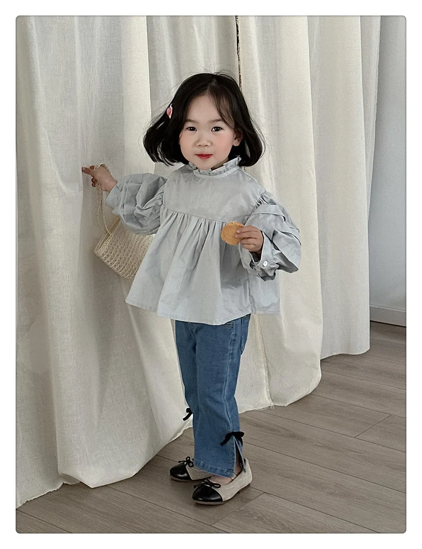 #kids fashion #long sleeve blouse #ruffled stand collar #stylish kids clothes #white #light blue